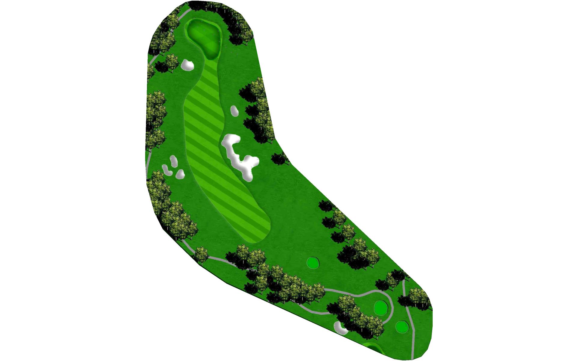 This par 5 slopes slightly uphill. The second shot slopes left-to-right, so players will want to keep their ball left to play from the center. The green is well-protected where the best miss is long and left.