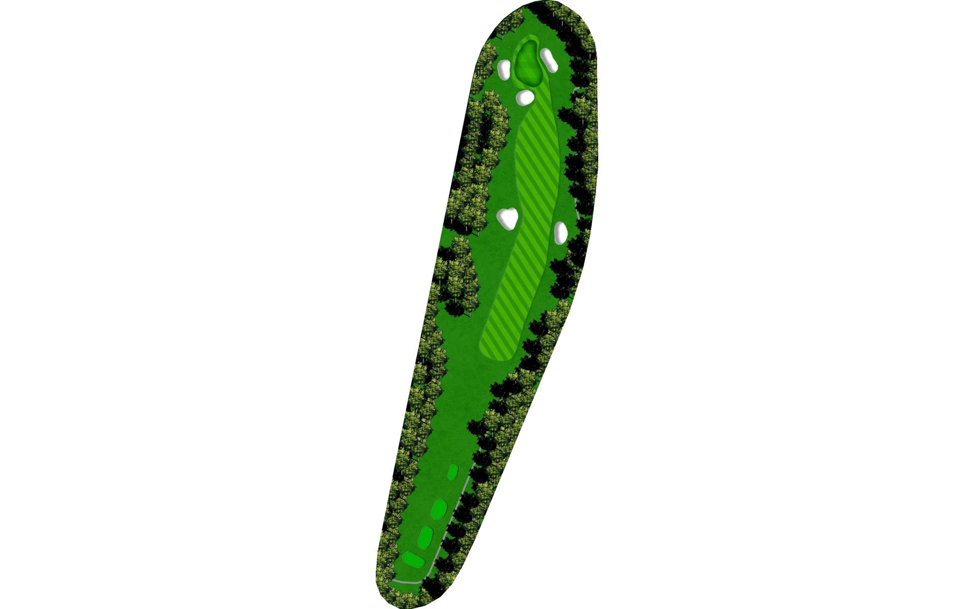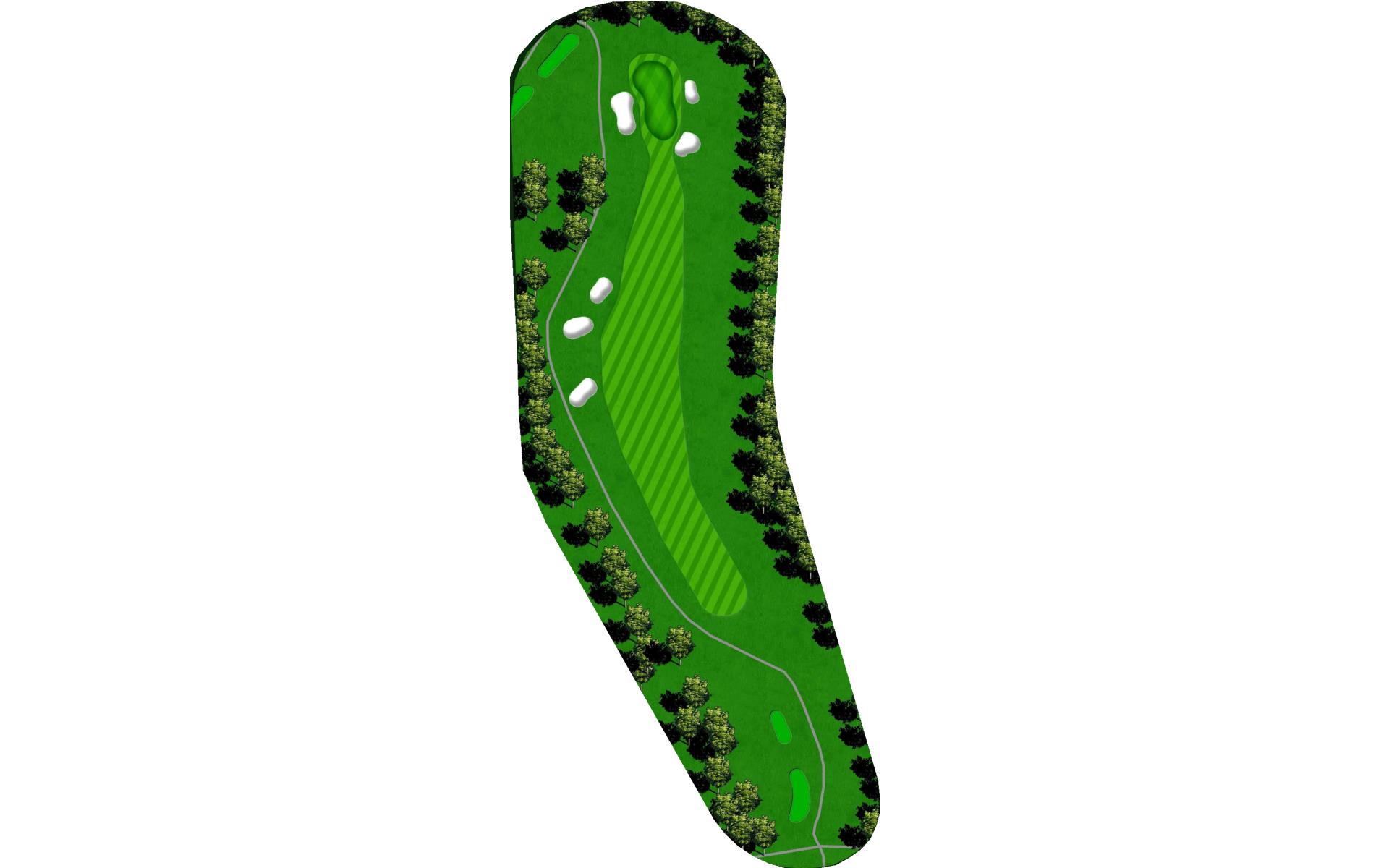 Accuracy off the tee is crucial to avoid the fairway bunkers. The approach shot plays uphill, so hit enough club so you don’t leave it short in front of the bunker.