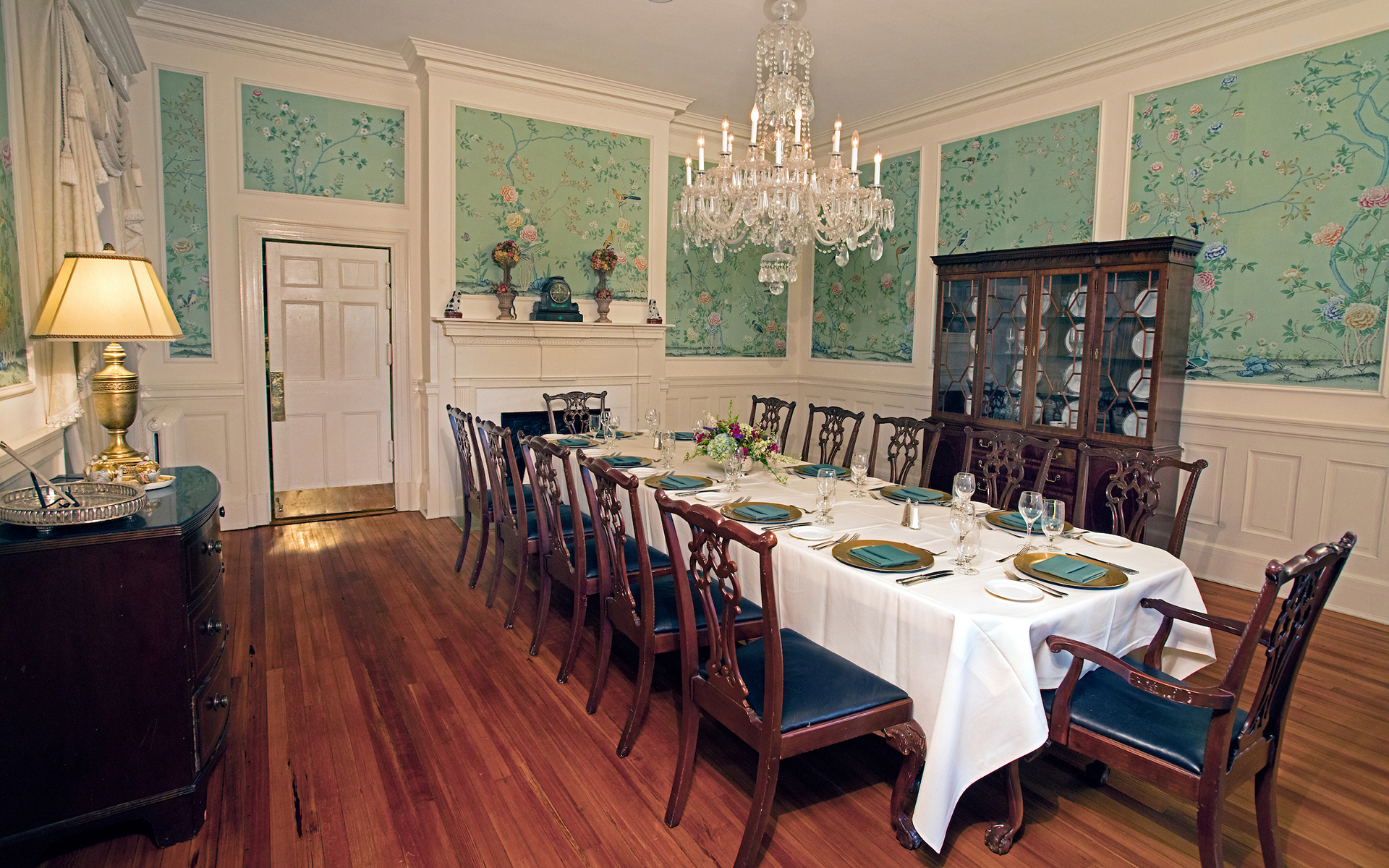 Known as an outstanding attorney from Pittsburgh, Mr. Ferguson’s contributions included the restoration of the “Earlham” hand-painted panels in the dining room, a copy of which hangs today in the Victoria and Albert Museum in London. This magnificent room invokes a sense of formality and intimacy for your social or business affairs.