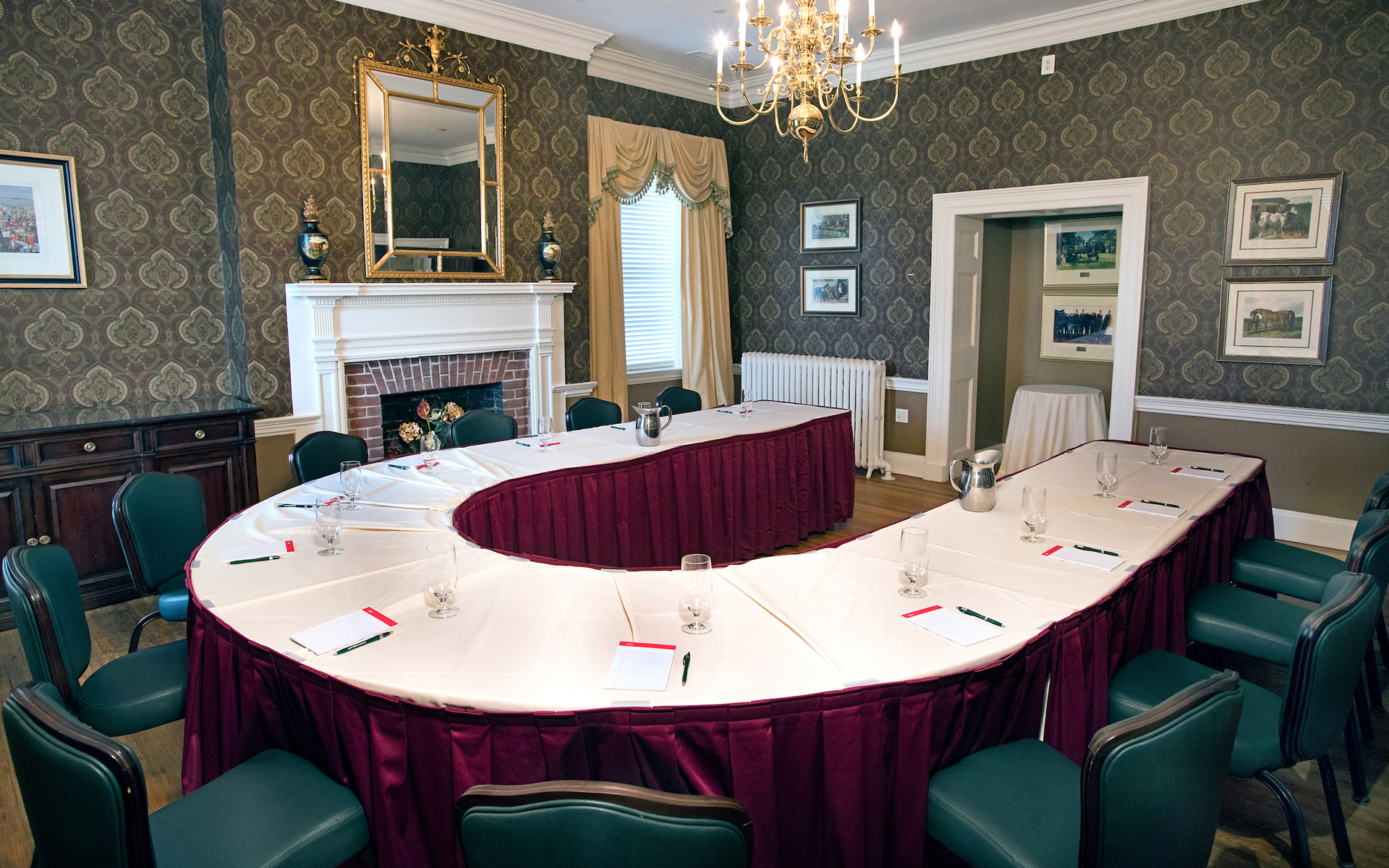 In celebration of the annual Fairfax Hunt Steeplechase Races, held at Belmont since the 1930’s, this versatile room can serve as a business meeting room, card room or small private dining room for entertaining.