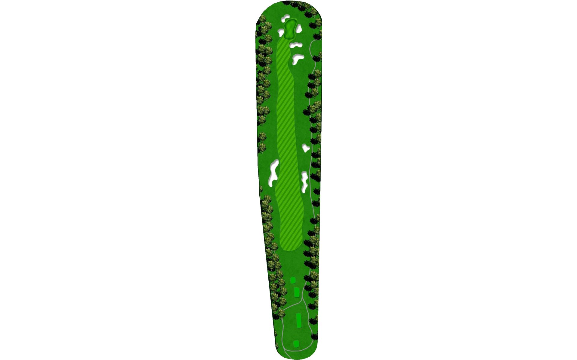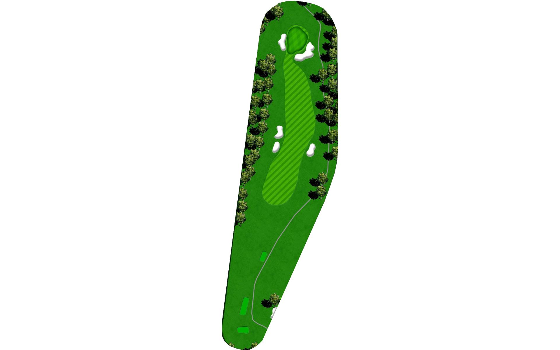 This finishing par 4 requires a right to left ball flight off the tee that ends up on the left center of the fairway. With fairway bunkers on both the left and right side of the fairway landing area, an approach to a two-tiered green awaits the player hoping for a birdie chance to end their day on a positive note. Be mindful of which tier the pin is located on as the spine in the middle of the green can both reward and deter good approach shots.