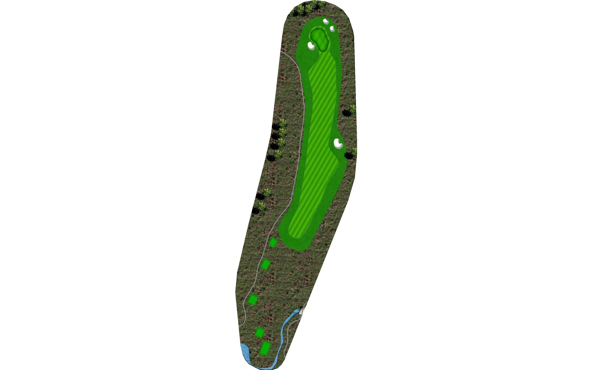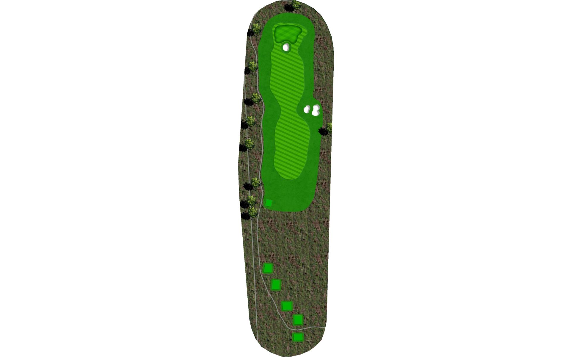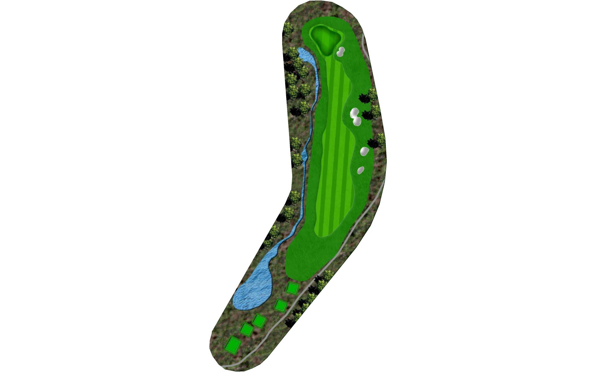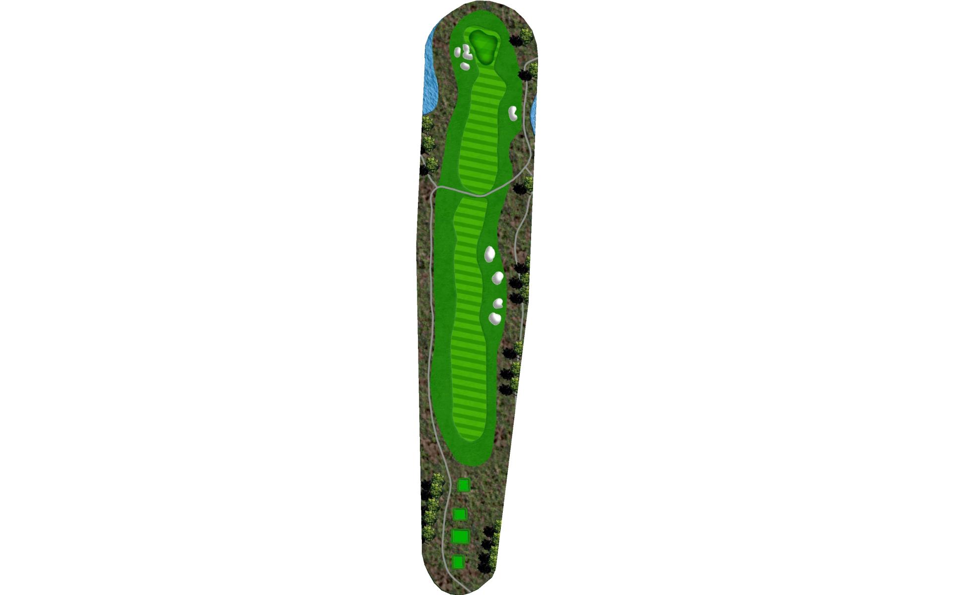 | A tee shot that lands near the 150 post will allow players to miss the fairway bunkers on the right and be left with the best approach. The green slopes back-to-front and left-to-right. |