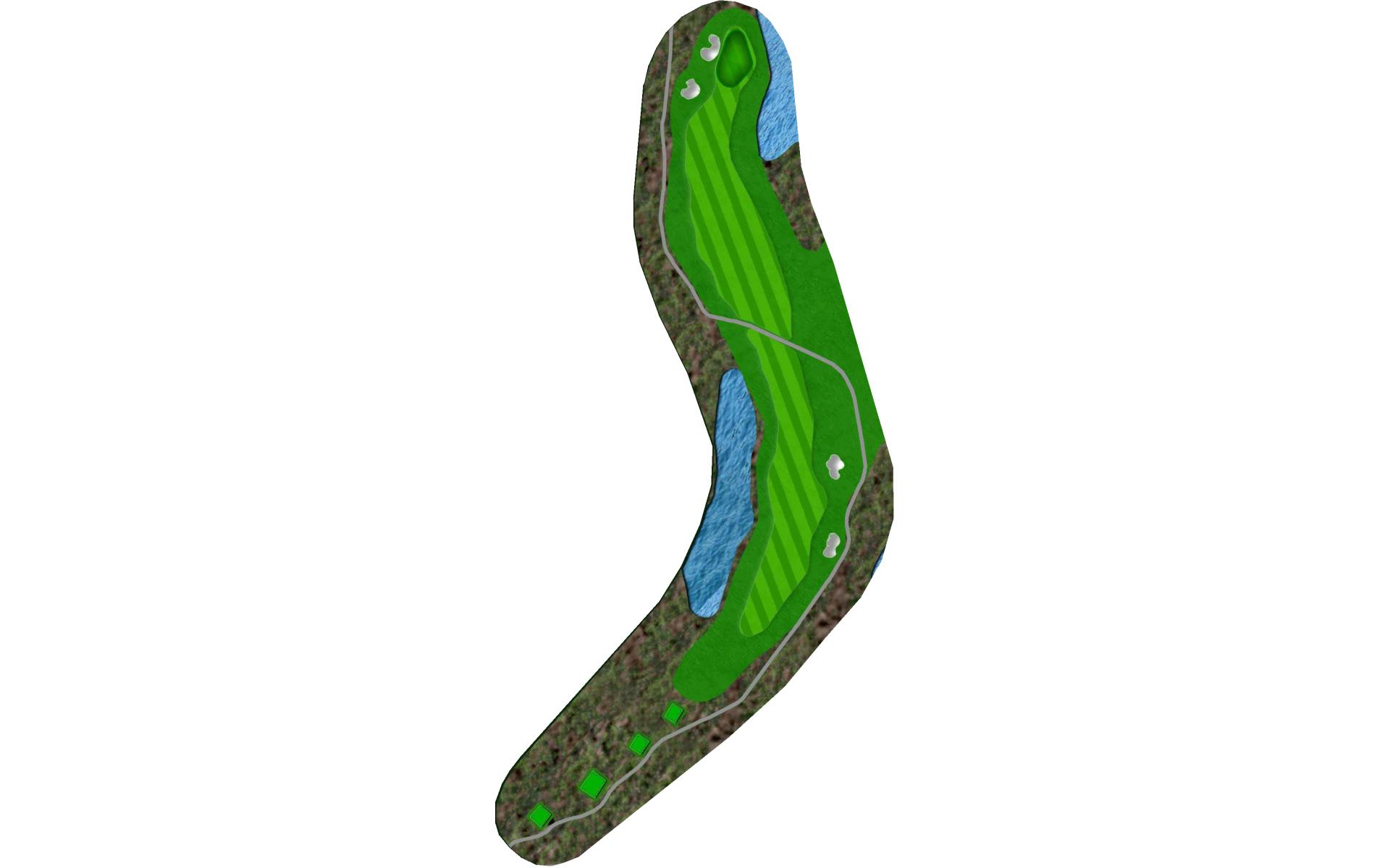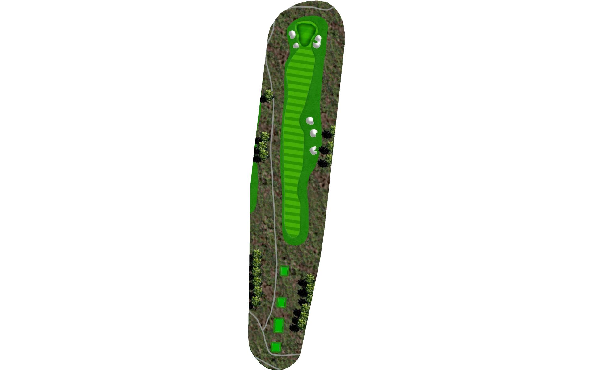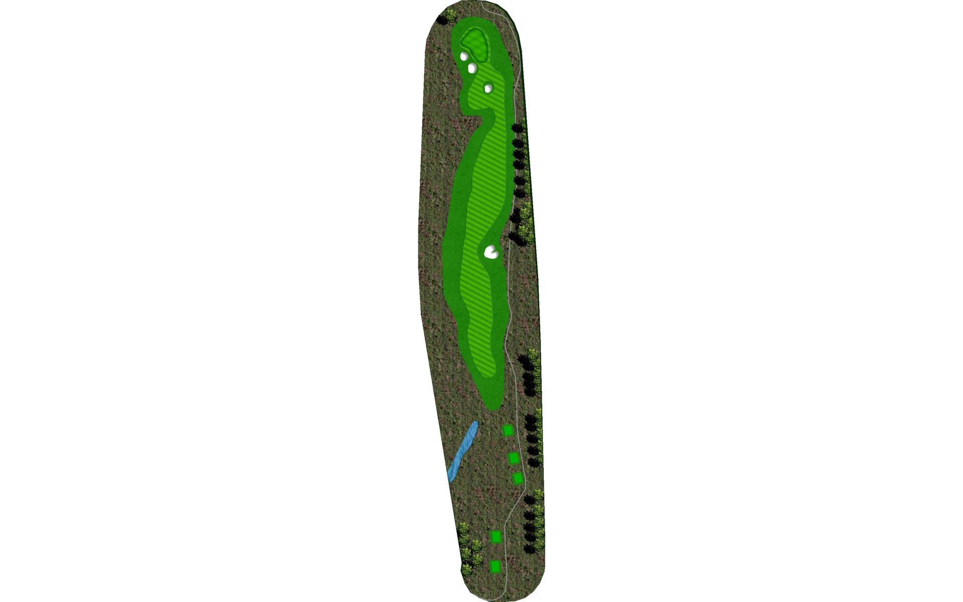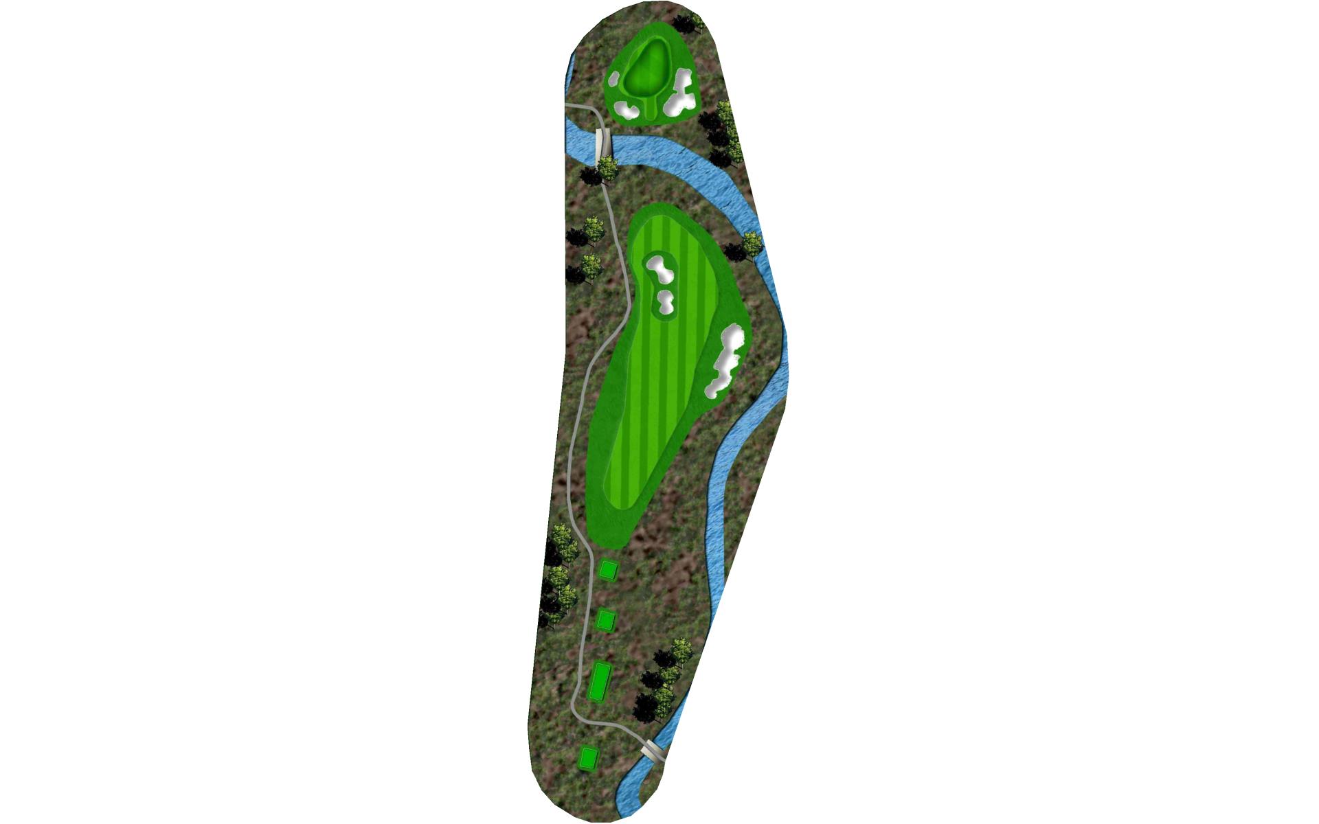 | A tee shot that lands near the 150 post will allow players to miss the fairway bunkers on the right and be left with the best approach. The green slopes back-to-front and left-to-right. |