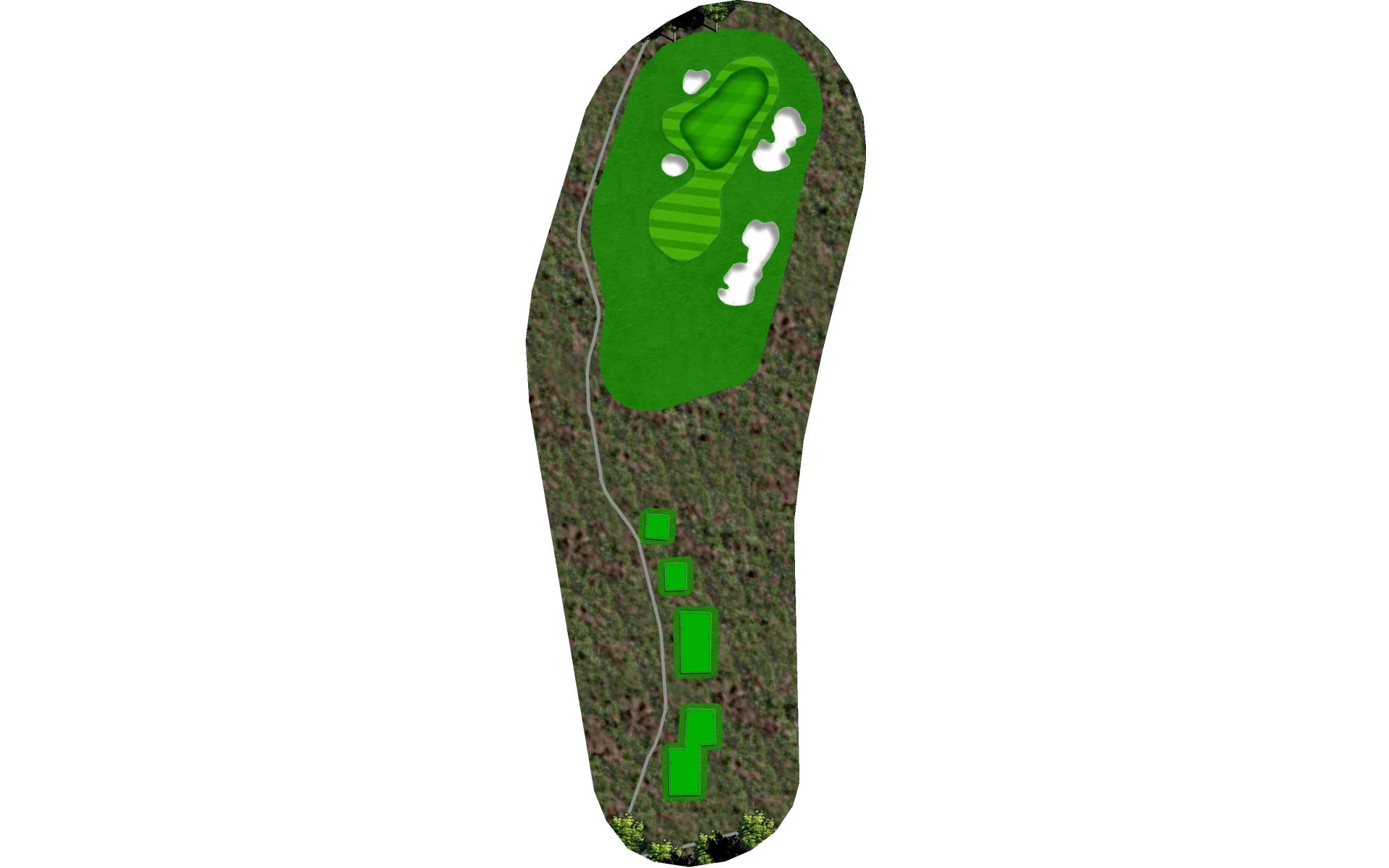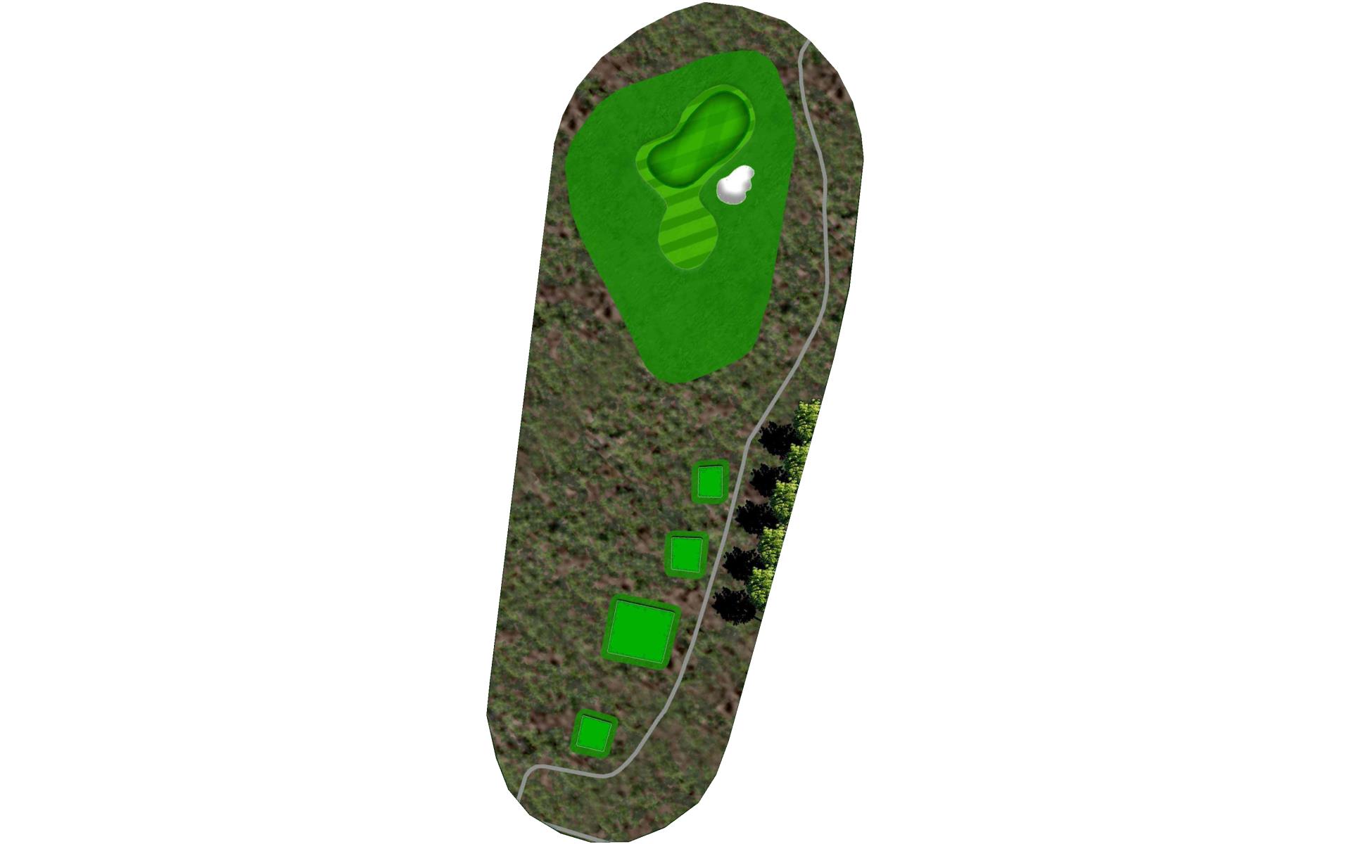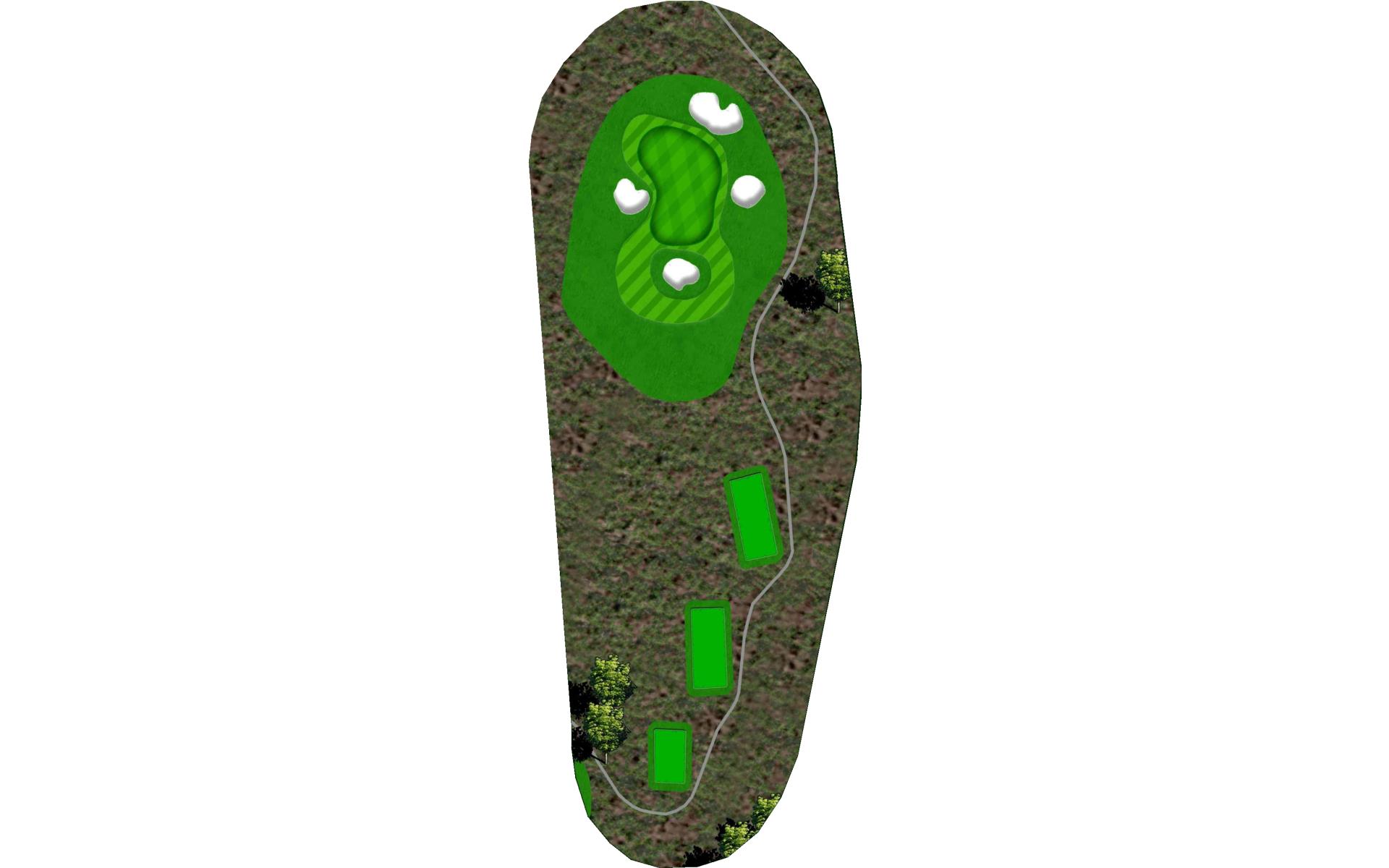 | The third is a par 3 with a semi-blind tee shot. The green is multi-tiered, so club selection is important to get it close. |