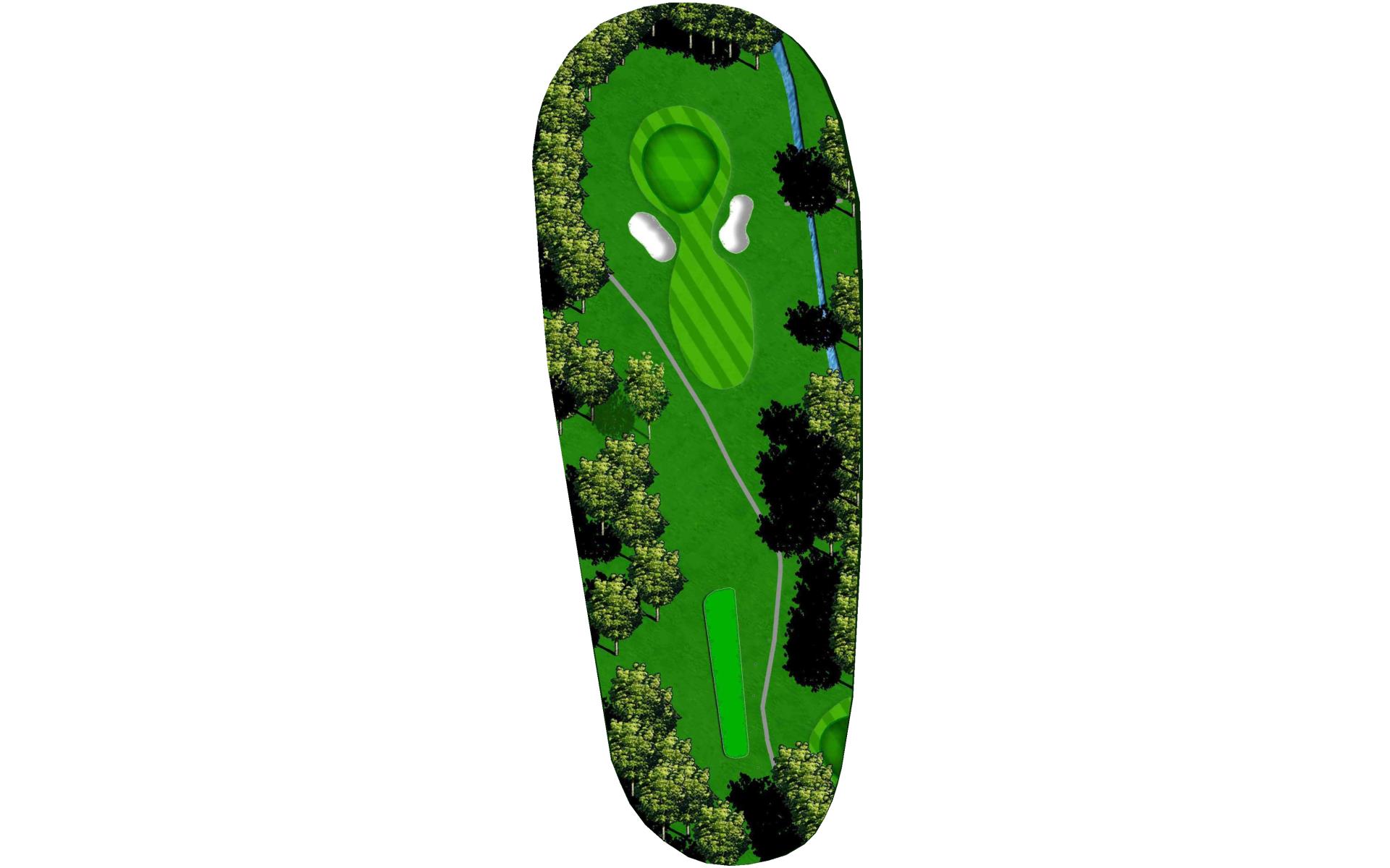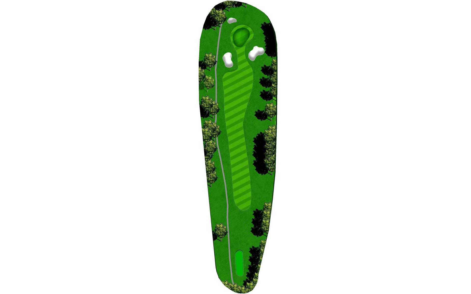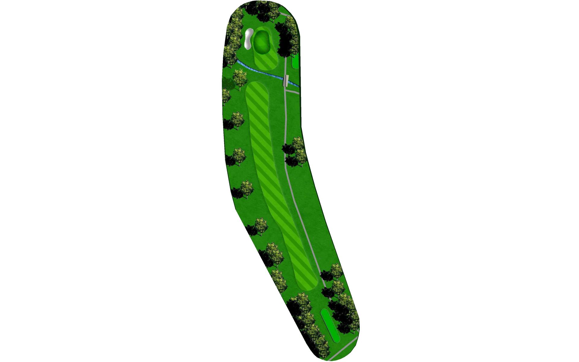 Number four for some is reachable but it has to be done with such precision a drive that leave us with a full swing into the green is the percentage play. With no real trouble around or behind, short of the green on this hole will put a not so friendly number on a score card. This green slope from back right to front left almost enticing the creek in front to grab a golf ball just a little short. Middle of the green on the good side of the pin will make a much better number.