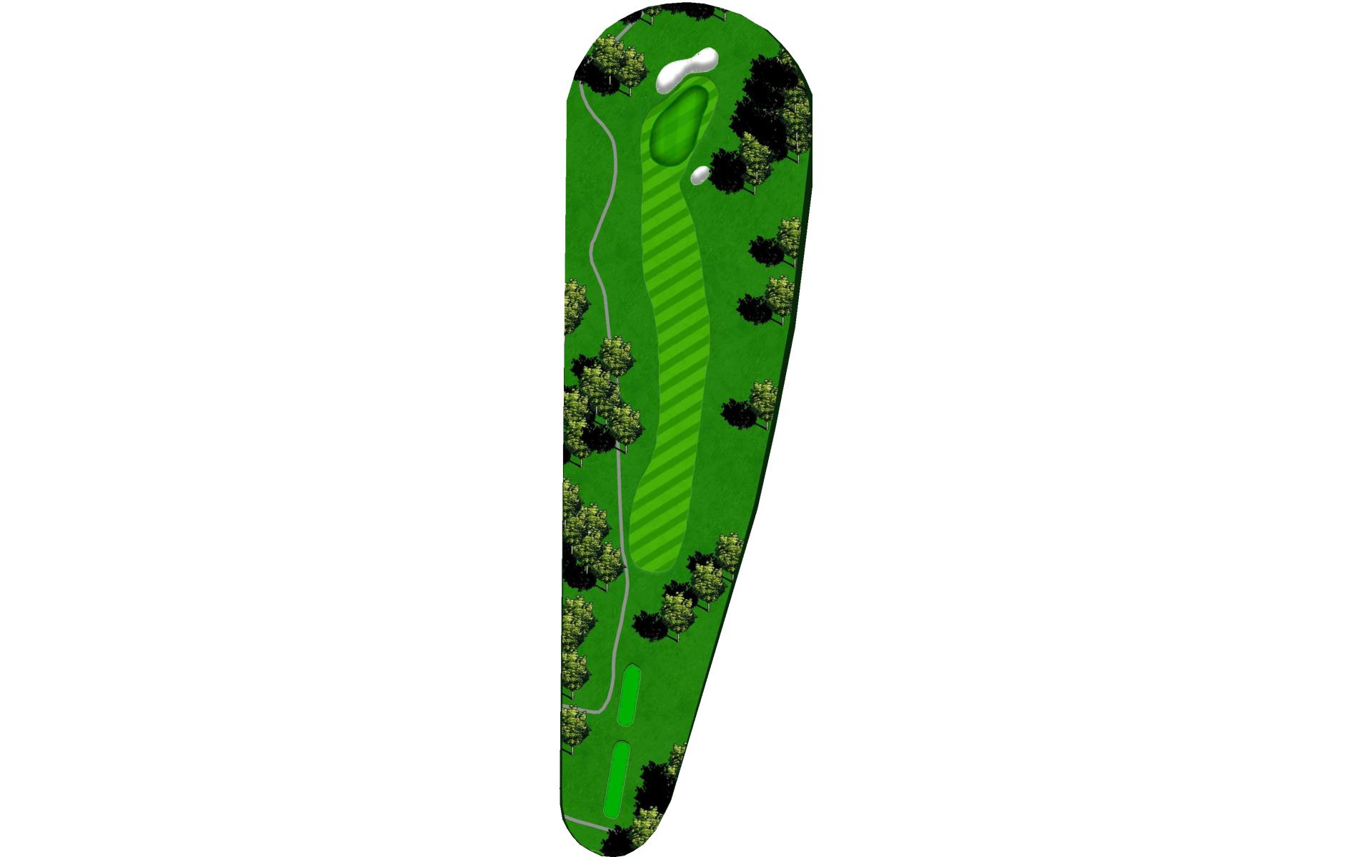 Hole nine on the President's golf course is the Signature Hole with the club house in the background, it feels like all your buddies inside are watching and cheering you on. It’s a slight dogleg right with the green opening up to any of the shots down the left side of the fairway. This green is raised so a high soft shot will lead to a better result. Middle of the green is the place to be. Left side is your best miss.