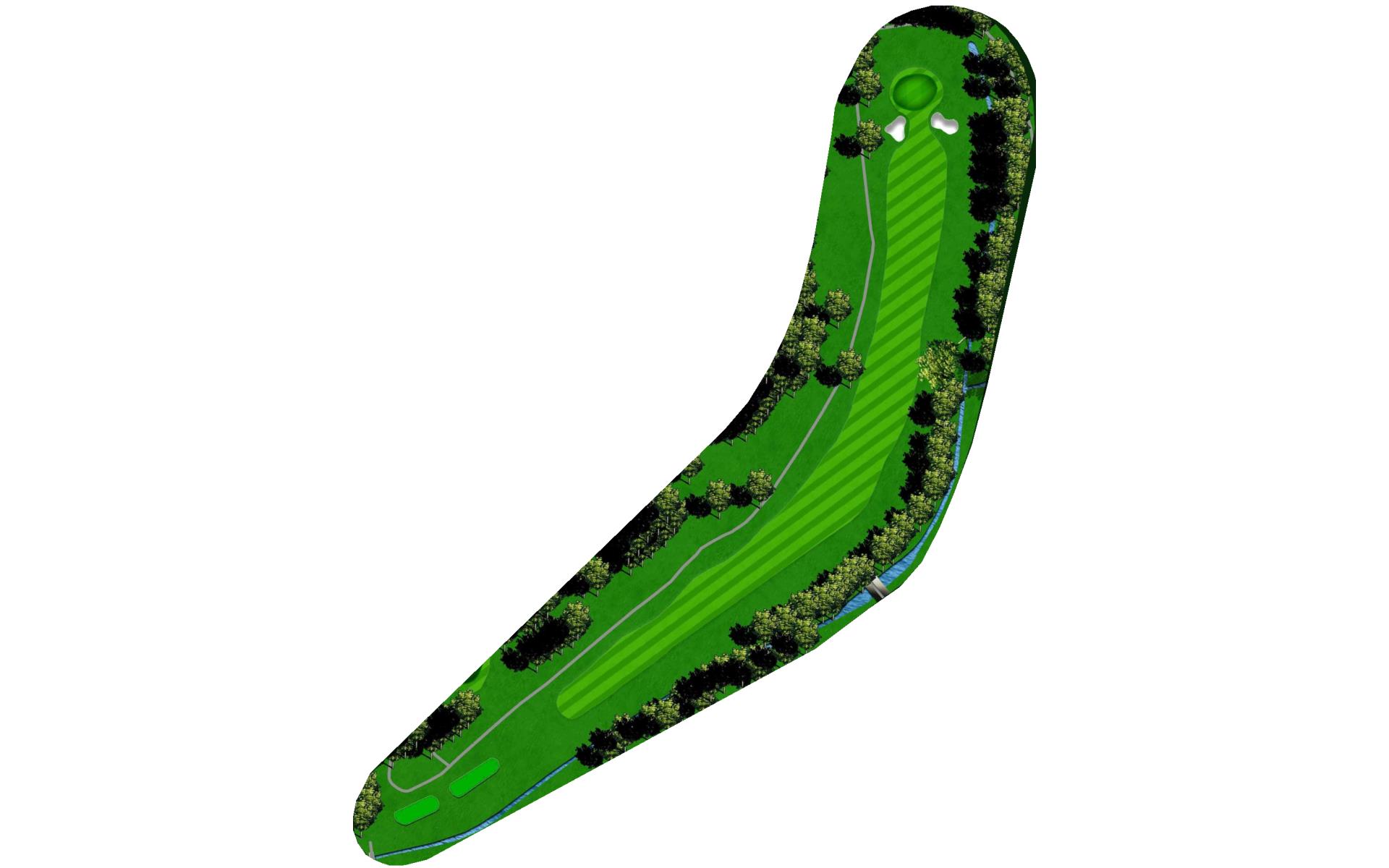 The par five eighth is a traditional dogleg left with out of bounds left and a drainage trough running down the right for the holes entirety. With an ample amount of room between the bunkers infront of the green both those who want to go for it and lay up have an awesome chance at being on the green in regulation.Even better this is one of the larger and flatter greens on the course just hitting the green here makes a good number hopeful.