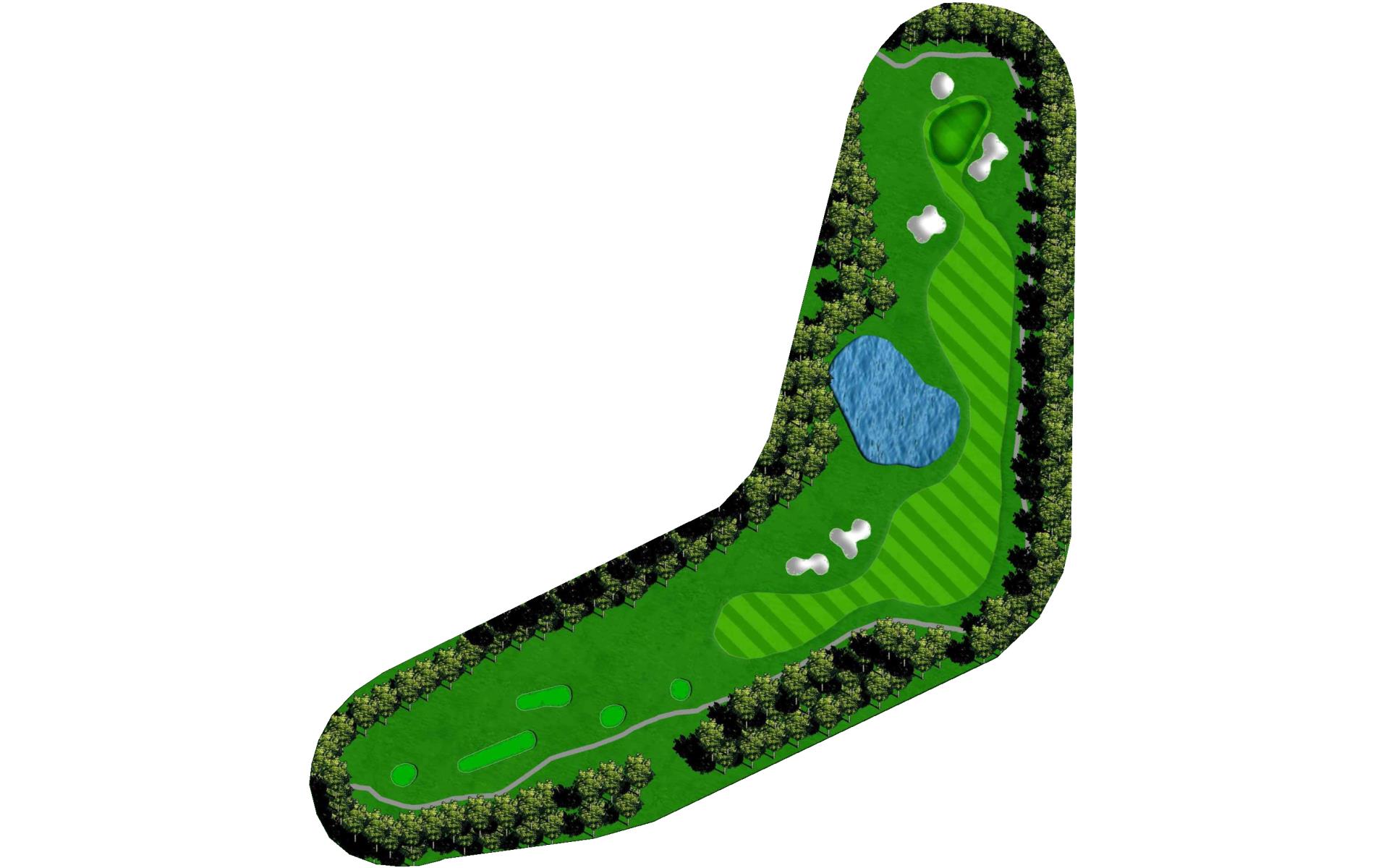 This straightaway par 3 plays over a creek. Tee shots should favor the left as there’s a severe slope on the right.