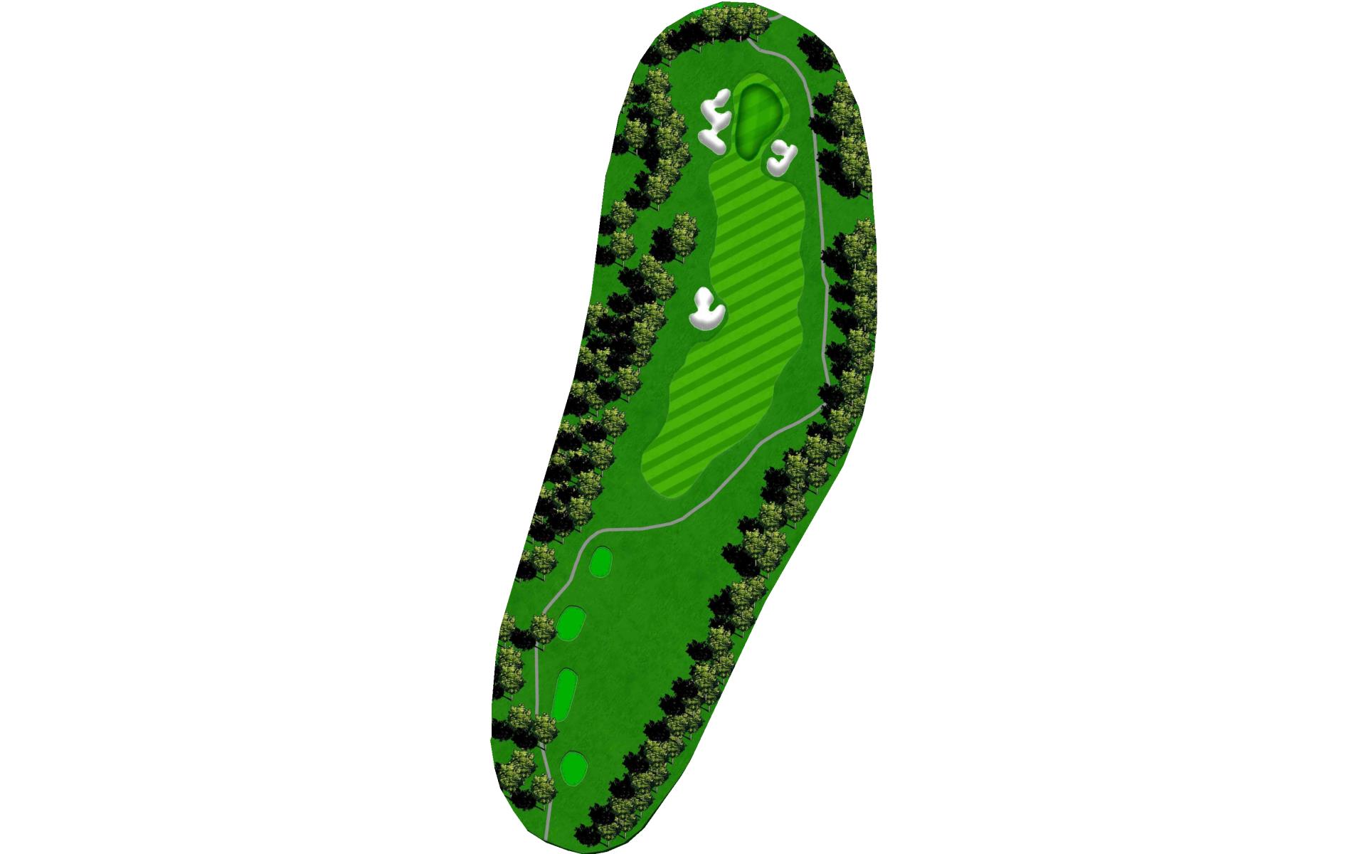This well guarded par 4 with water left, and trees right, requires a tee shot that hits the fairway. The approach shot can give you a chance for birdie, but aim a little long to make sure you clear the water just short of the green.