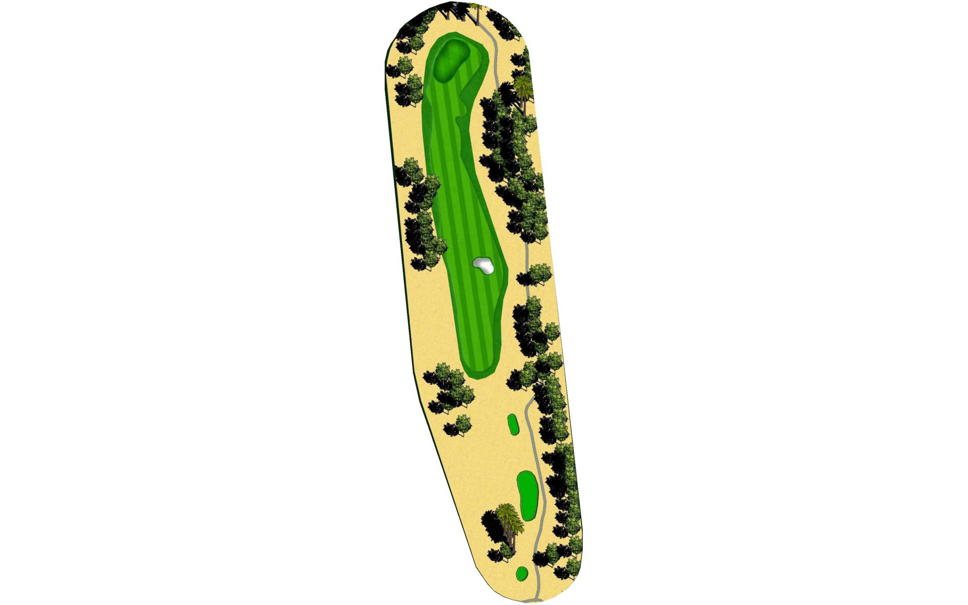 Short Par 4 that is straight away. Be careful as out of bounds runs along the entire left side of the hole and sneaks into play over the green. Fairway bunker on the right will give you approximately 160 yards into the green that is surrounded by bunkers short right and left, as well as long right. The green slopes back to front, and gets very narrow towards the back of the putting green. *Player Note: Middle of the green on approach shots to back pin placements is best.