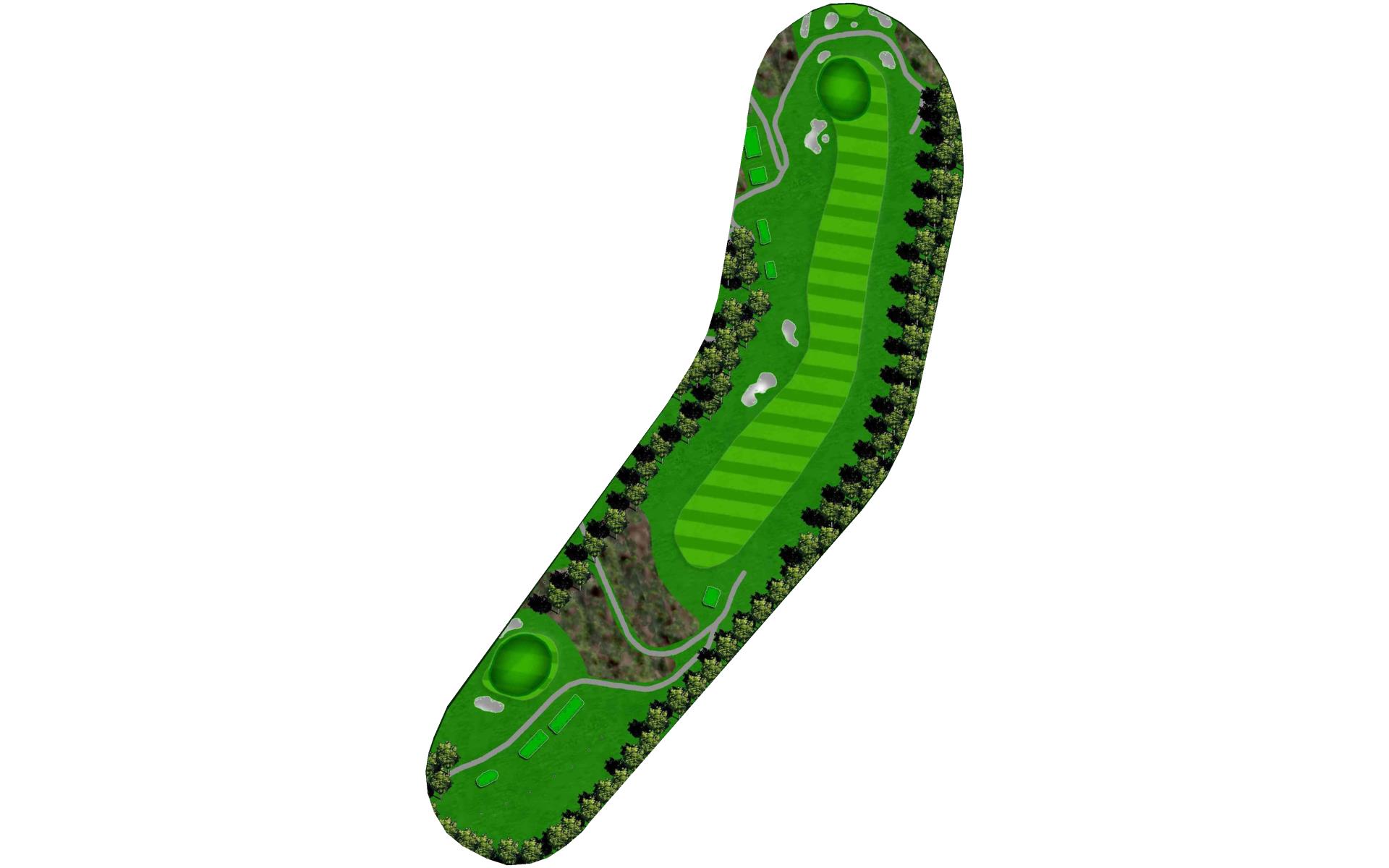 A challenging and long par 5. You must drive it straight down the fairway as you will then be challenged with an up-hill layup. The third shot is a tricky shot as you will also be challenged the pin position.
