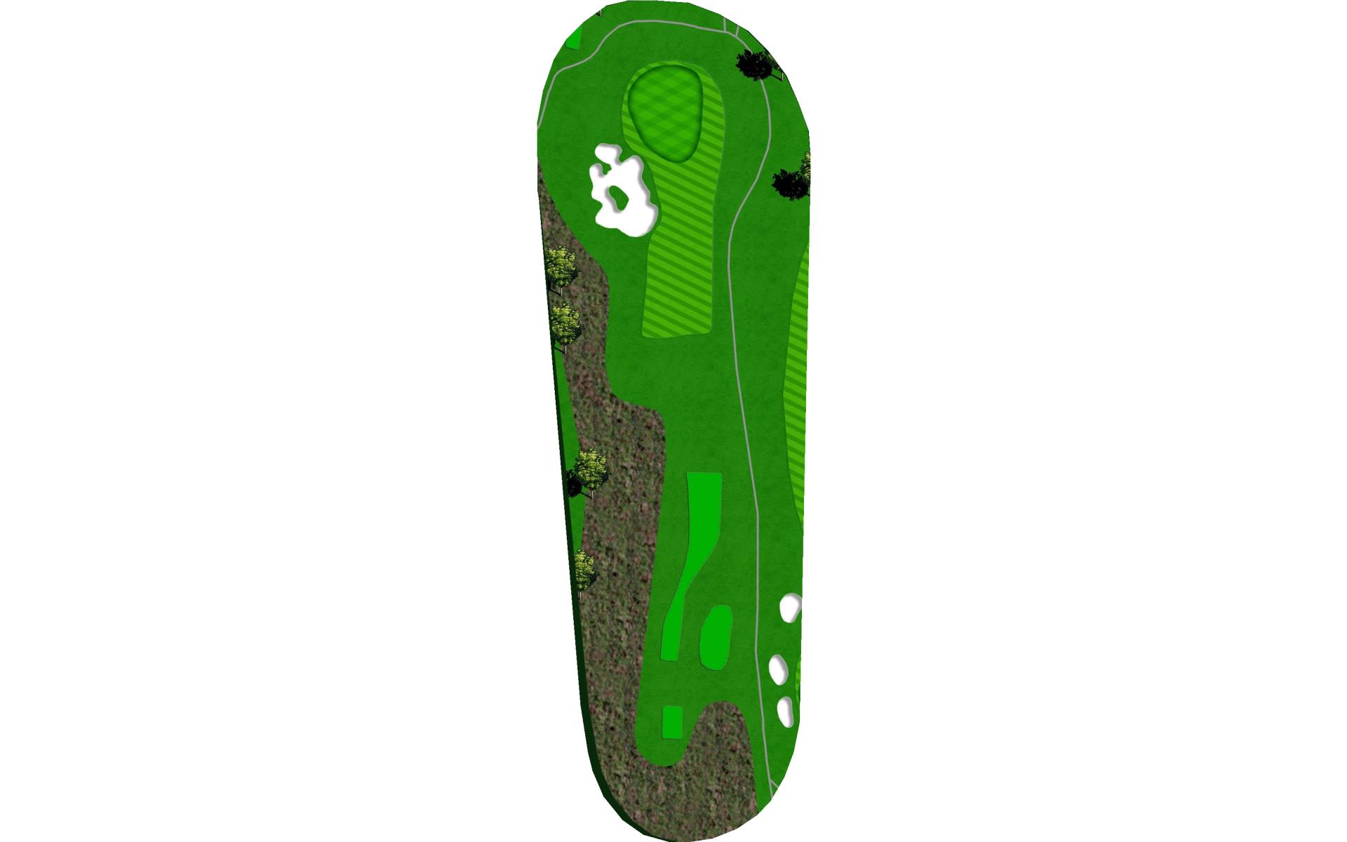 The hole plays about a half club shorter down the hill. The green once again is challenging as there is a few different collection areas in the green the ball will funnel to.