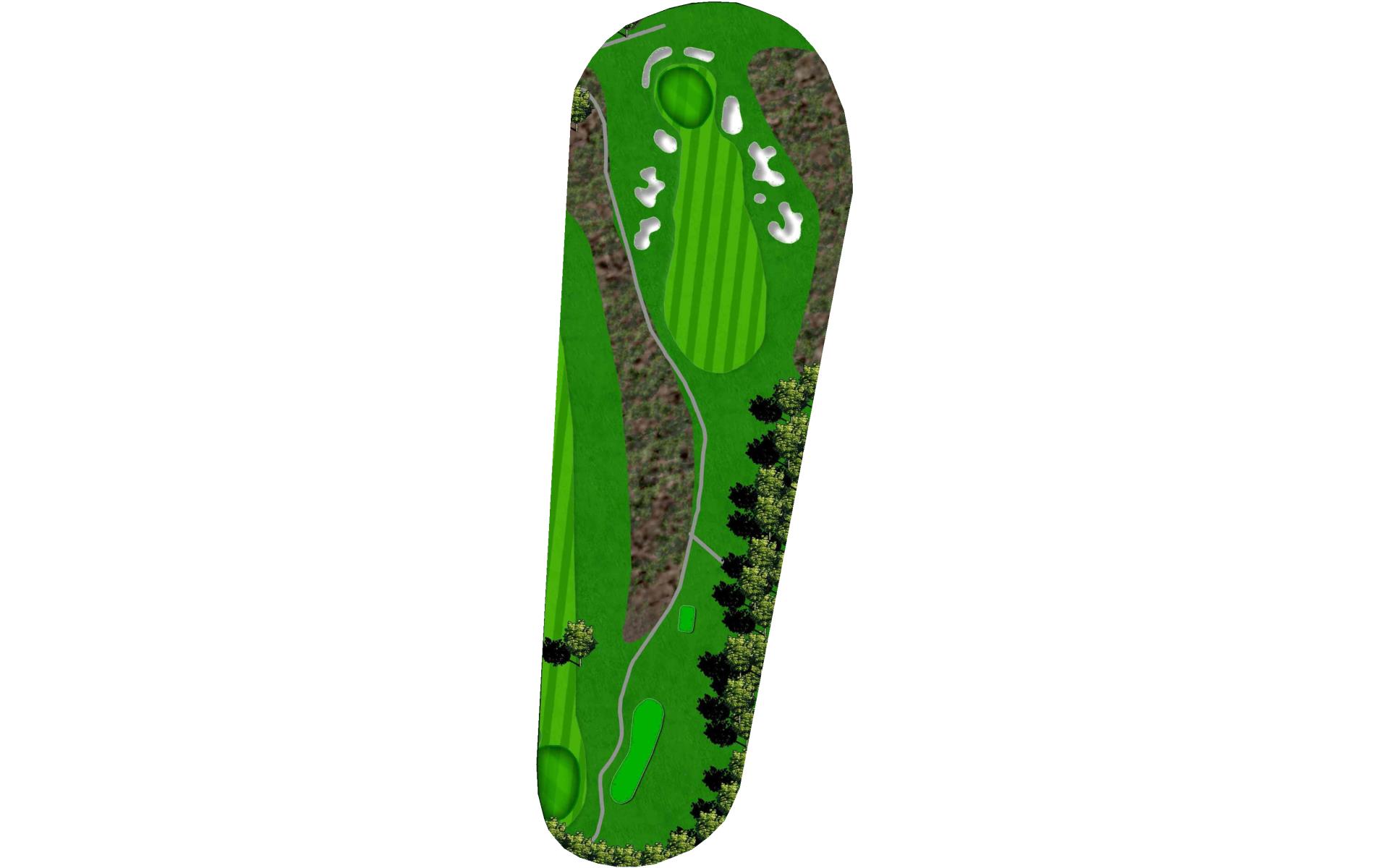 Driver is not a requirement as the hole is not a very long hole. It has a unique green complex. Narrow and long! You can use the contour of the green to feed your second shot into the pin position