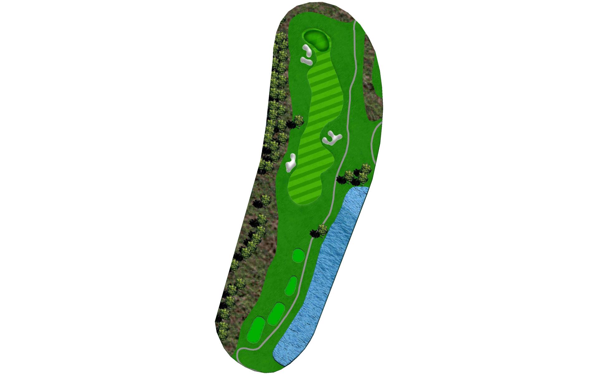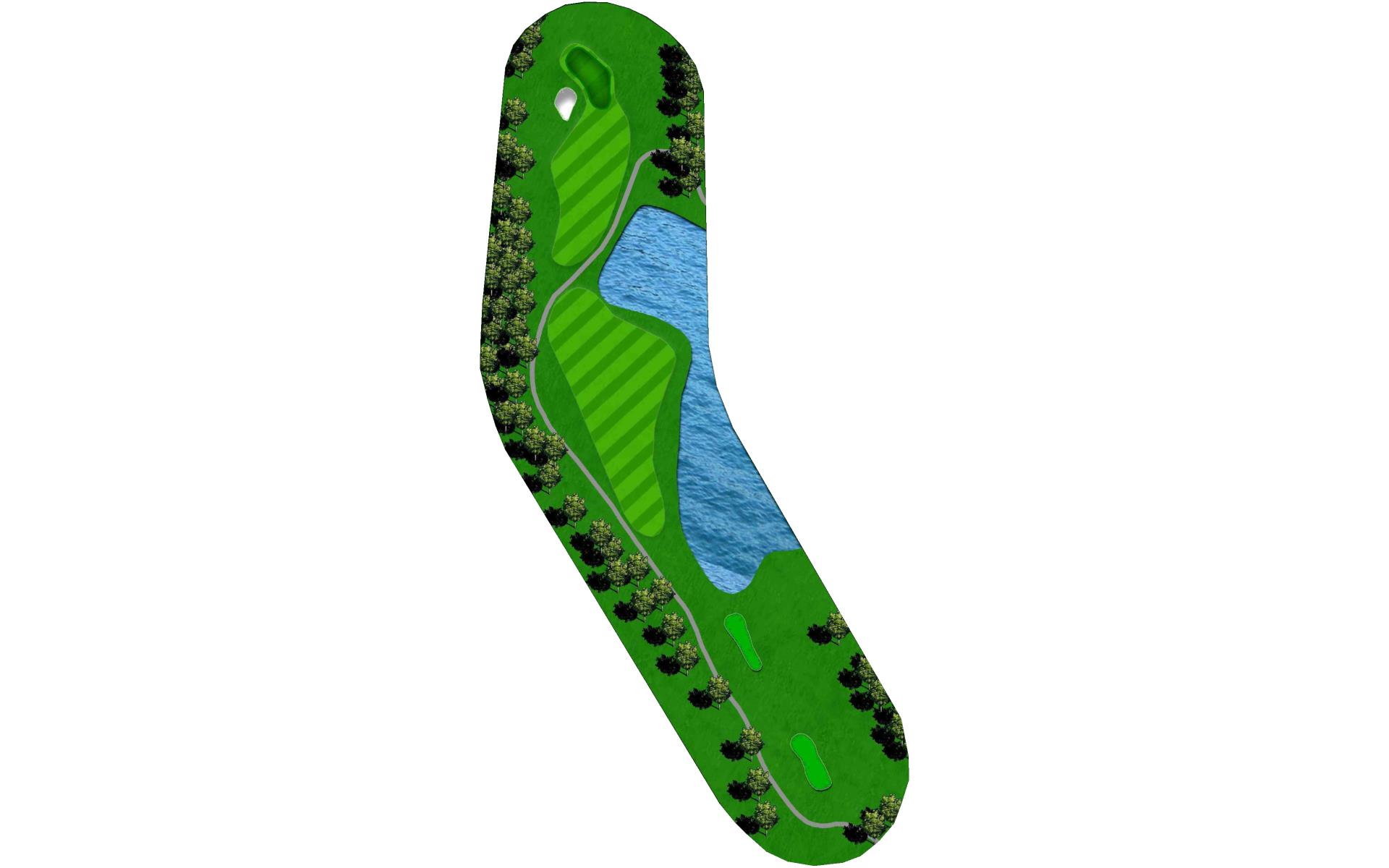 | A penalty area left and bunker right guard the green on the picturesque par 3. On the putting surface, a large slope in the middle will challenge even the best putters. |