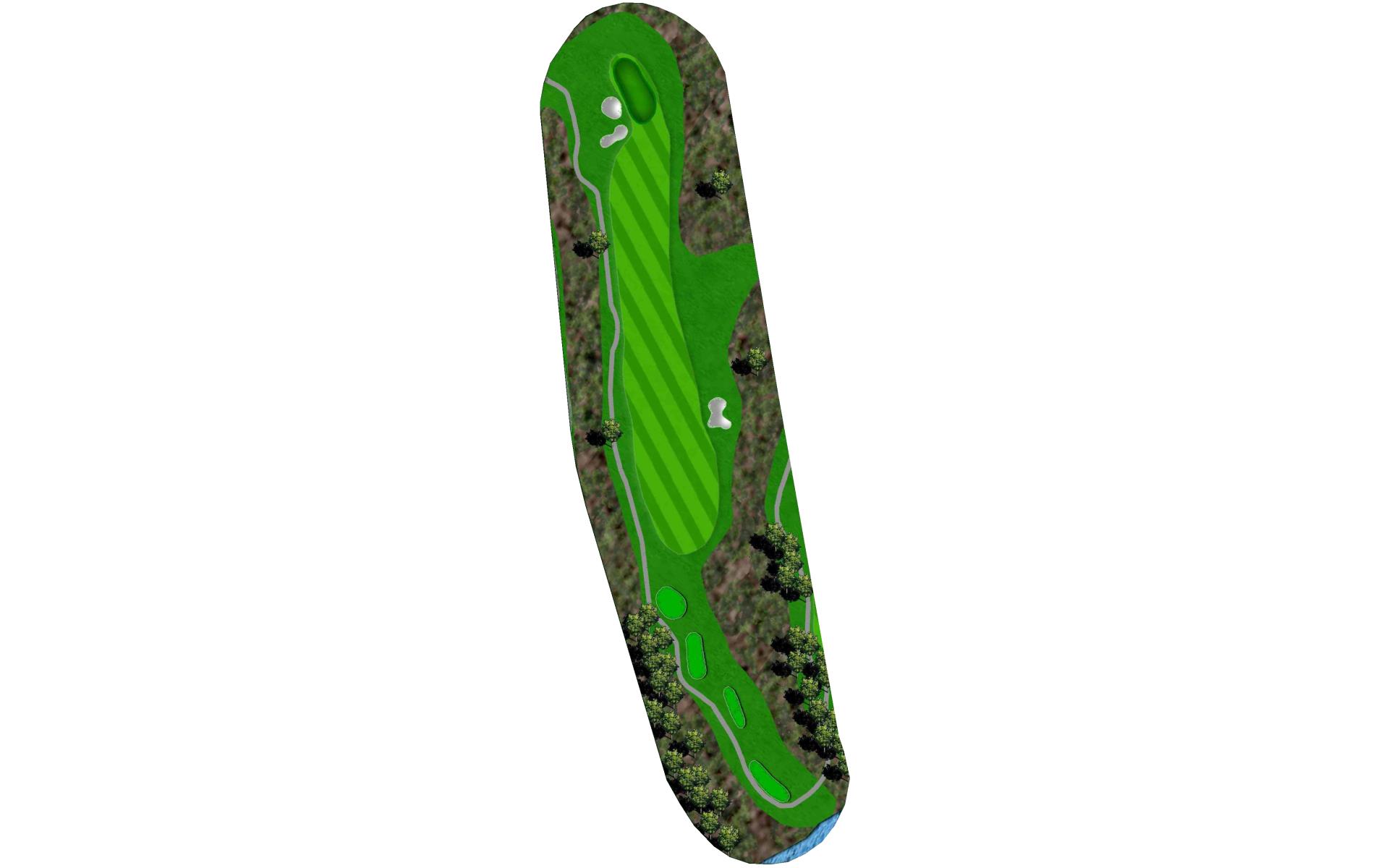 | The ideal tee shot on the par 4 fifth is to the right of the fairway bunkers that guard the left side. Approach shots from the top of the hill will have to be accurate as this green is the smallest on the course. |