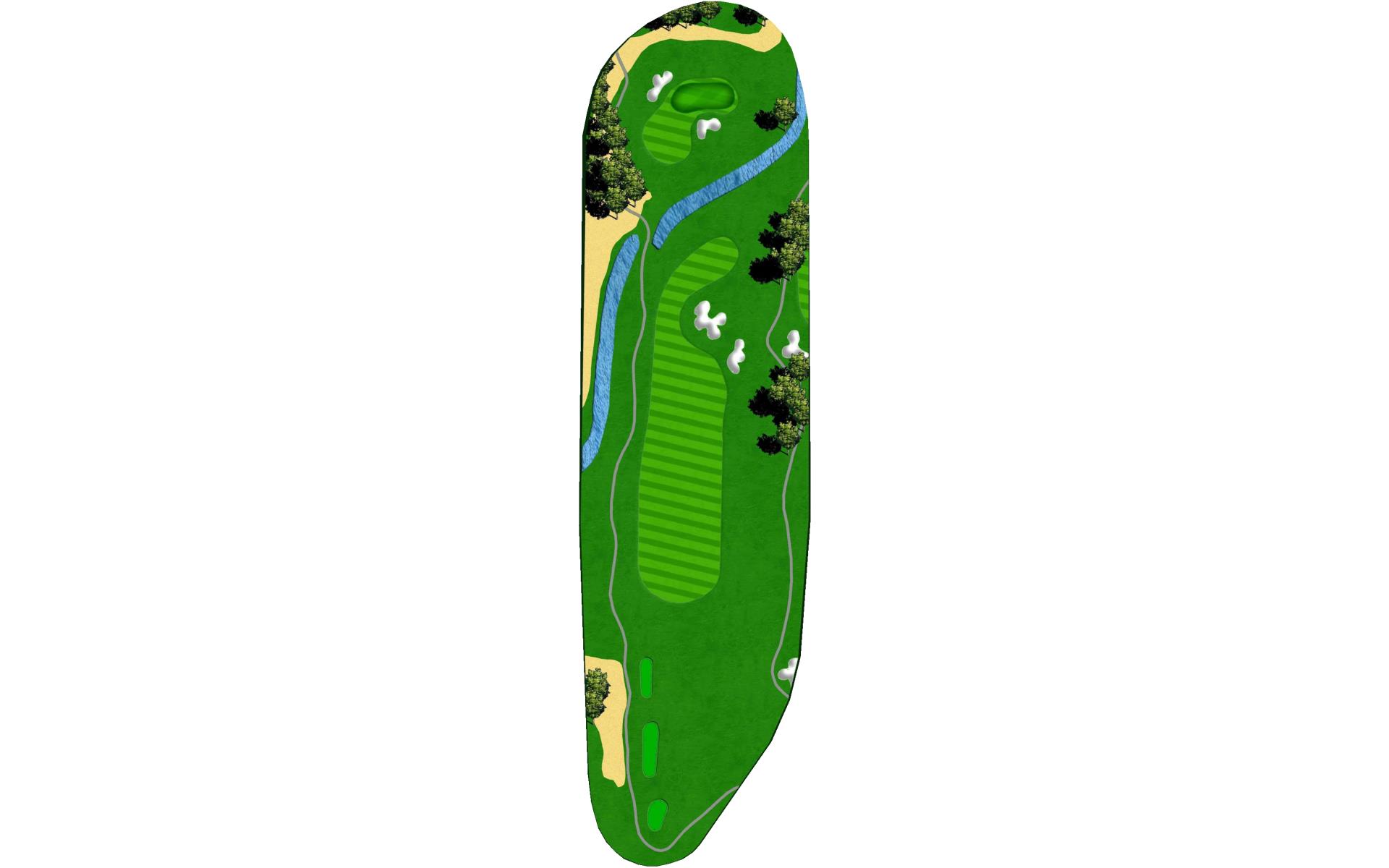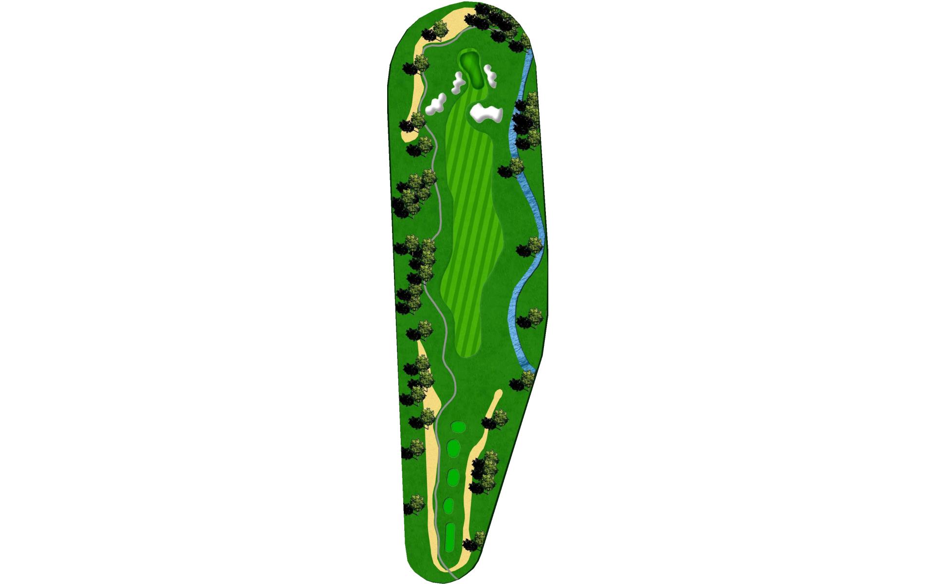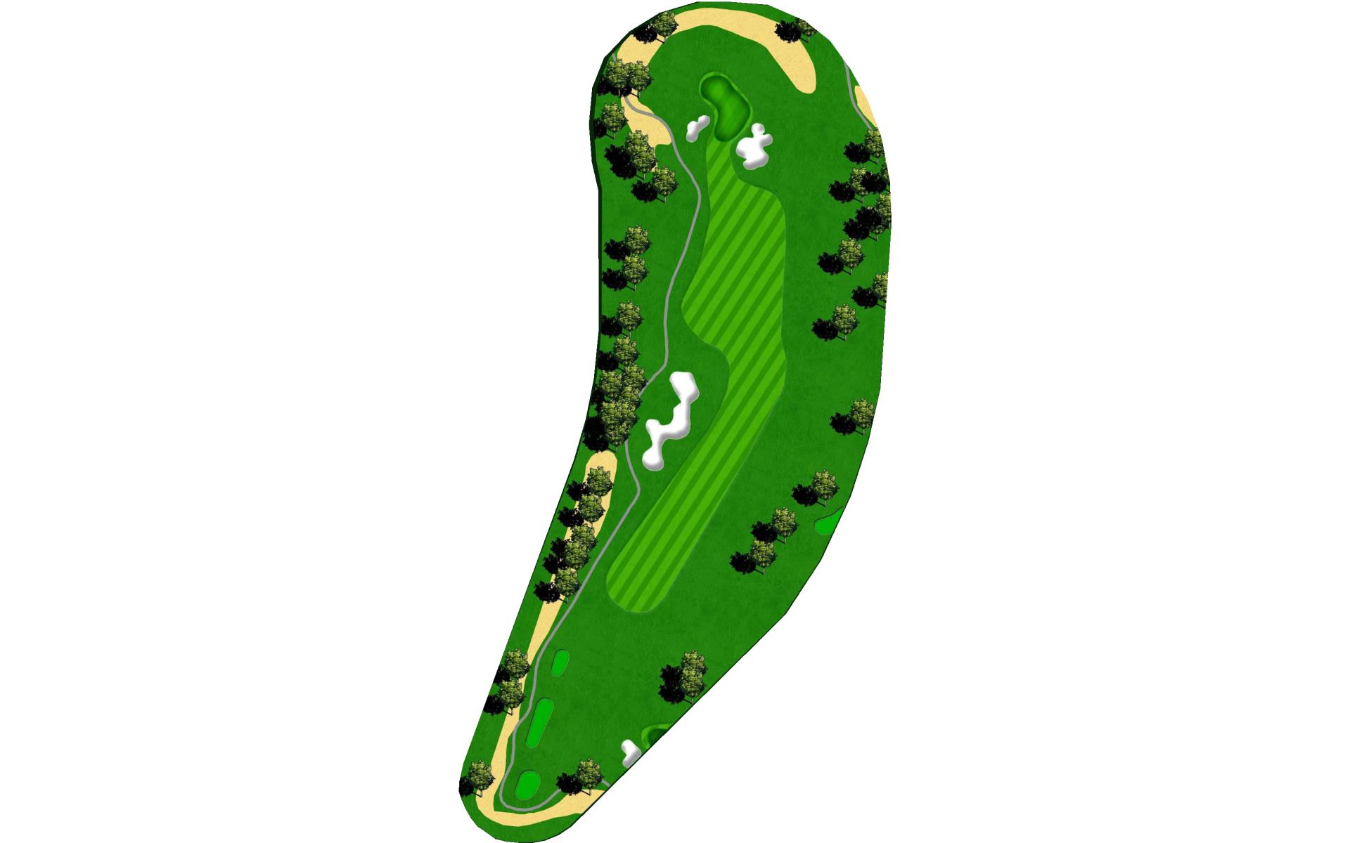 Longer hitters will want to take on the bunker at the corner of this dogleg left par 4. A tee shot that carries the left bunker will leave a wedge shot into this severely sloping green.