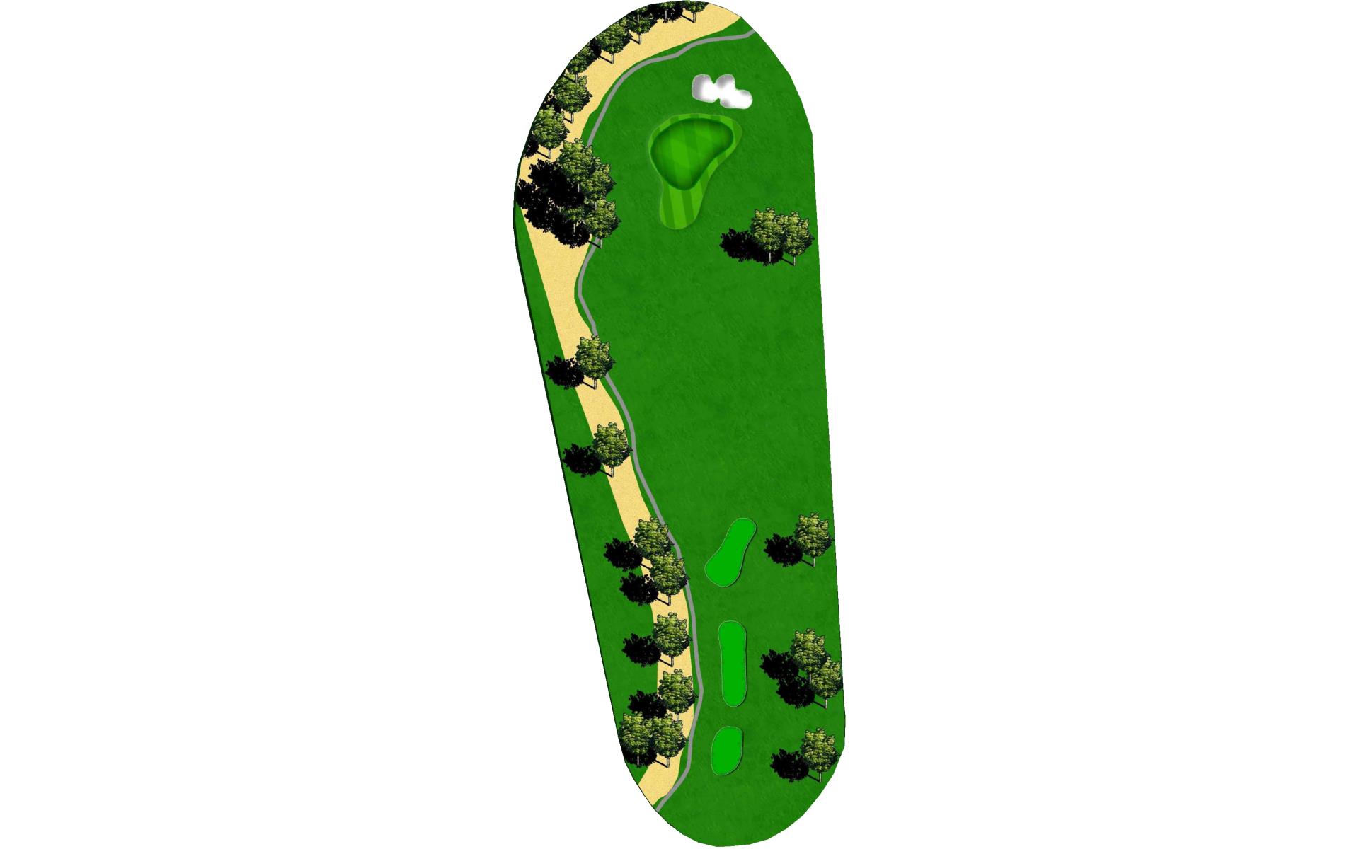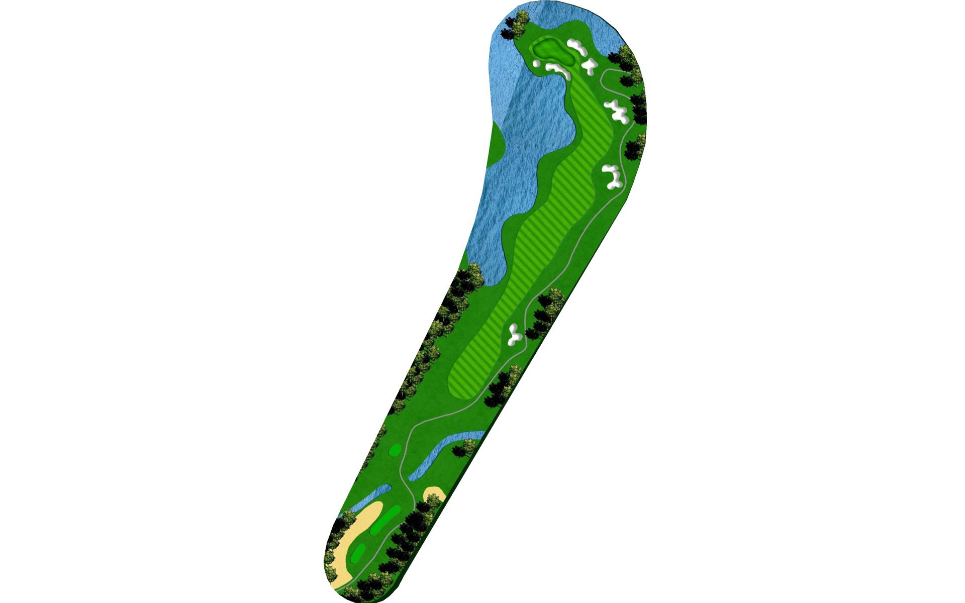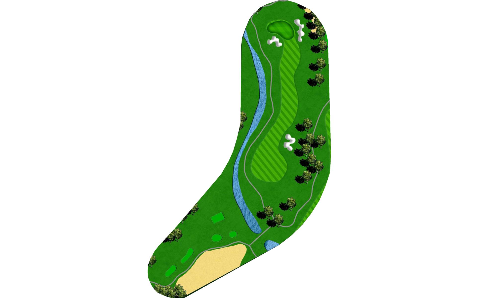 Longer hitters will want to take on the bunker at the corner of this dogleg left par 4. A tee shot that carries the left bunker will leave a wedge shot into this severely sloping green.