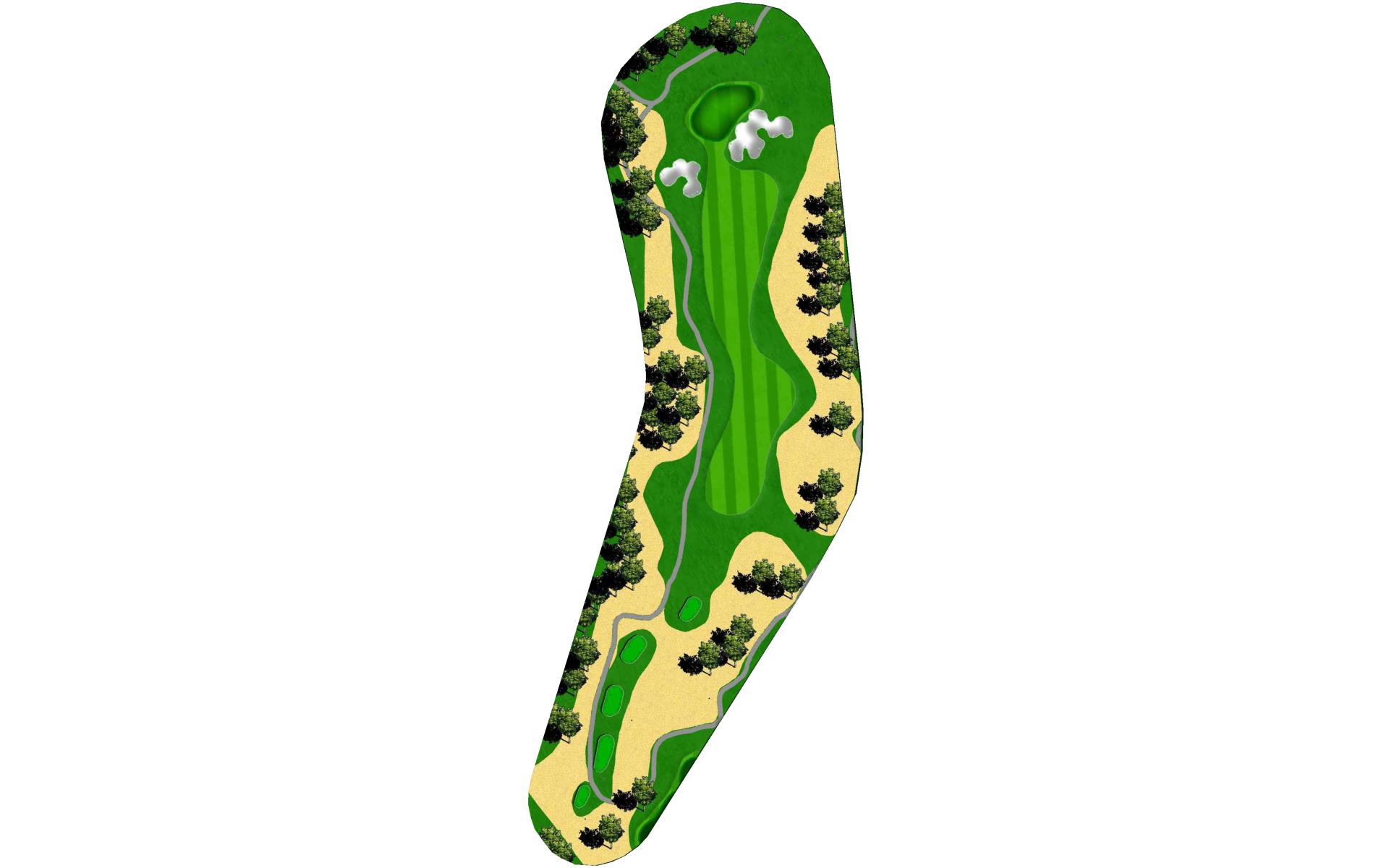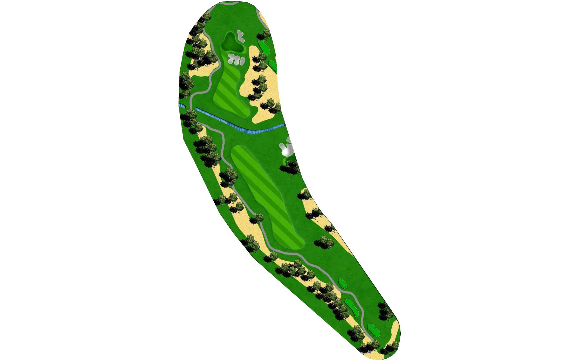 Although this par 4 bends slightly right overall, the tee shot favors a right to left shape to avoid the trees hanging over the left side of…