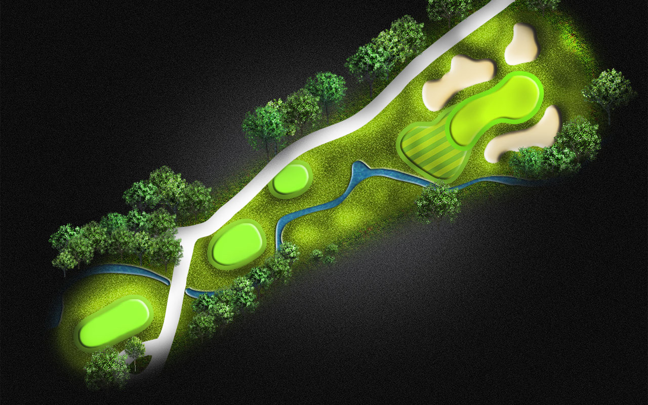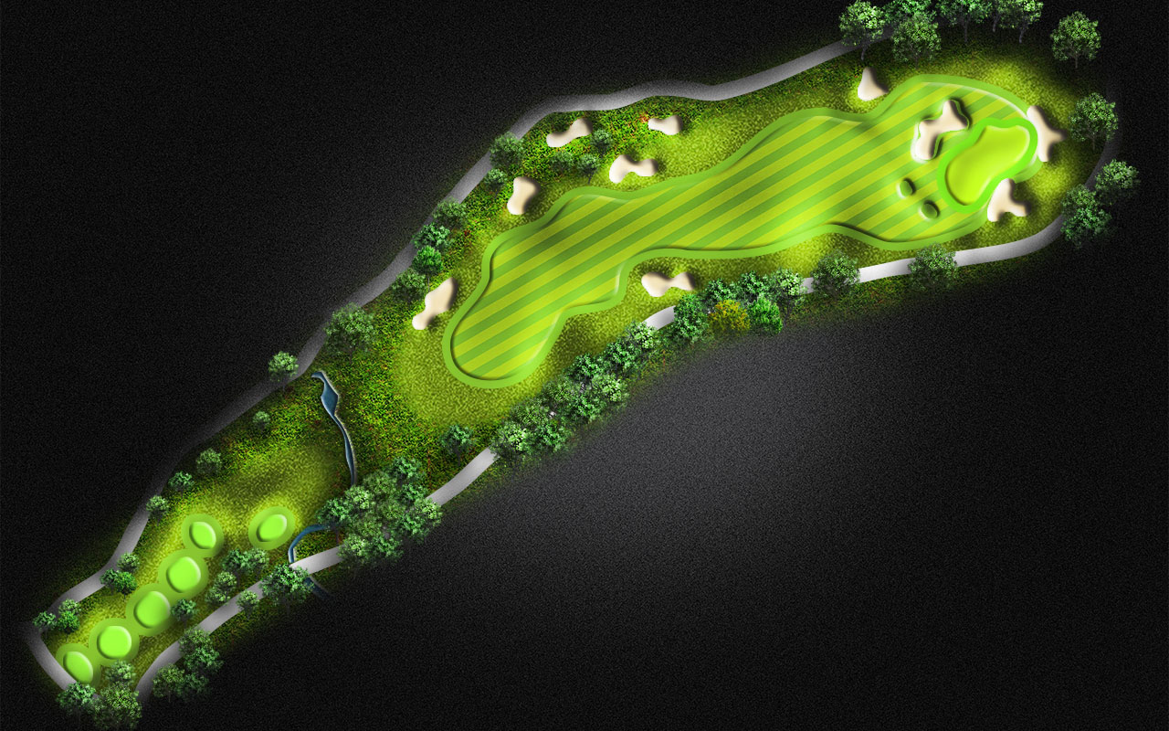 Usual wind will be right to left on this Par 4. Stay away from the creek on the left.
