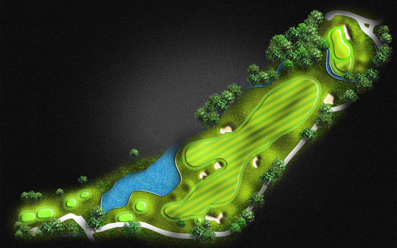 A demanding tee shot between 2 waters still leaves you a tough mid iron to the green surrounded by water on both sides. Drive it to the 150 yard marker gets you started on the last hole of the day.