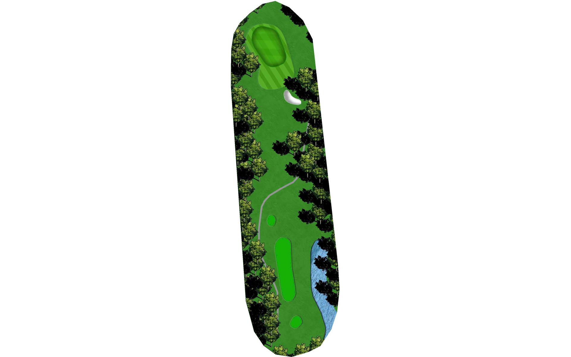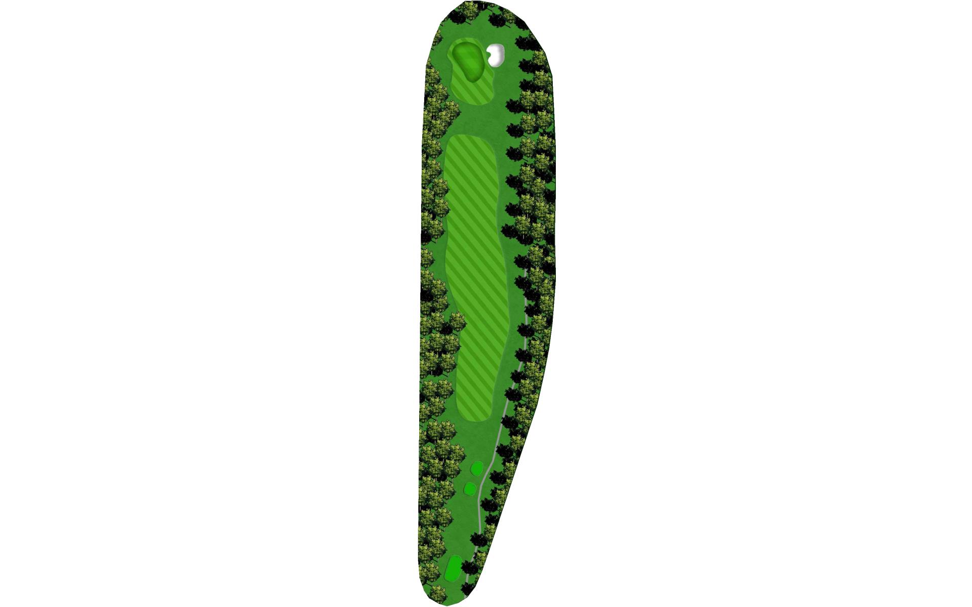A fairly short par 4 with a well protected green. Keep the drive to the right side of the fairway which will give you more options for your second shot. Hit the driver though as it's a birdie opportunity.