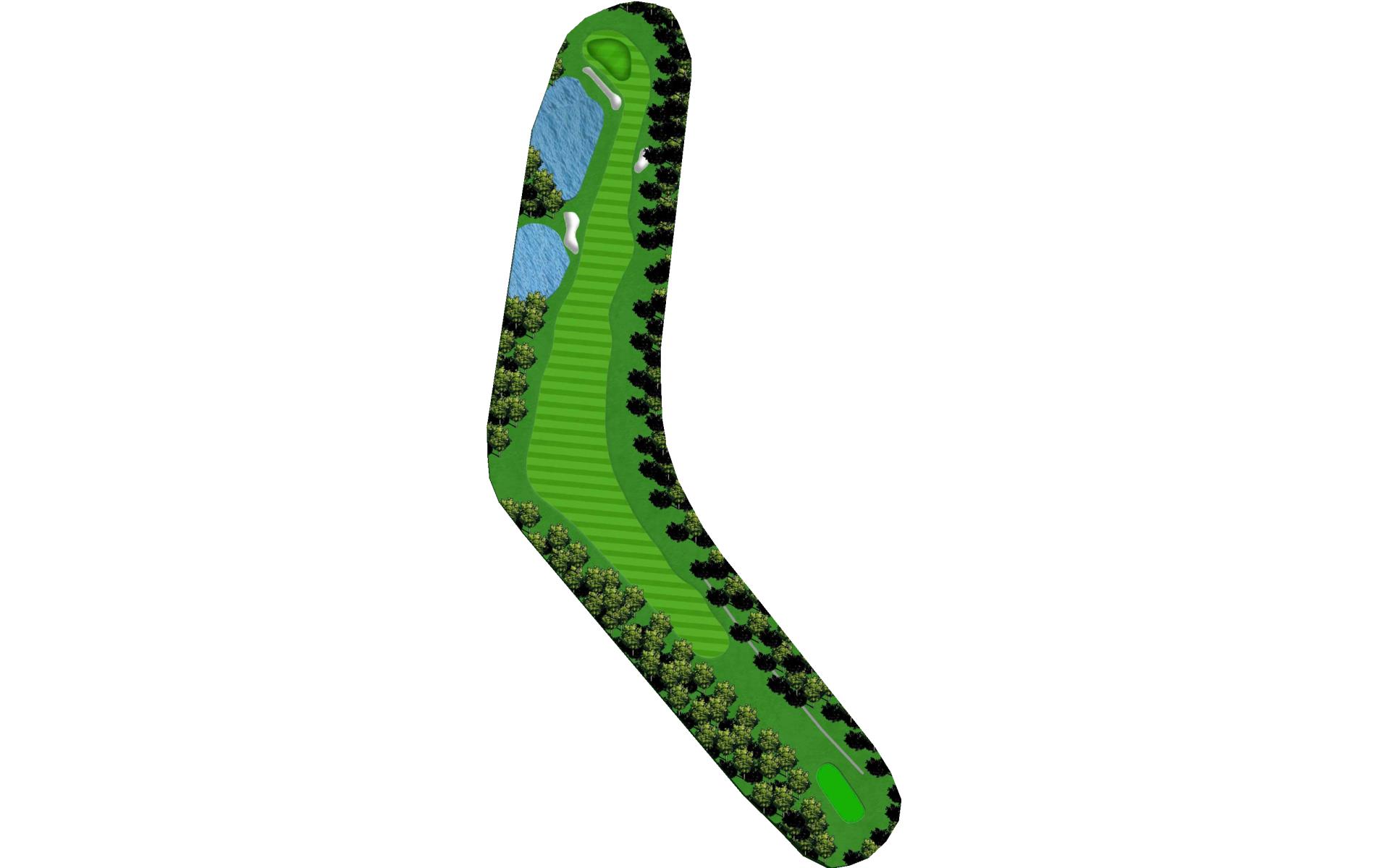 A dogleg right with a slight uphill second shot. You may want to keep the driver in the bag on this hole as positioning is more important than distance. You can usually play from the penalty area to the right off the tee but you'll have to bend it quite a bit if you're looking to make par.