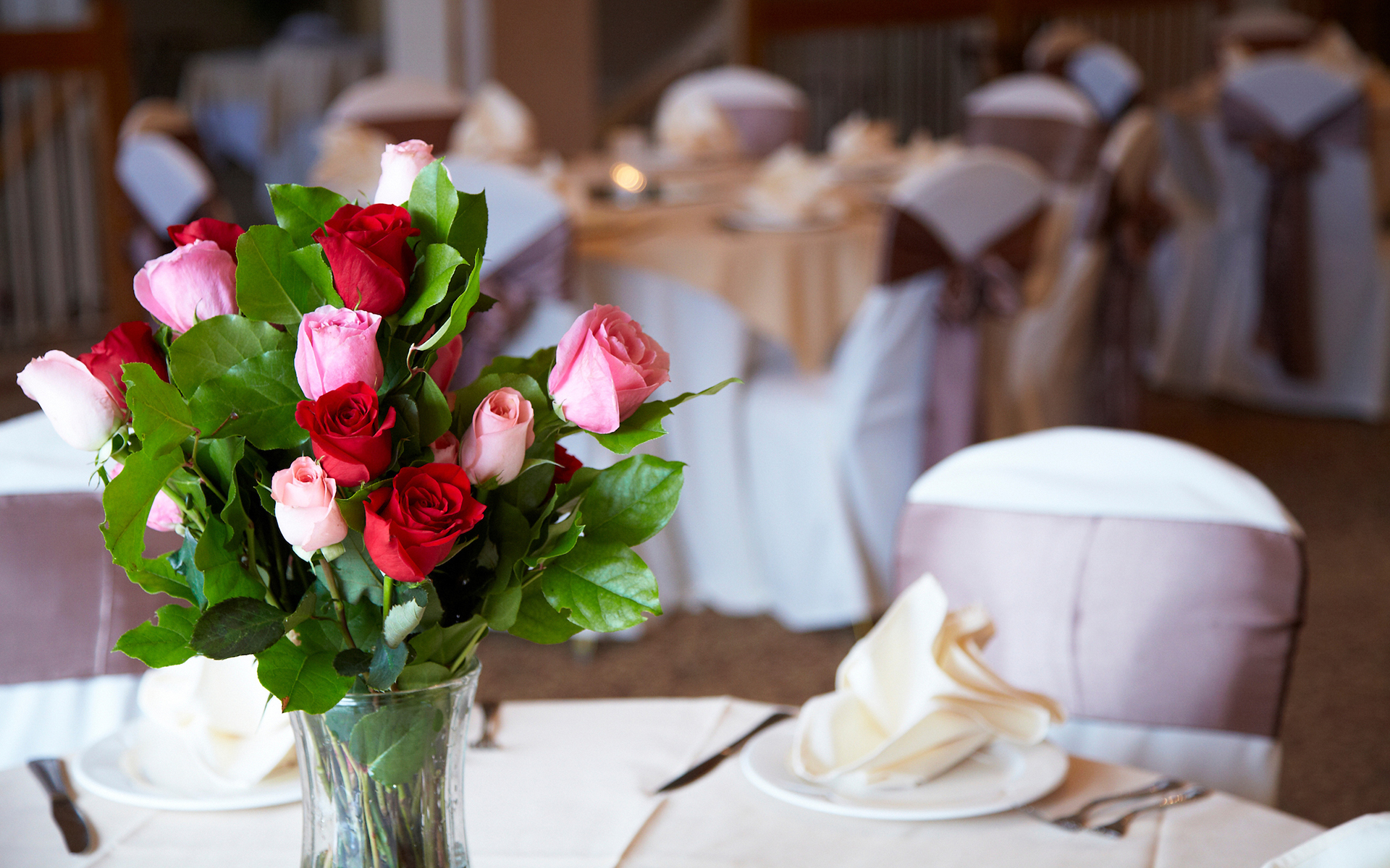 The Fairway Room is an open room with a high ceiling, majestic columns, and large windows. The French doors may be closed for privacy or opened to join with our ballroom for larger parties. The doorway to the balcony is perfect for those springtime afternoon celebrations, and the soft column lighting adds to the elegant glow of a candlelit evening reception. The Fairway Room can accommodate up to 100 guests.
