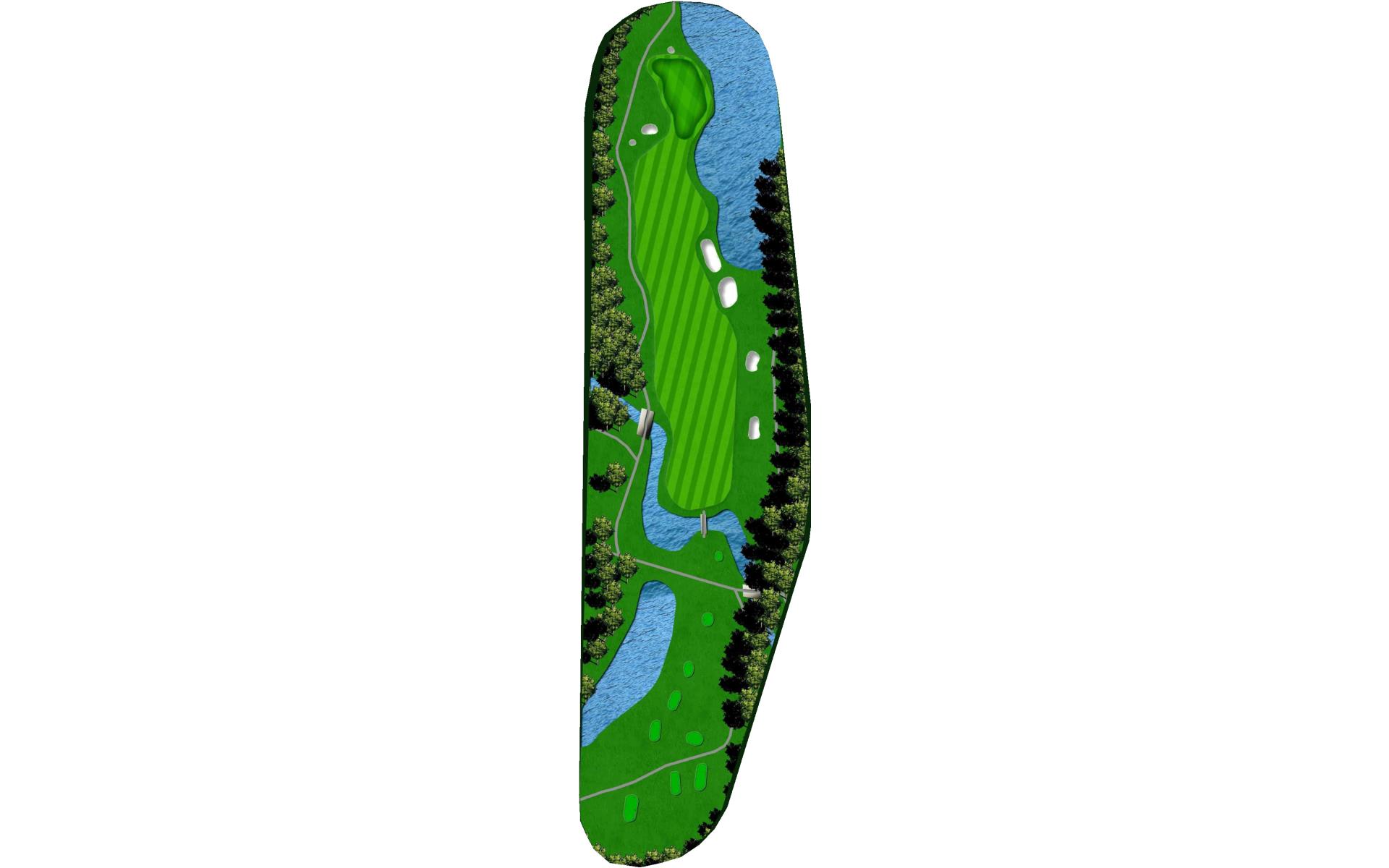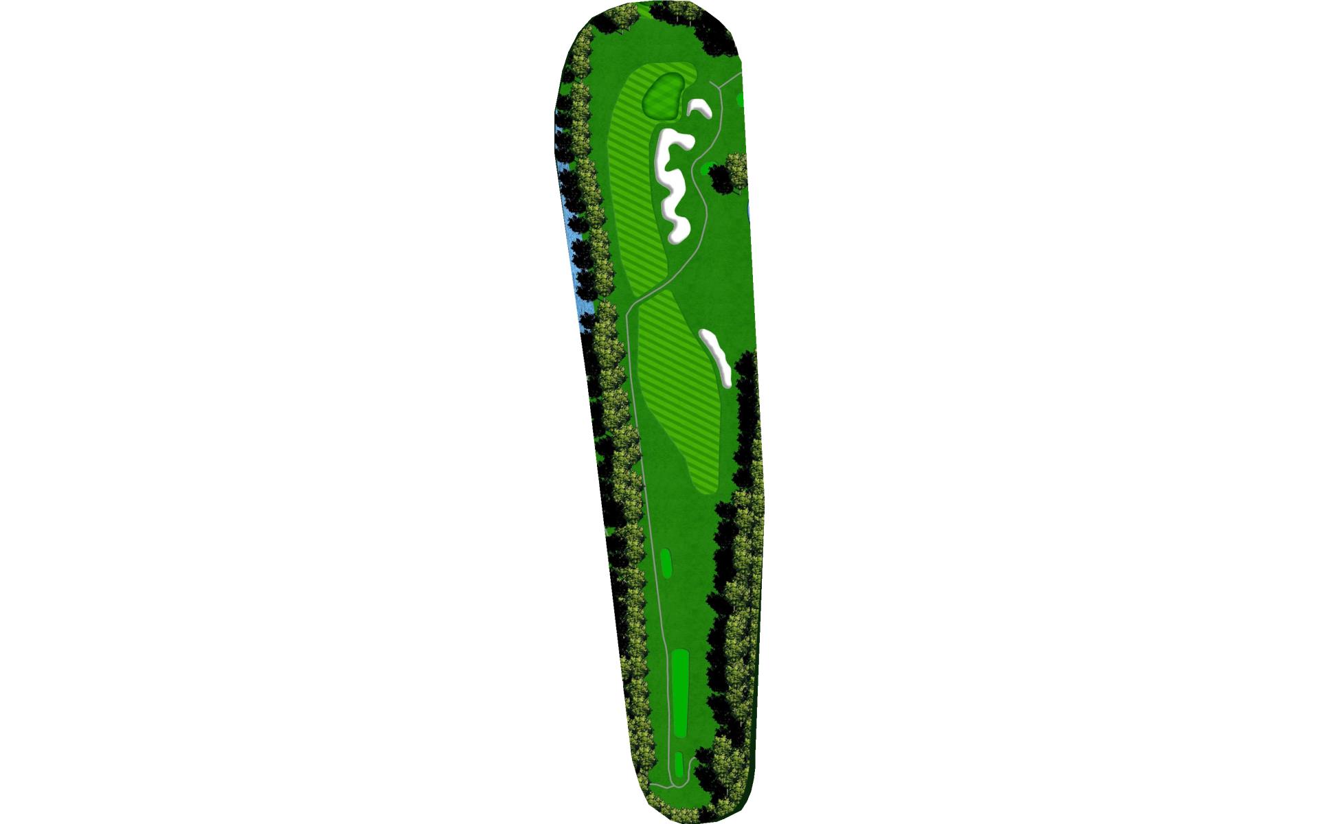 This extremely long par 4 has two hazards: length and water. Water is present on the right but it only amplifies the need for length on this bunkerless hole. With water and distance, this hole does not need anything else. Oh, but the woods around the green: nature's hazard.