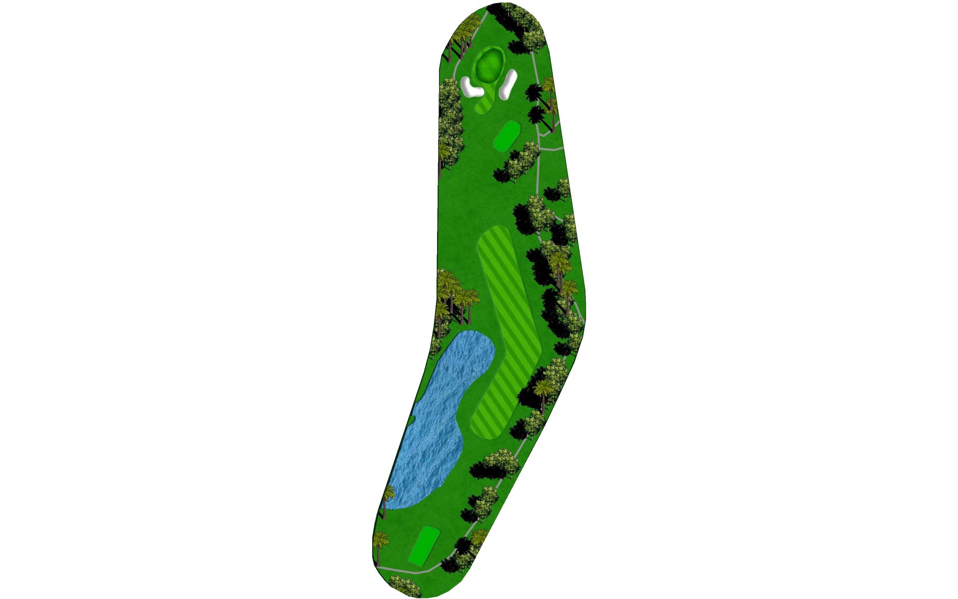 | Tee shot favors right to left ball flight on this short par 4, water is in play for longer tee shots. Green is sloped back to front with bunkers on both sides making this a hole that requires more thought than most. |