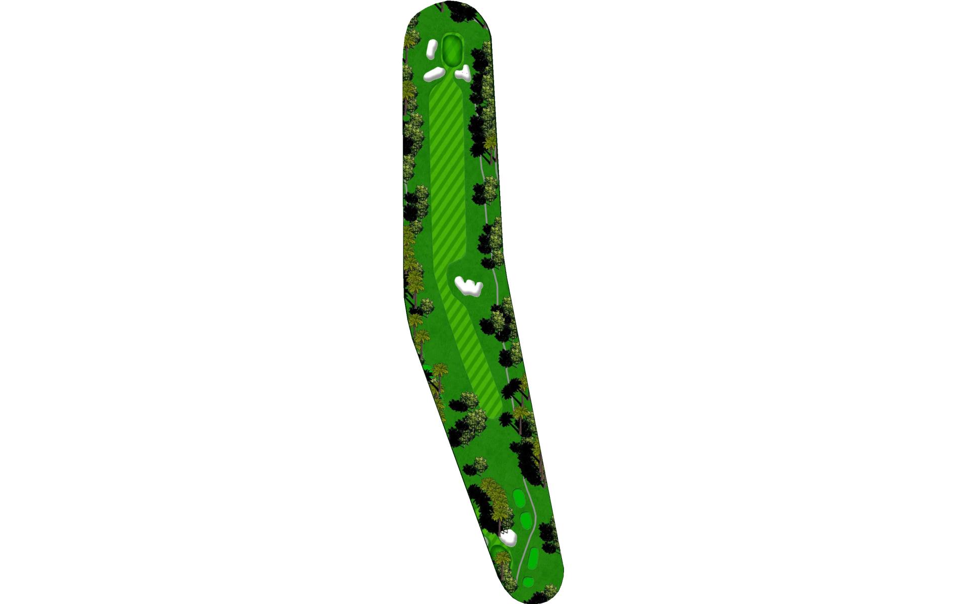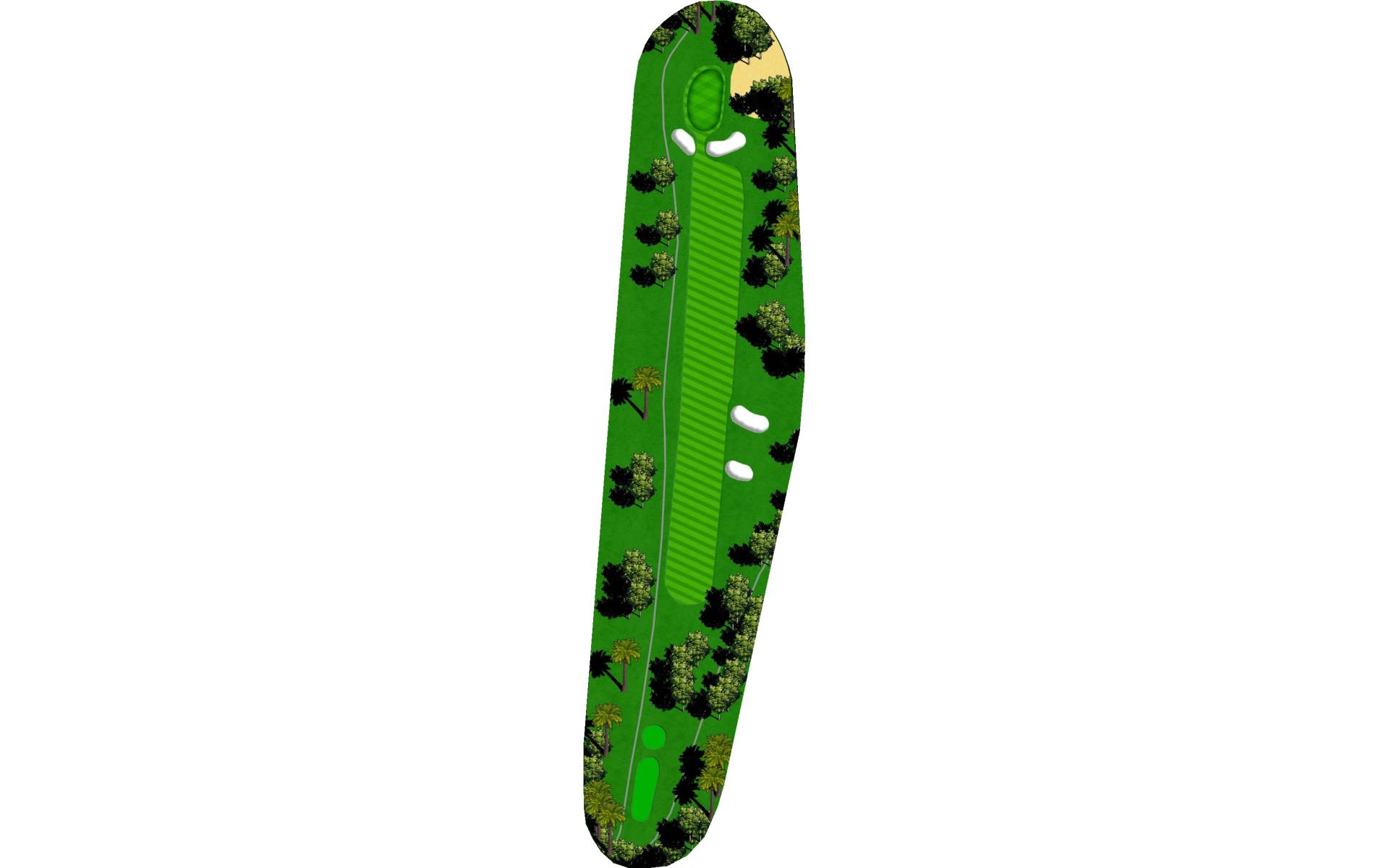 | Bunker off the tee is well placed and catches lots of tee shots. Once the bunker is navigated properly, players have a couple hundred yards of birdie opportunity with a fairly neutral putting surface. |