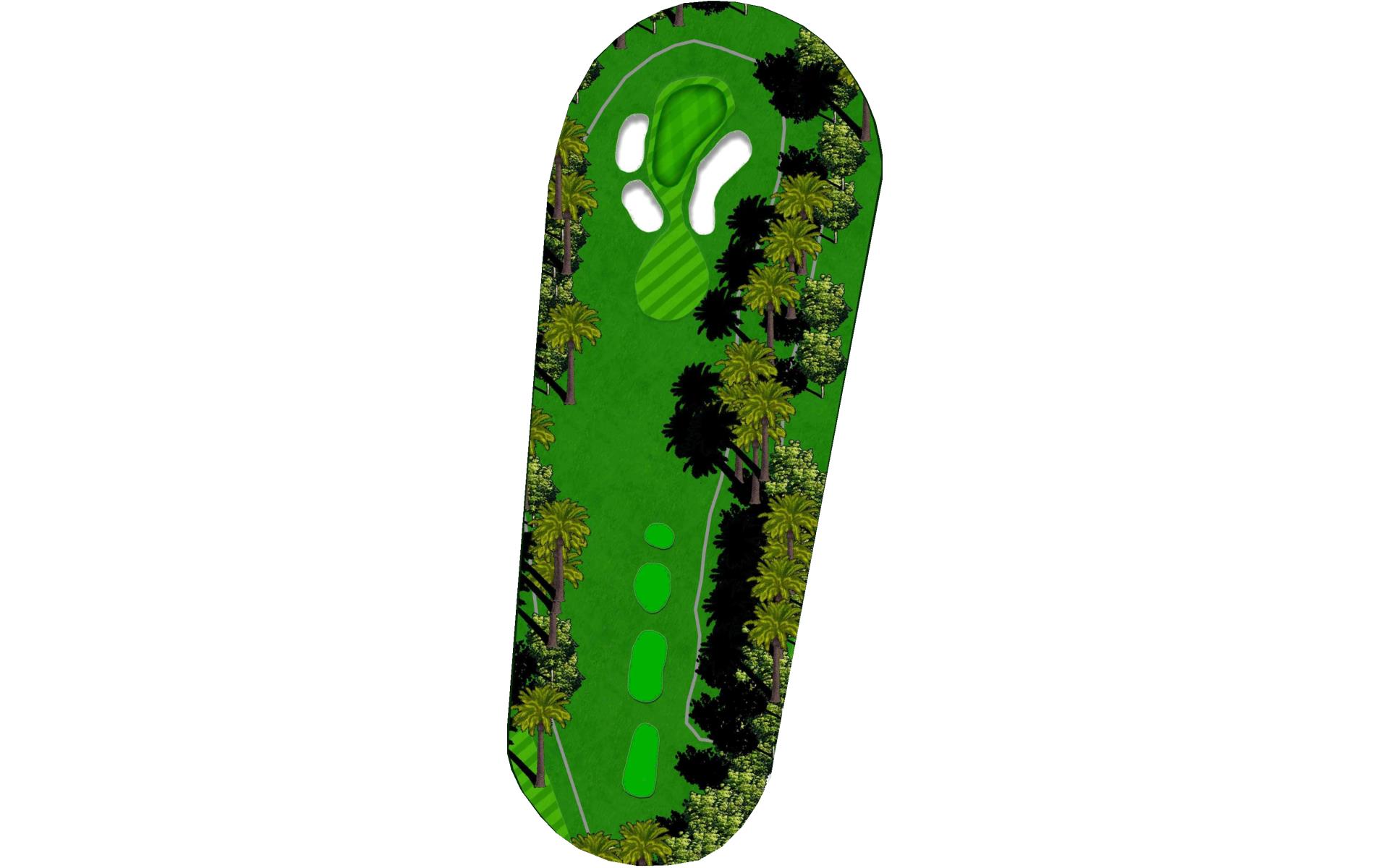 | Favors right to left tee shot - green has severe slope back to front - better to stay under the hole here for sure. |