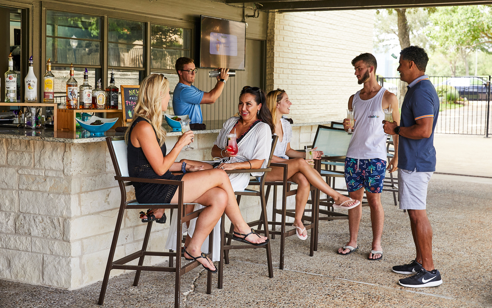 Our designated play area keeps families entertained. Challenge each other on the putting green, play cornhole, or have a giant Jenga or Connect Four showdown. Fun for all ages awaits poolside.