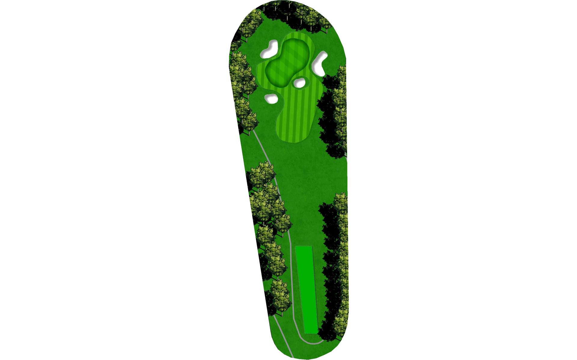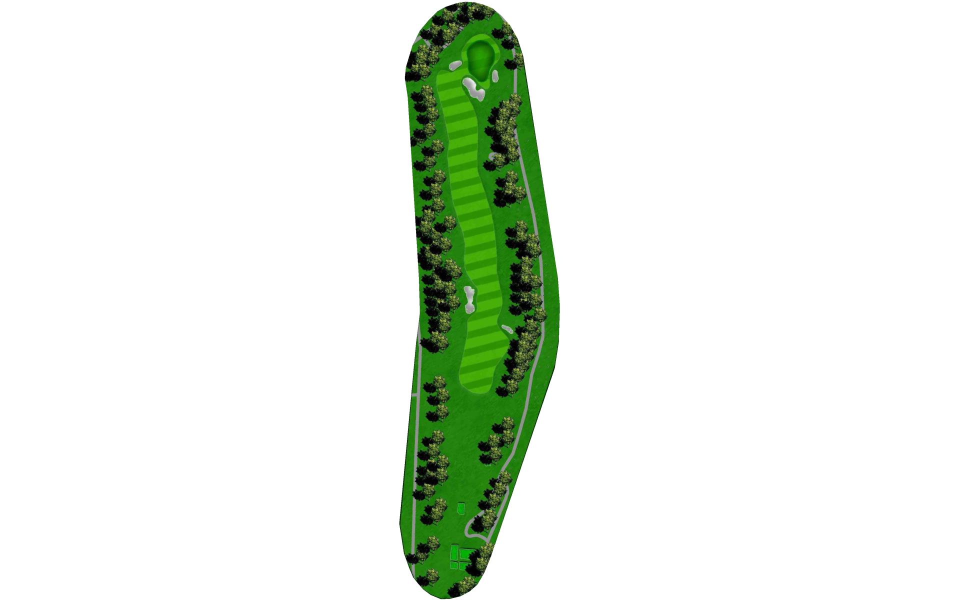 One of the most difficult par 4s on the course; your tee shot is critical to making par. A slight draw with a driver or well placed layup will avoid the dangers of the tree lined fairway.