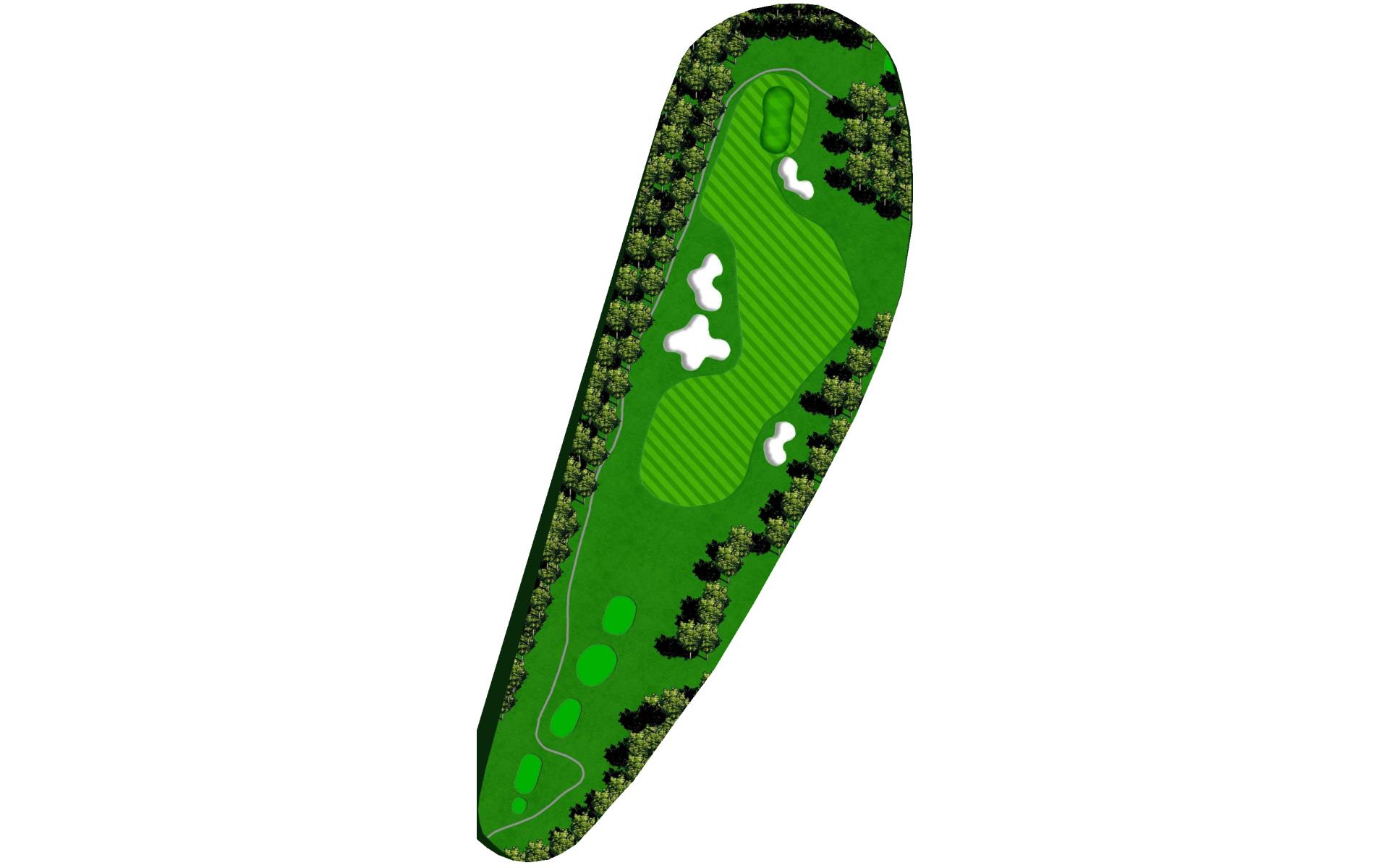 This dog leg requires a long-iron or 3-wood shot to make it to the corner. You don't want to go through the fairway or you will find the creek, to short and trees will block you out from the green. The green is guarded by a creek that flows in front and down the right side of the green.