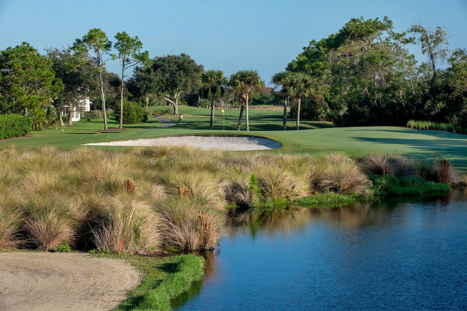 Designed by the renowned golf course architect Mark McCumber, the Marsh Creek golf course spans across lush green fairways, framed by towering oak trees and pristine water features. The course seamlessly blends the natural beauty of the surrounding marshes, creeks, and lakes, creating a scenic and tranquil atmosphere that enhances your golfing experience.