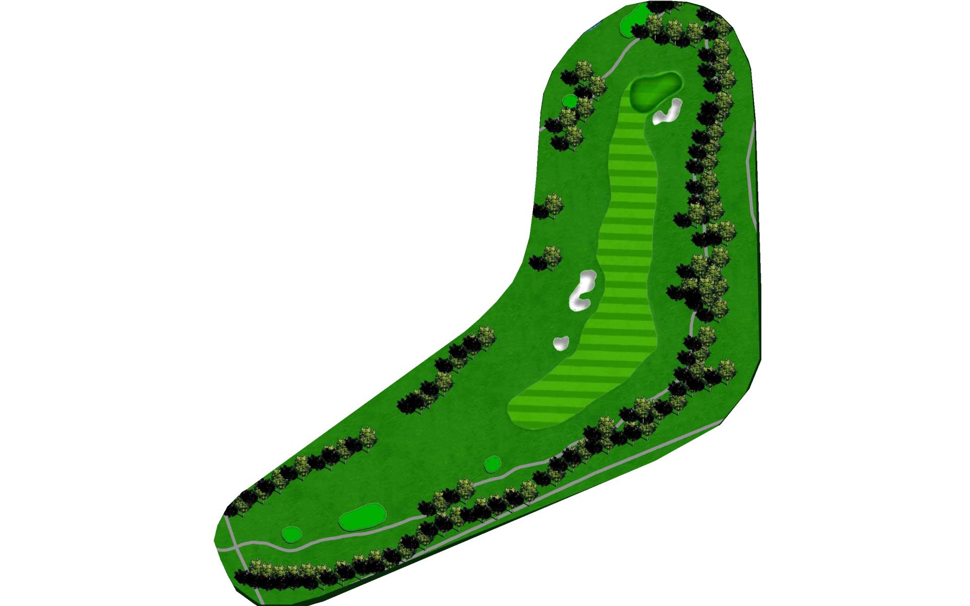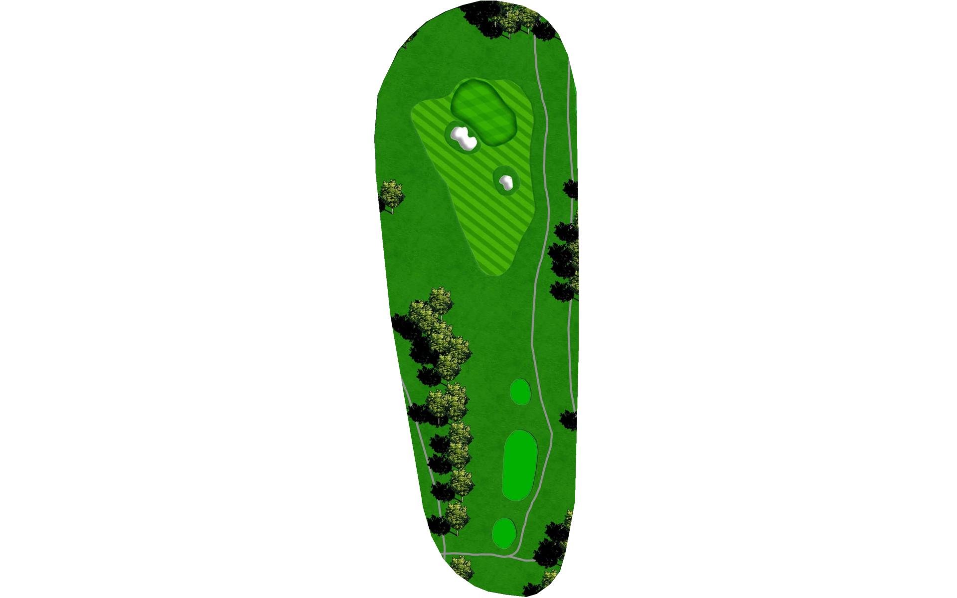 | The first par 5 on the golf course is a long, tough test, where the best strategy is to hug the left side of the fairway the whole way. The drive will have to carry a short, small water hazard and the fairway bunkers left of the landing area. The second will, again, need to miss a larger fairway bunker on the left. The final stretch is peppered with bunkers on both sides on its way to a green that slopes away from the strong landform on the front-right. |