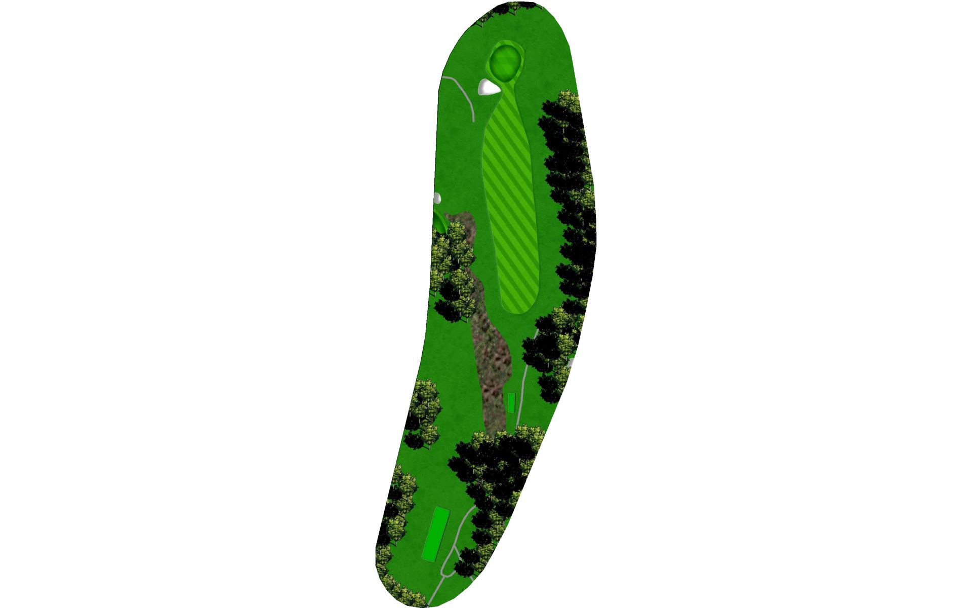 | The longest of our five par 3 holes, this hole is 225 and slightly downhill. The right-to-left green is protected on both sides by bunkers but has an open front to allow players to lay up if they don’t have the distance. Take your par and run if you can. |