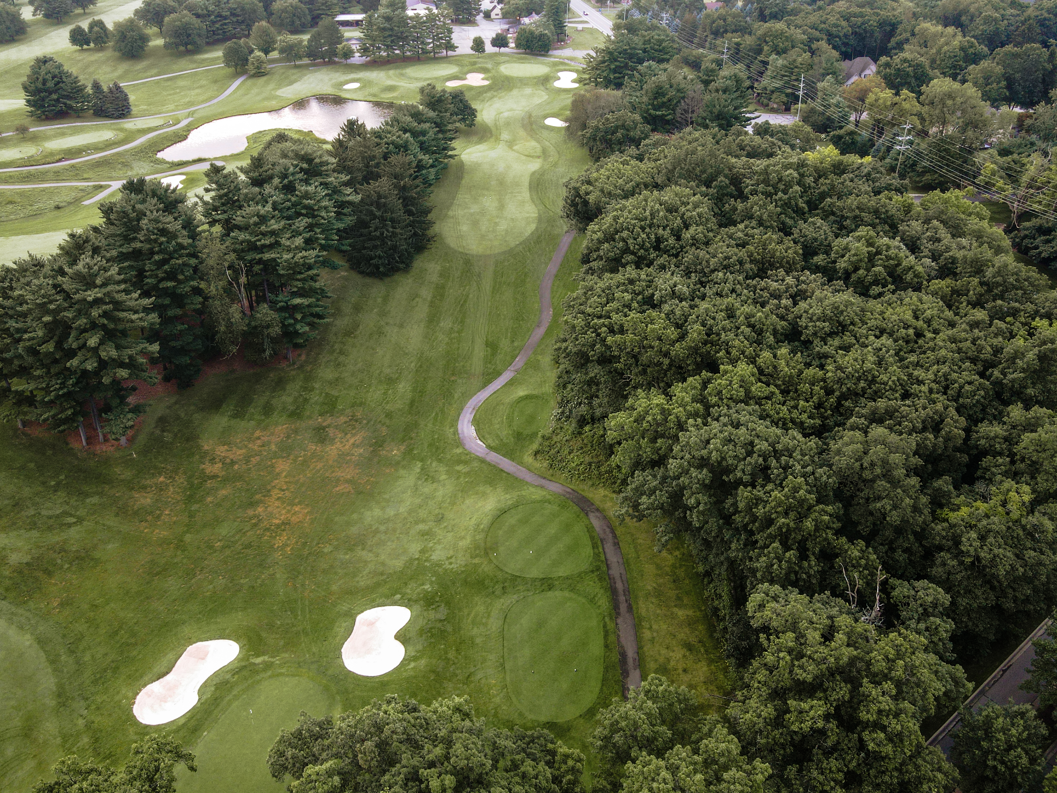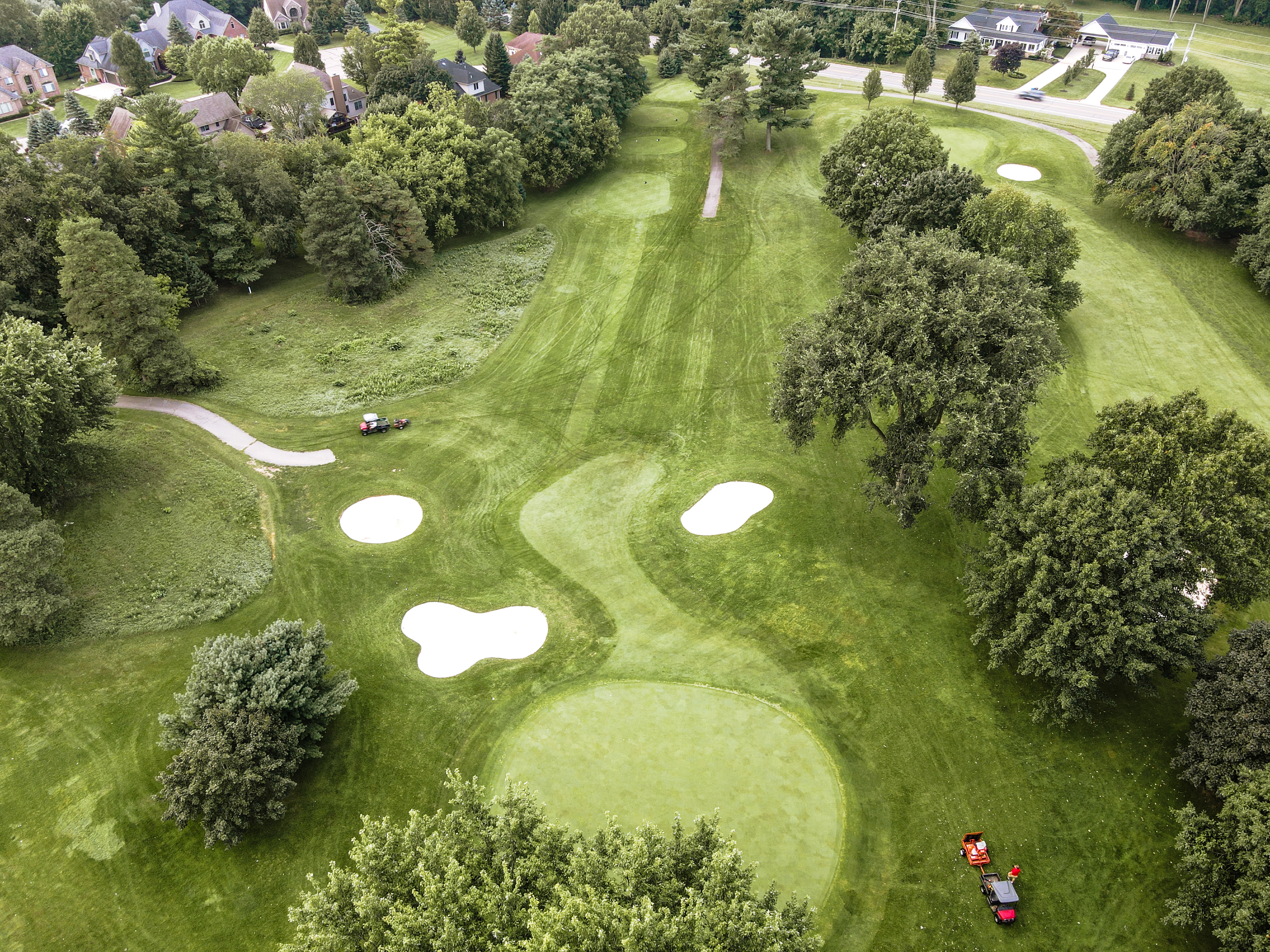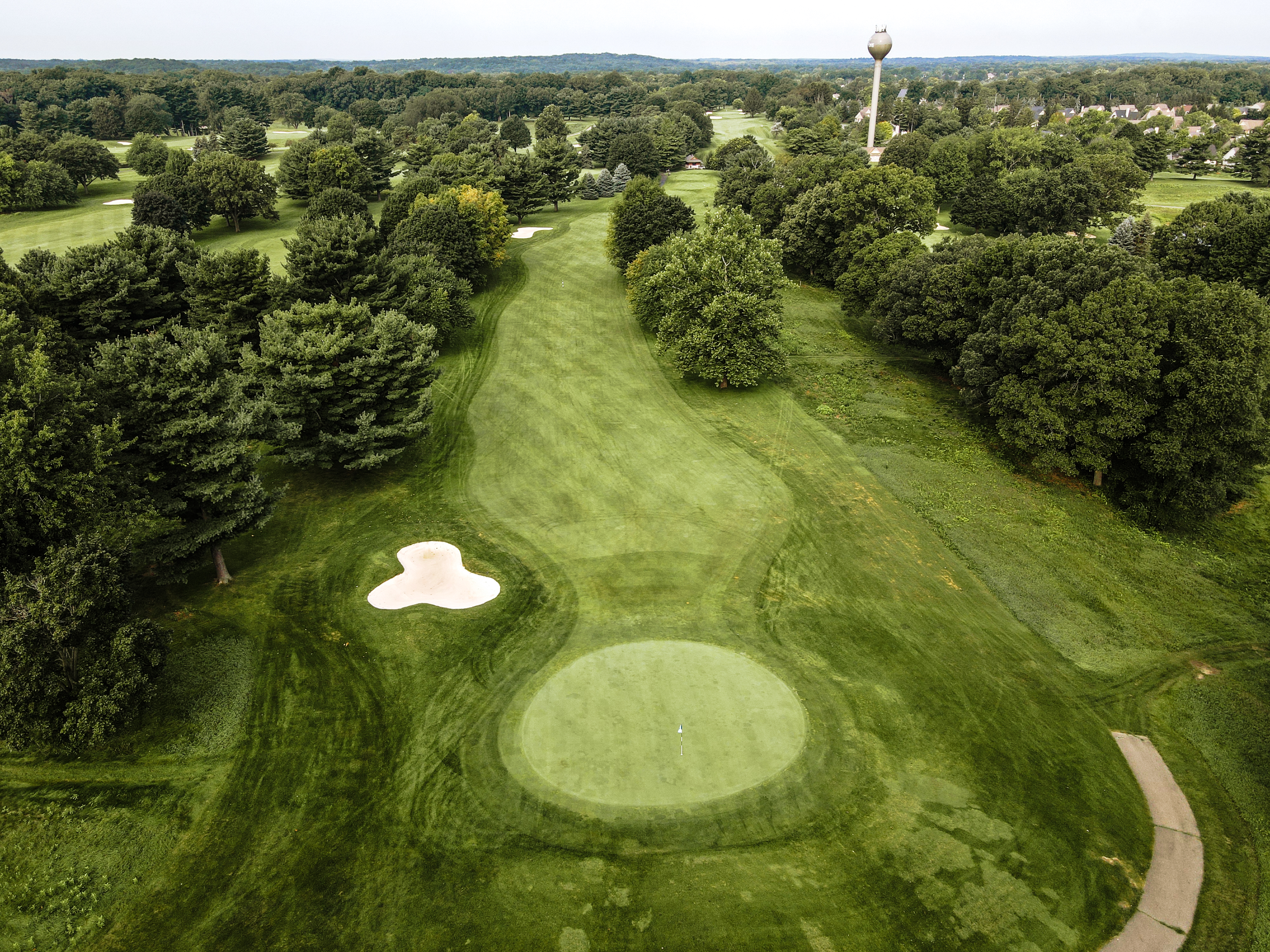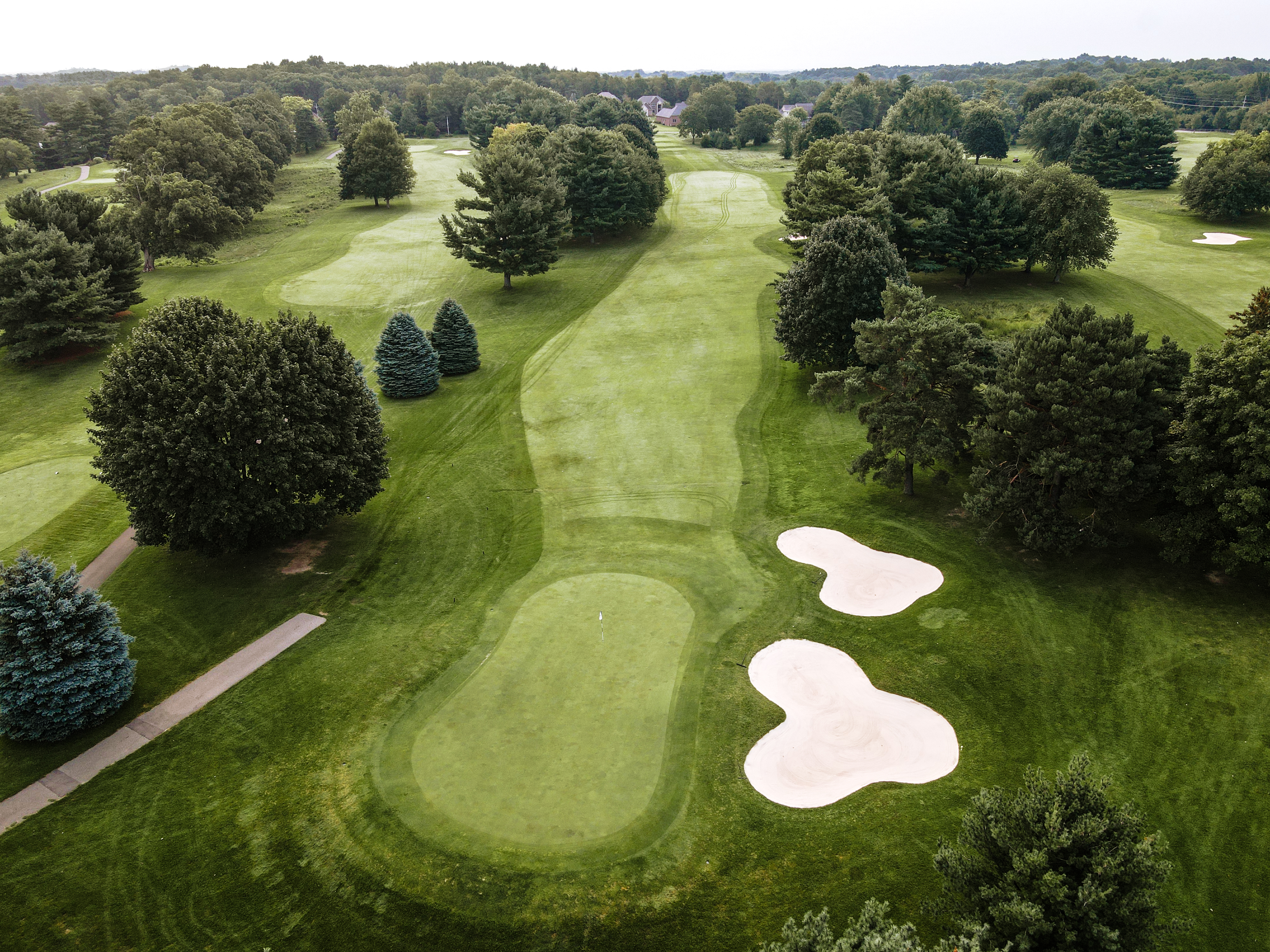Is the longest Par 4 on the front nine. An accurate tee shot will avoid the trees on both sides of the fairway. A drive aimed a few yards right of the left side fairway trap sets you up for a good approach shot. The green is protected by sand traps on the left side and mounding on the right side. Once on the green the player will need to manage putts that can have significant break.