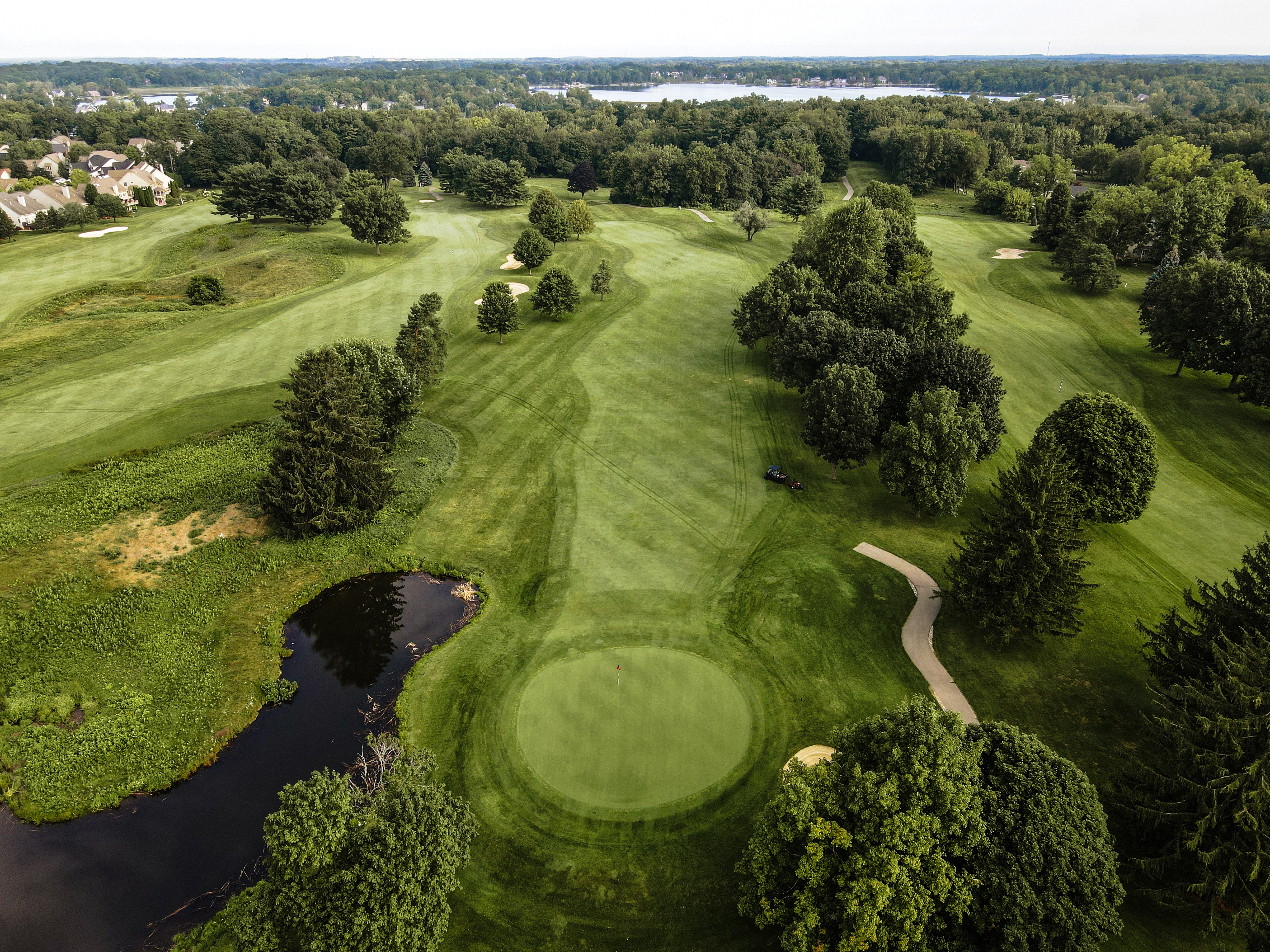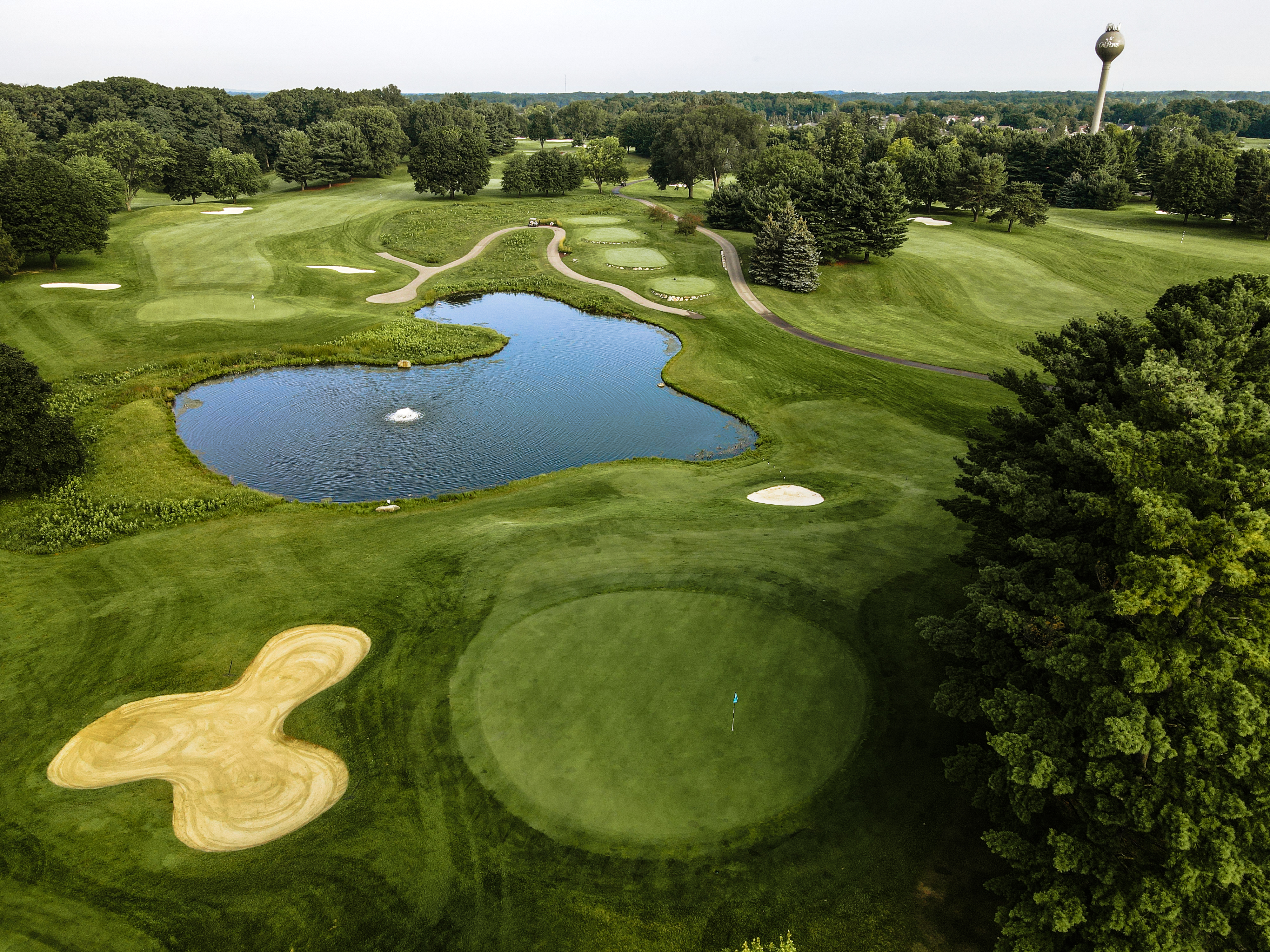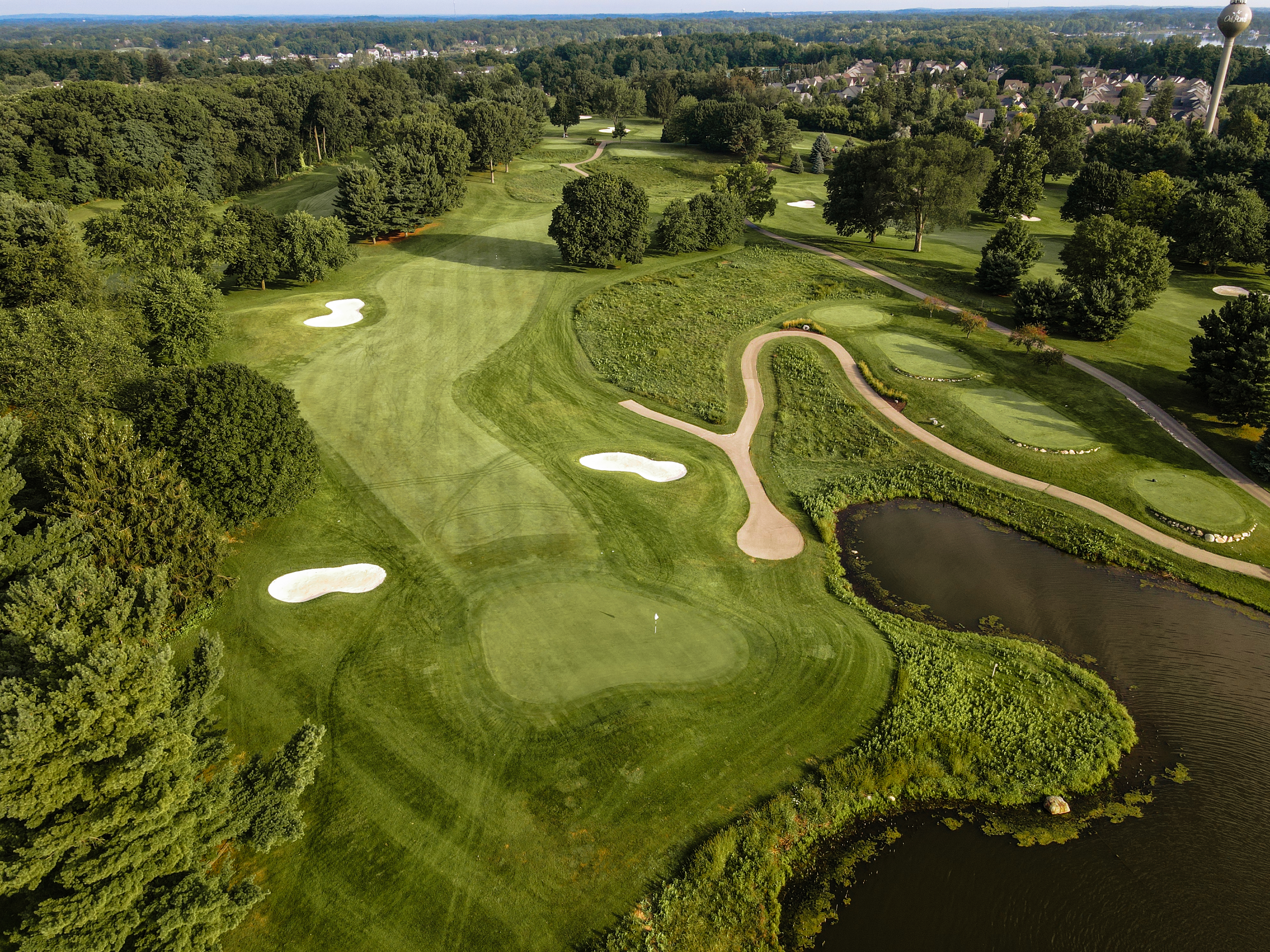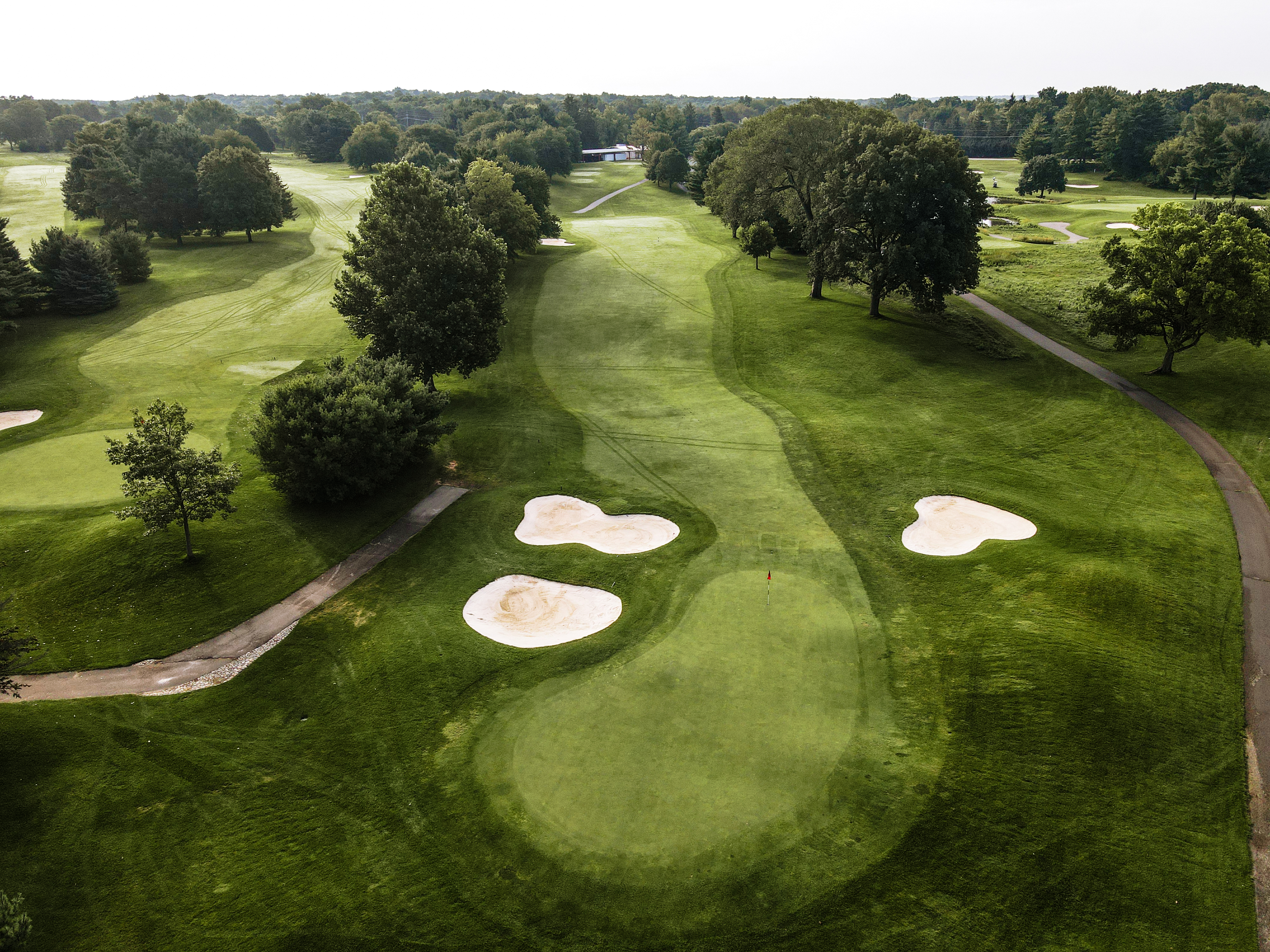 Is the longest Par 4 on the front nine. An accurate tee shot will avoid the trees on both sides of the fairway. A drive aimed a few yards right of the left side fairway trap sets you up for a good approach shot. The green is protected by sand traps on the left side and mounding on the right side. Once on the green the player will need to manage putts that can have significant break.