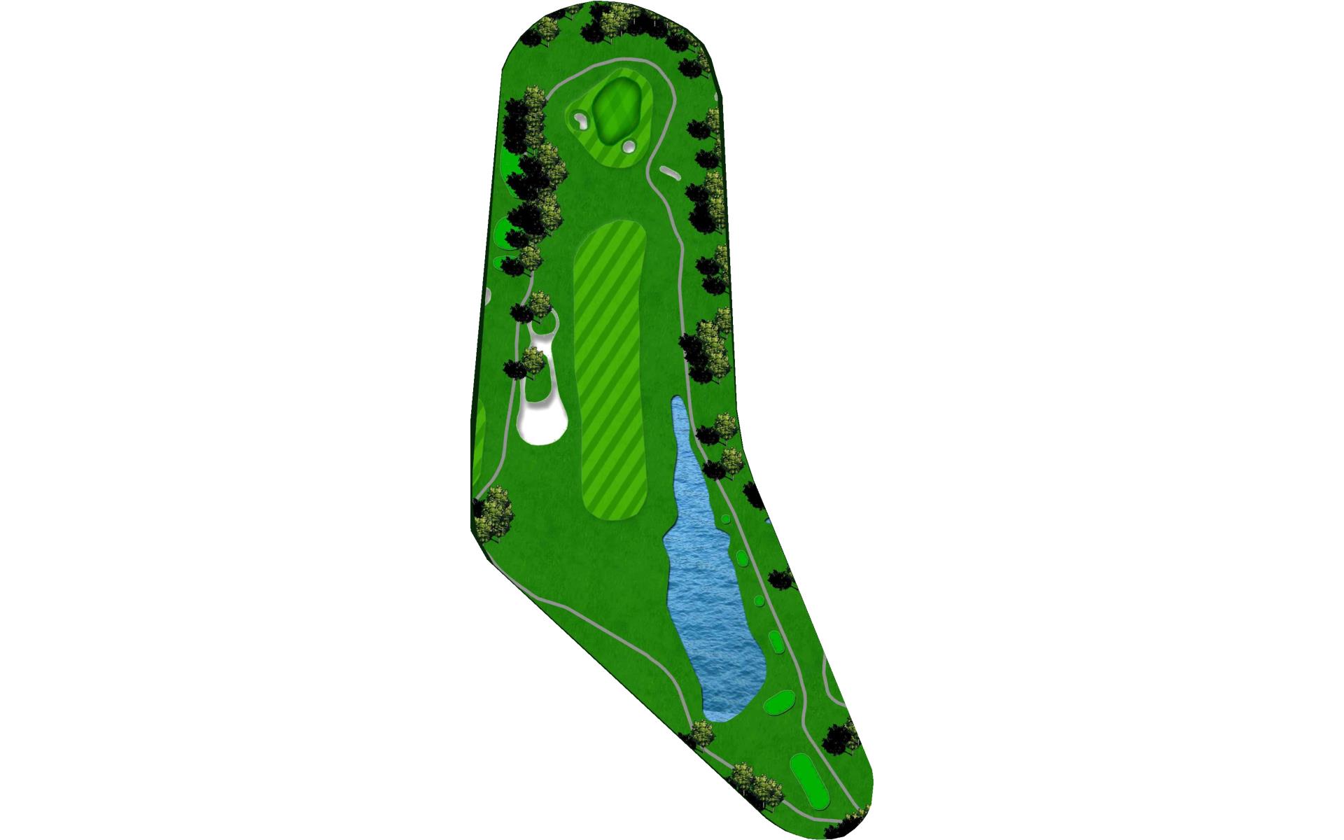 Toughest driving hole on front nine. Lake on the left and OB right make accuracy off tee premium. Good drive leaves mid-long iron approach to well protected green. Bunkers short and right protect front of green with large drop collection area right. Make par and you’re picking up strokes on your competitors.