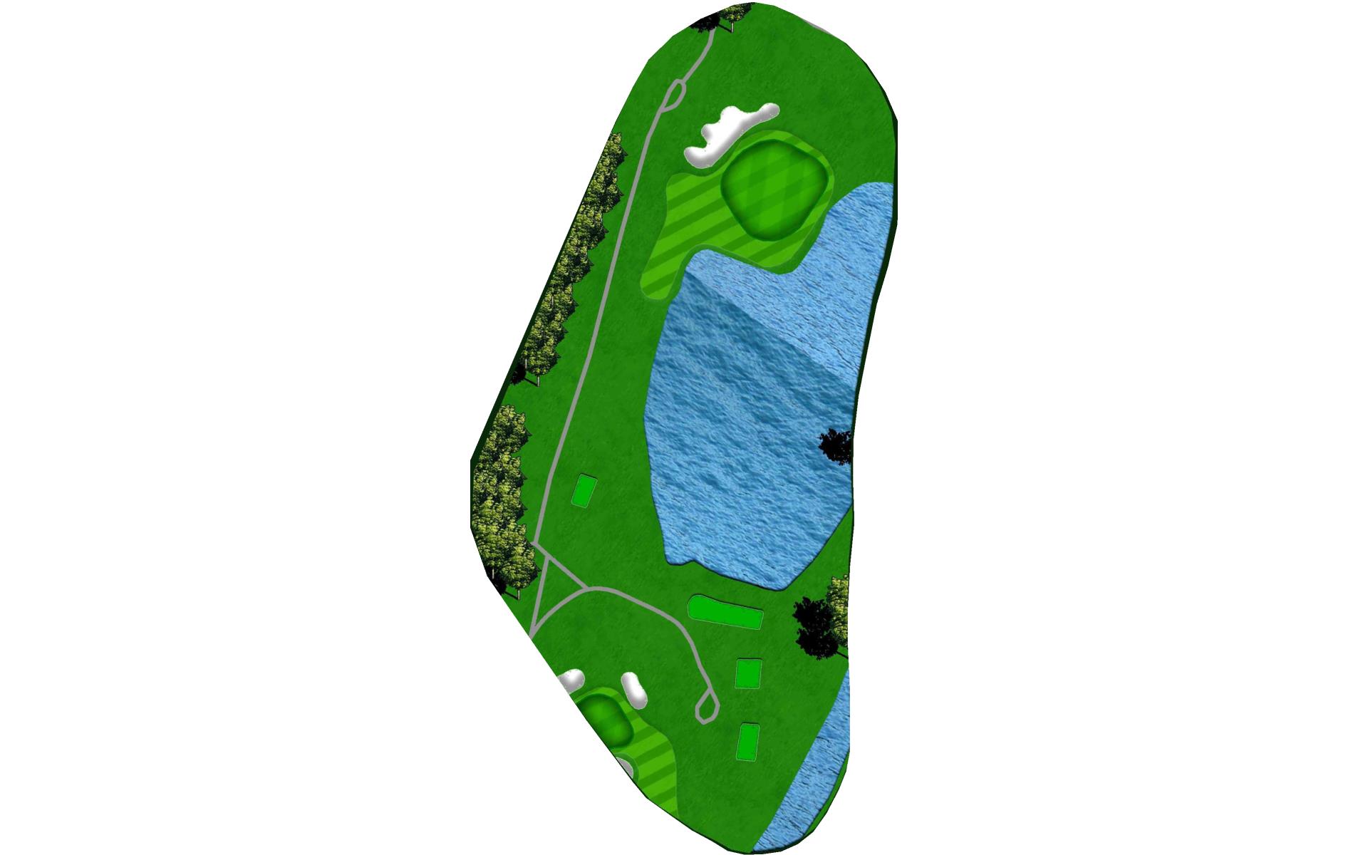 There is a lot of room between the water and green, so give yourself enough club to clear the hazard