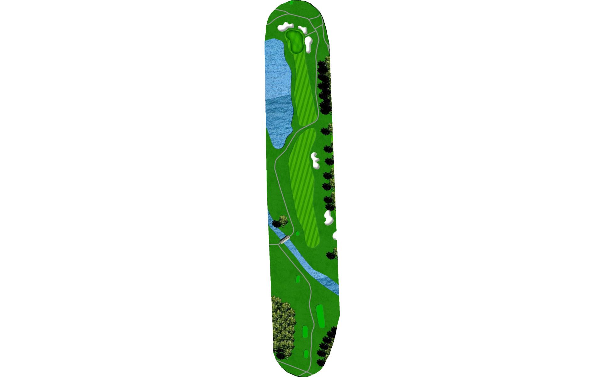 Time for another big drive. Aim away from the pond on the right and keep it out of the trees. Don’t go long on your approach as the trees are close behind the green.