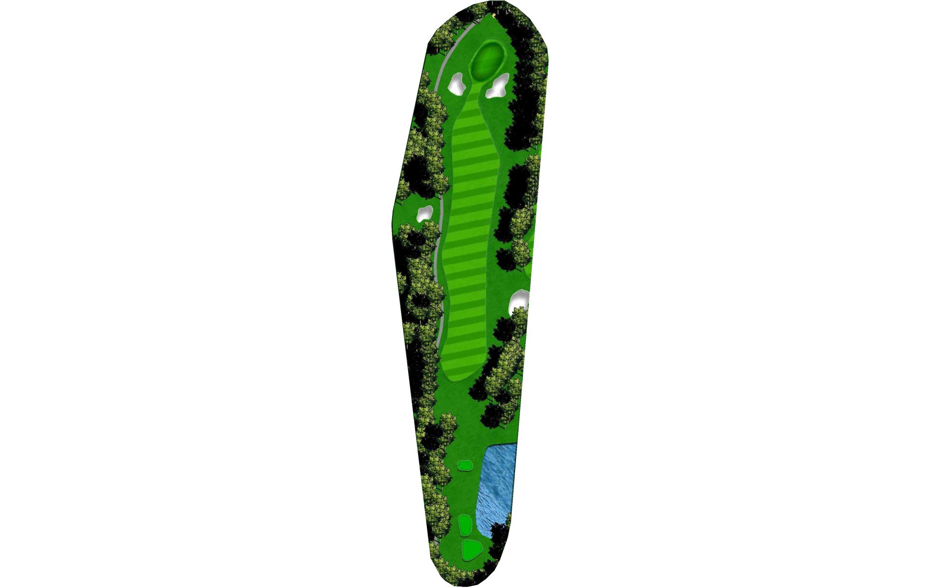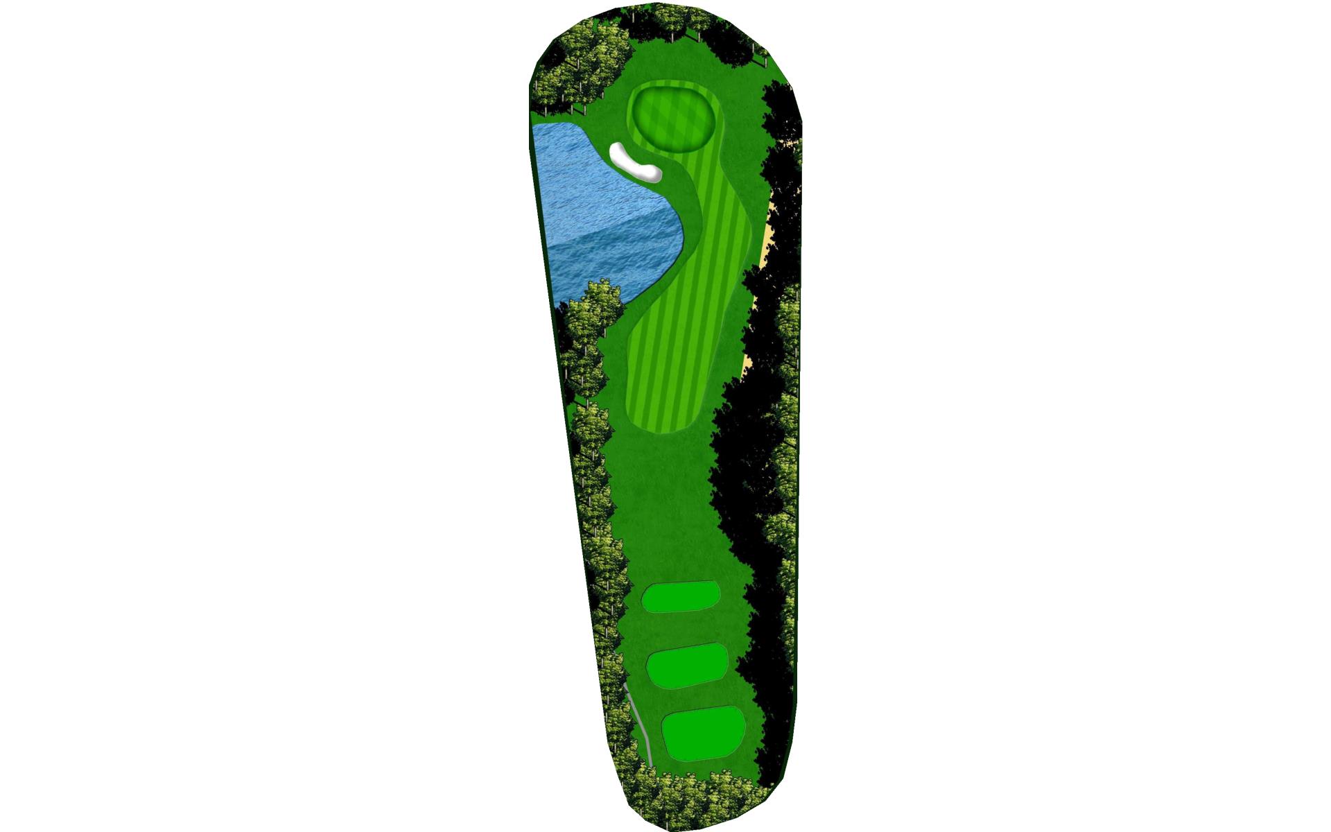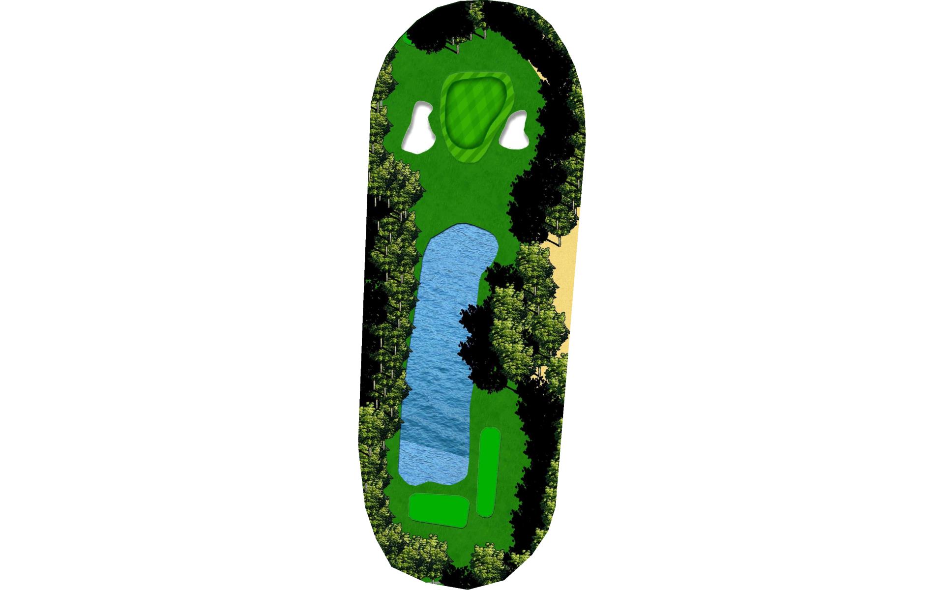 | This long par 3 features water and a bunker in front of the green. Players need to make sure they take enough club to land safely on the putting surface. |