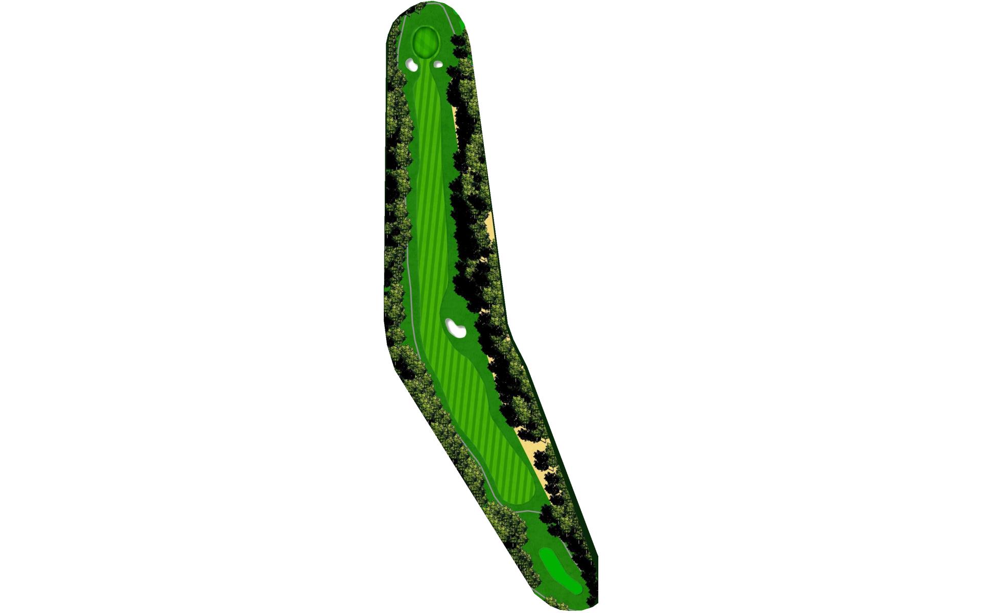 | The second is a dogleg right par 4 with out-of-bounds on the left. Golfers will need to keep their tee shot down the middle in order to set up an approach into this wide green. |