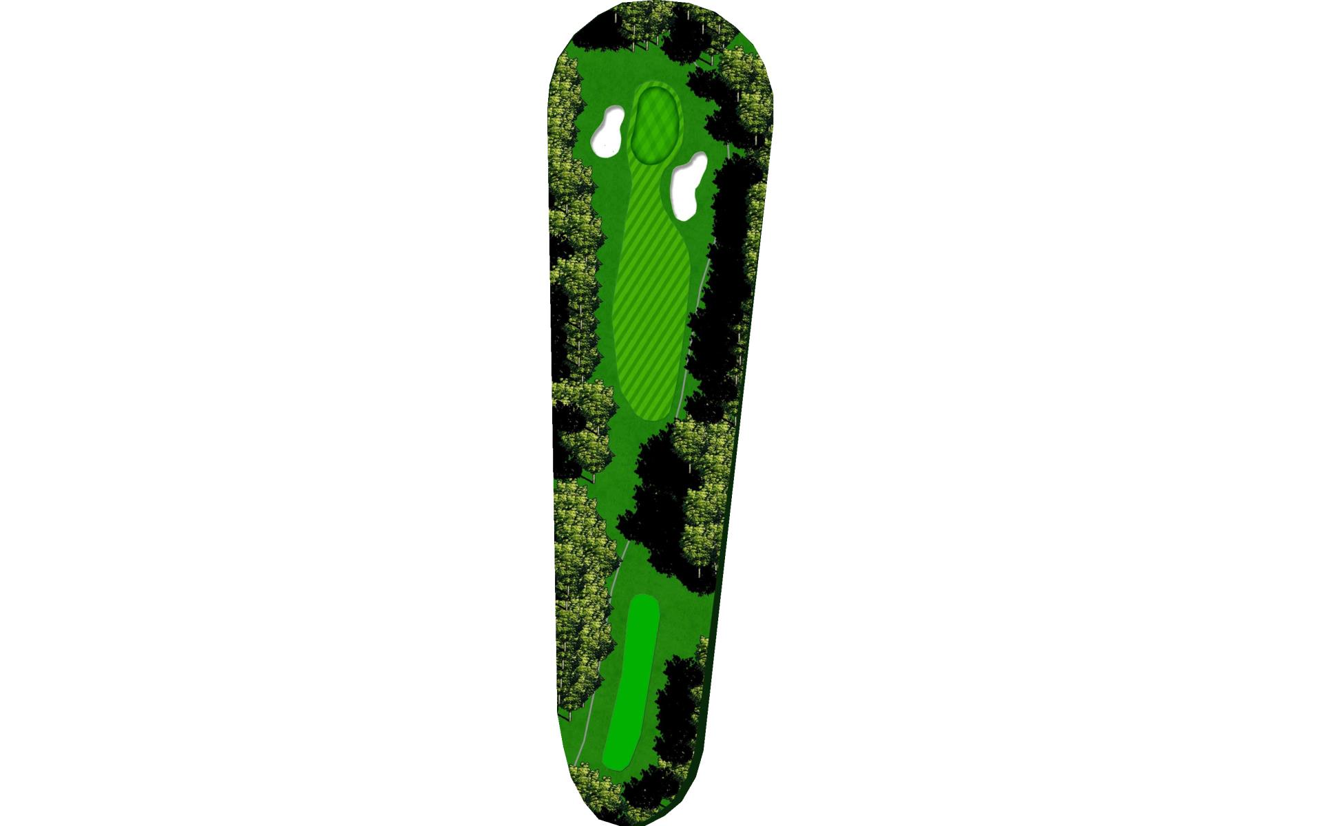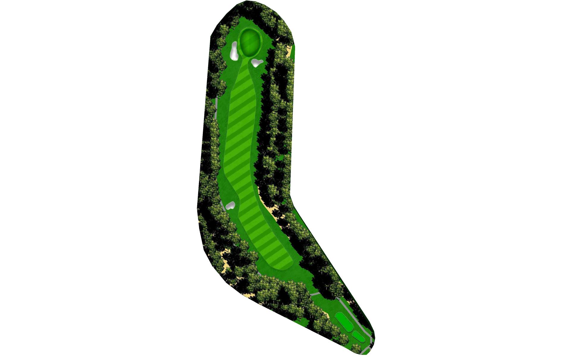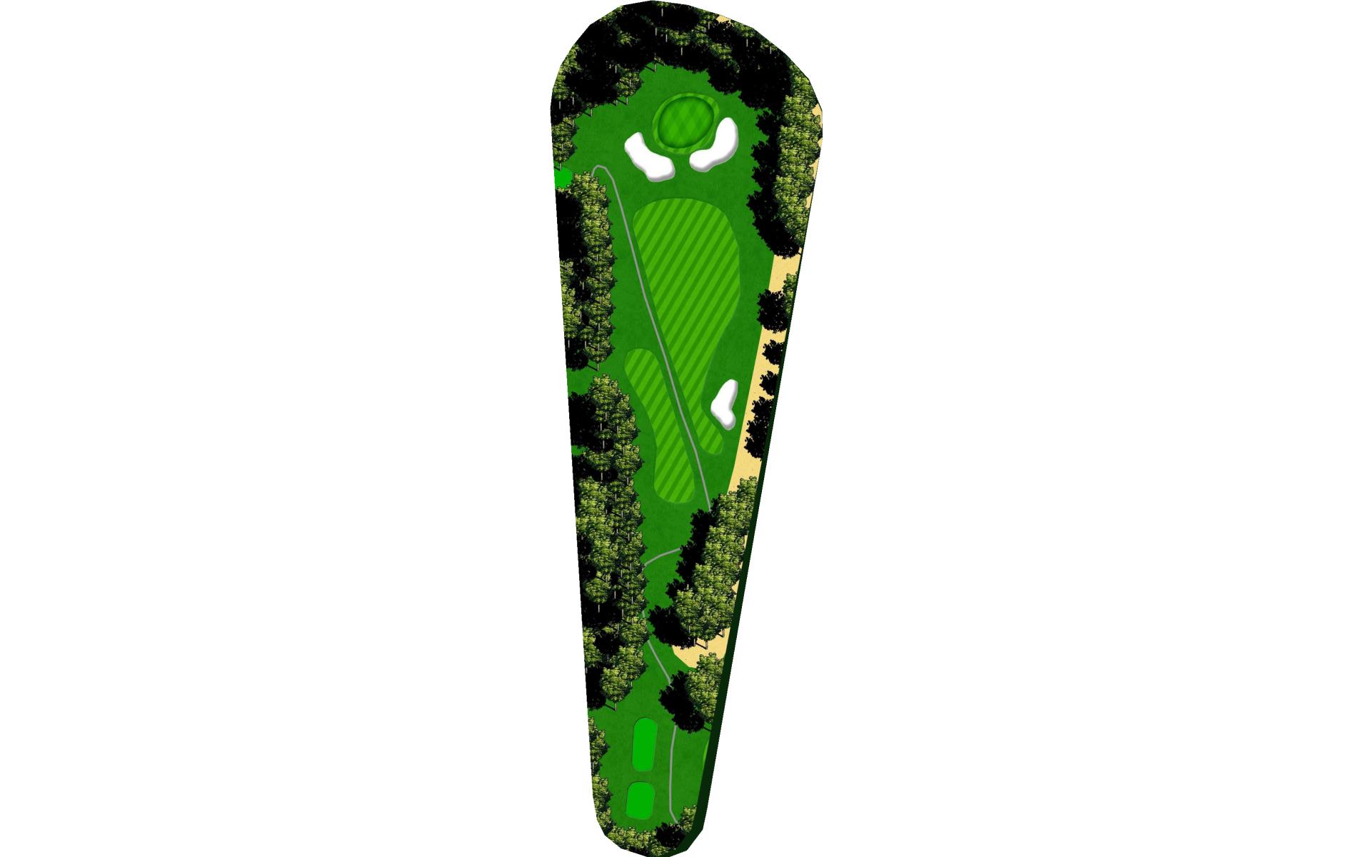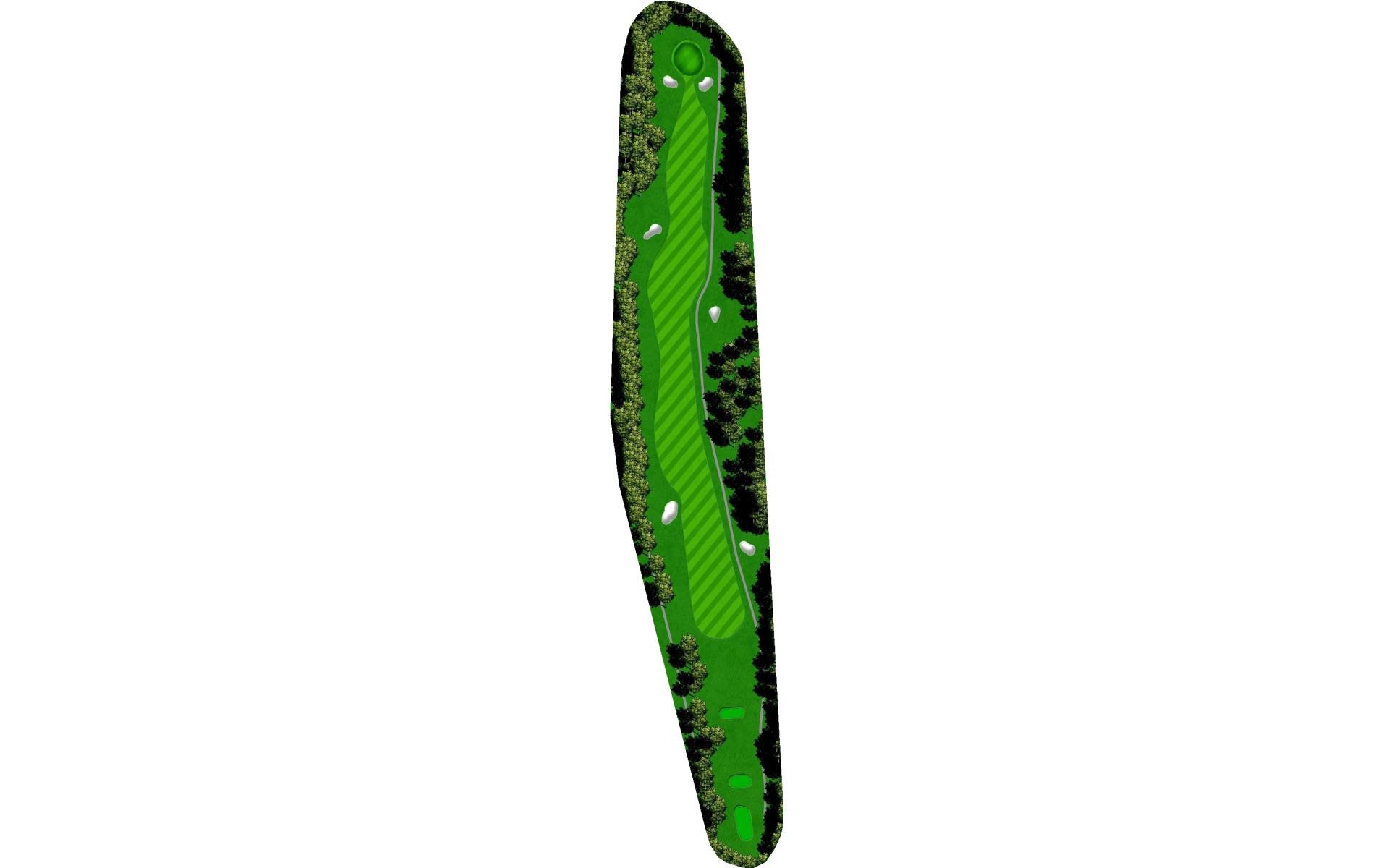 | The sixth is a classic risk-reward par 4. It’s narrow and downhill, so golfers can either bomb a driver up near the green or play it safe with less club off the tee. Out-of-bounds left and right will penalize any wayward shots. |