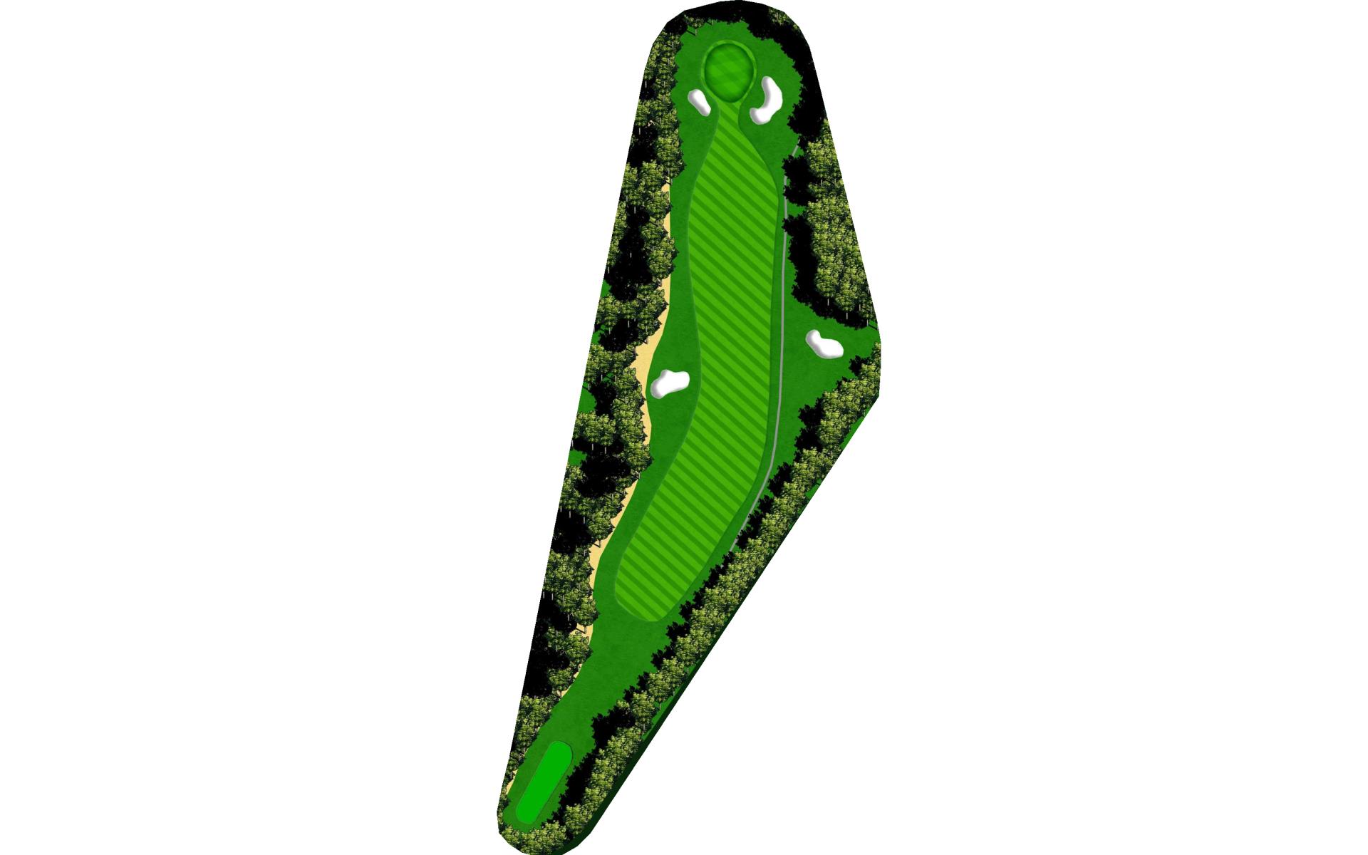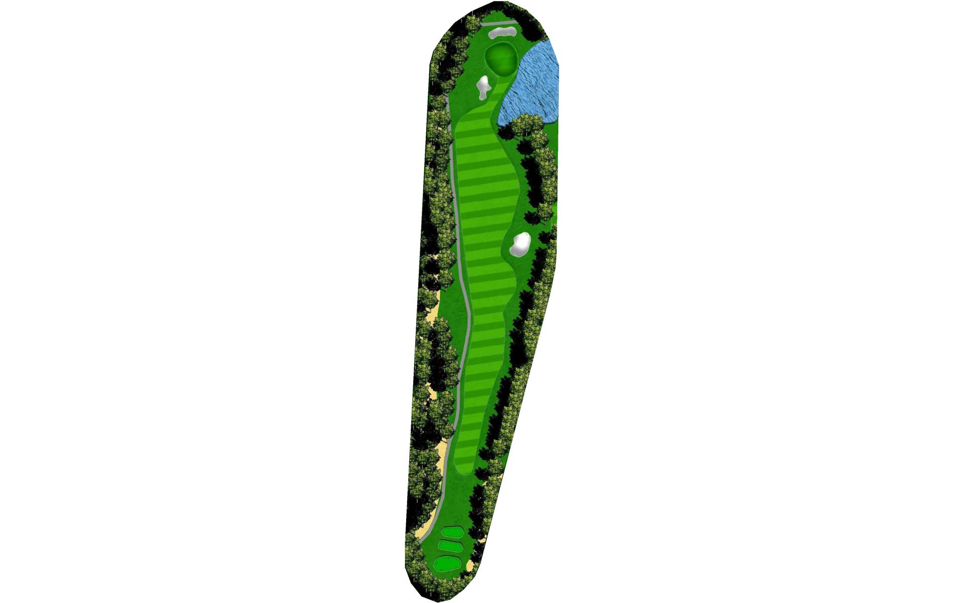 | This dogleg left par 4 plays downhill. Off the tee, players will want to avoid missing too far right or they’ll find themselves in the trees. A right-to-left ball flight will set up an easy approach into the green. |