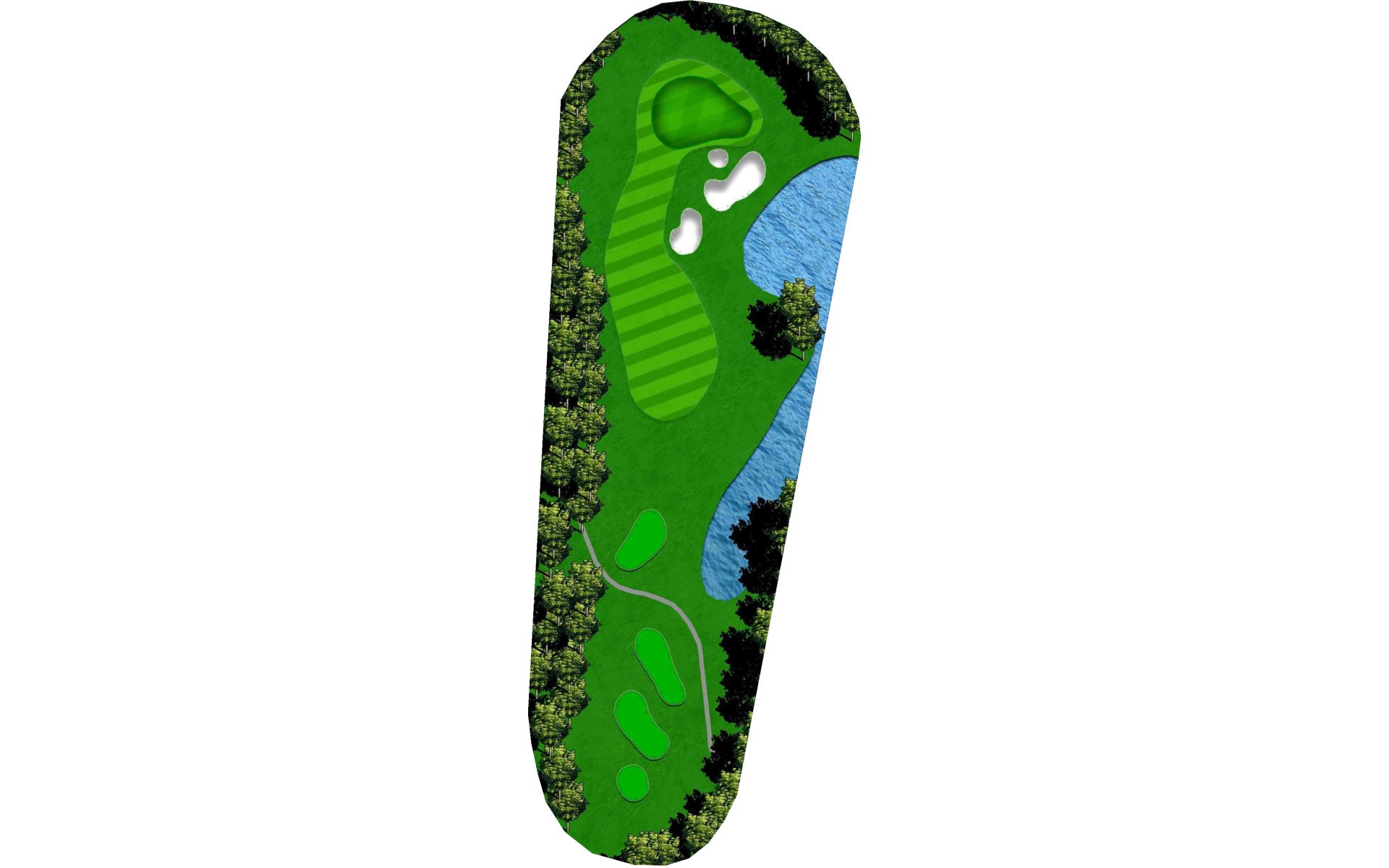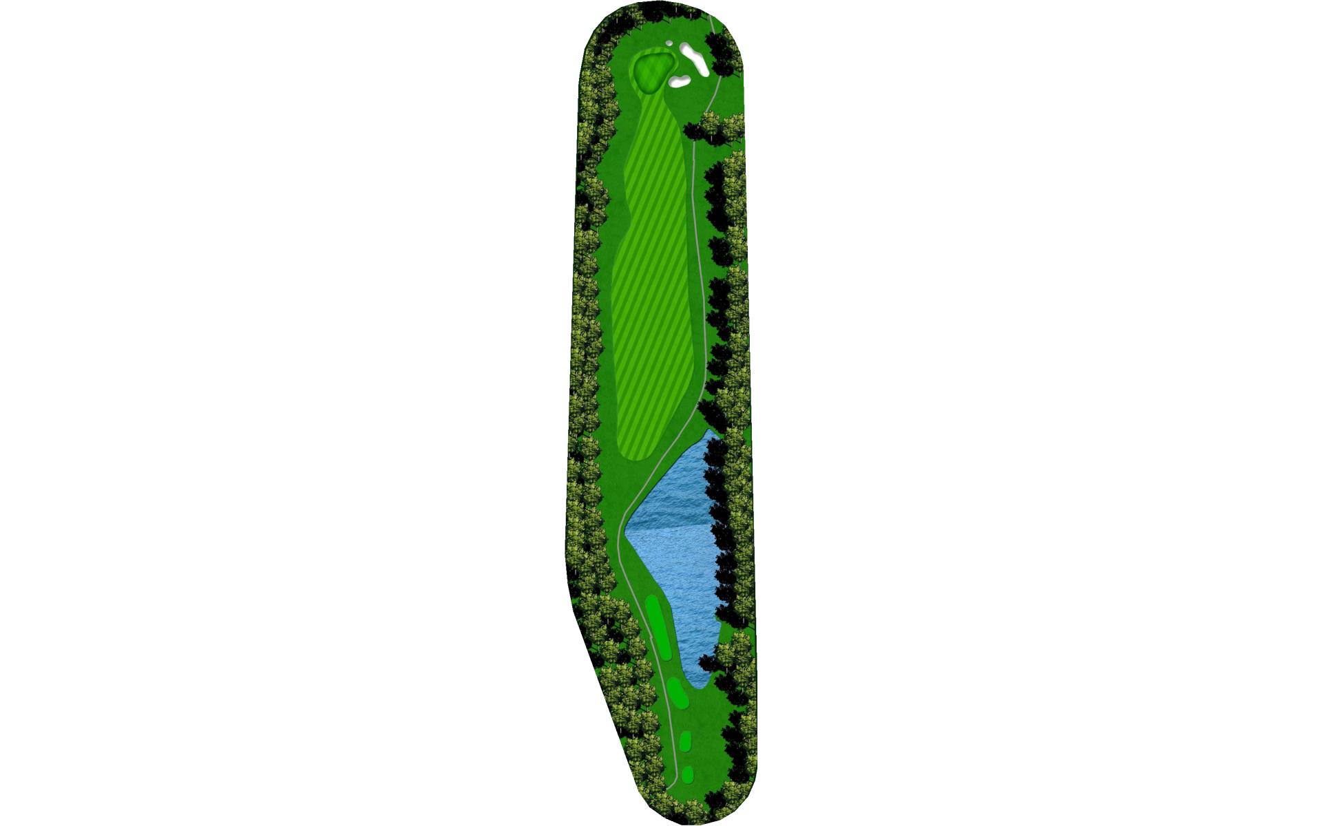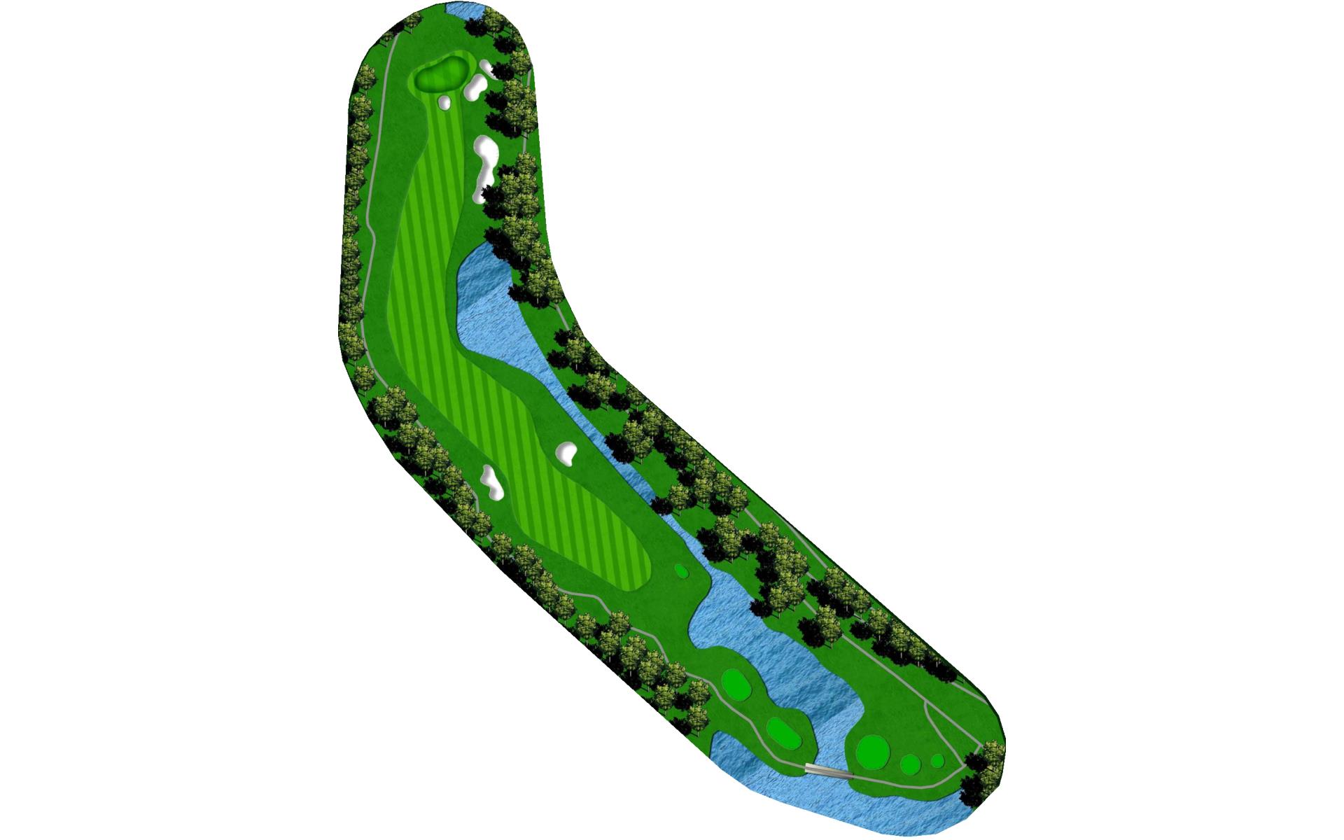 A Shot-makers PAR 5. With a long drive that favors the right side of the fairway, the green is reachable in two shots. An excellent high-risk, high reward approach shot into the green can lead a great score. The less riskier Lay-up second shot will leave you with a wedge or short iron third shot into green.