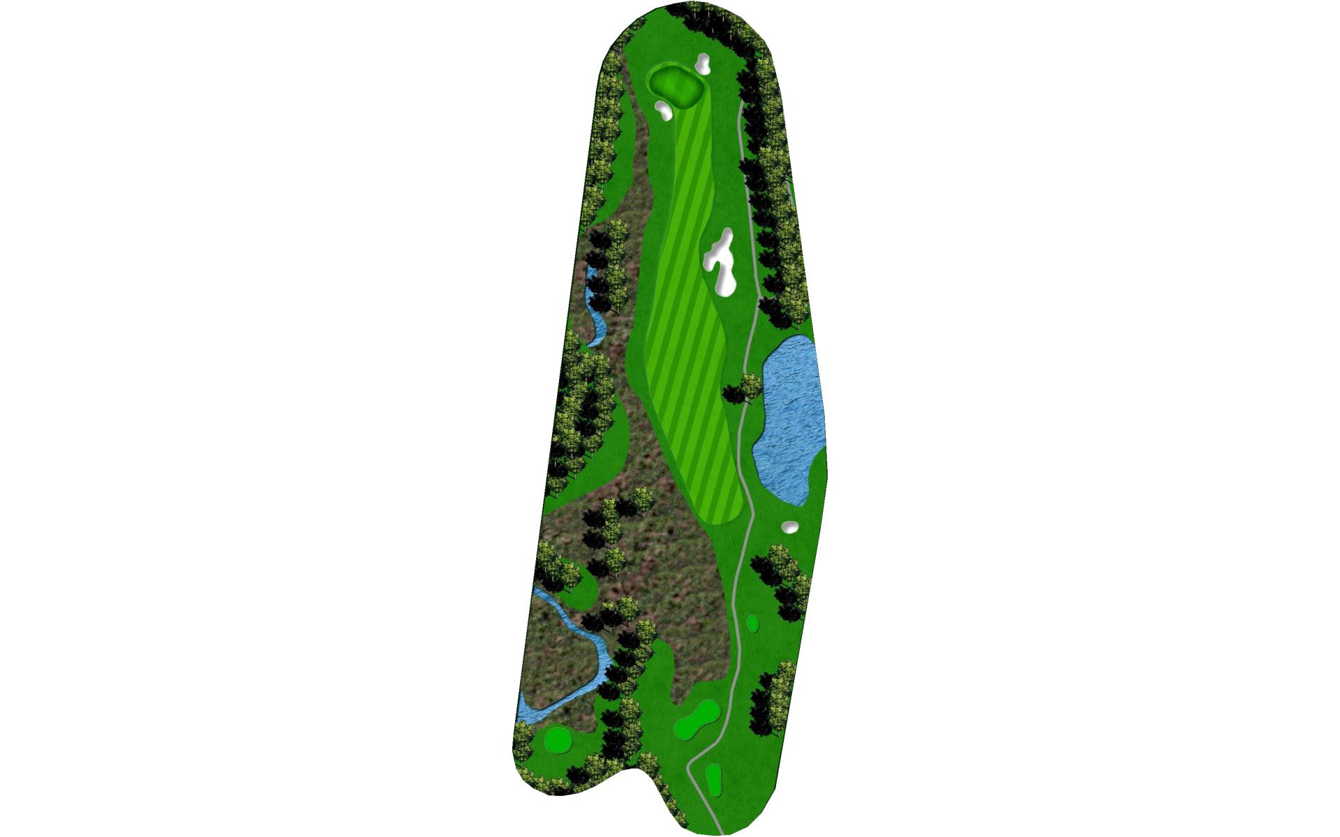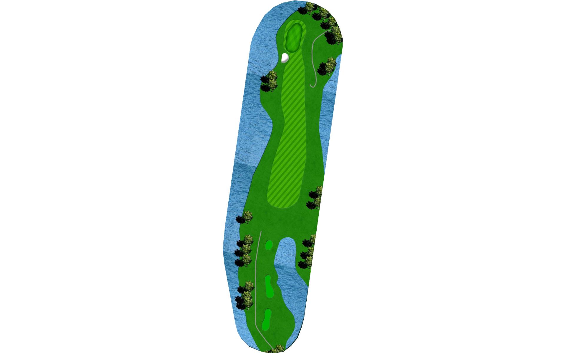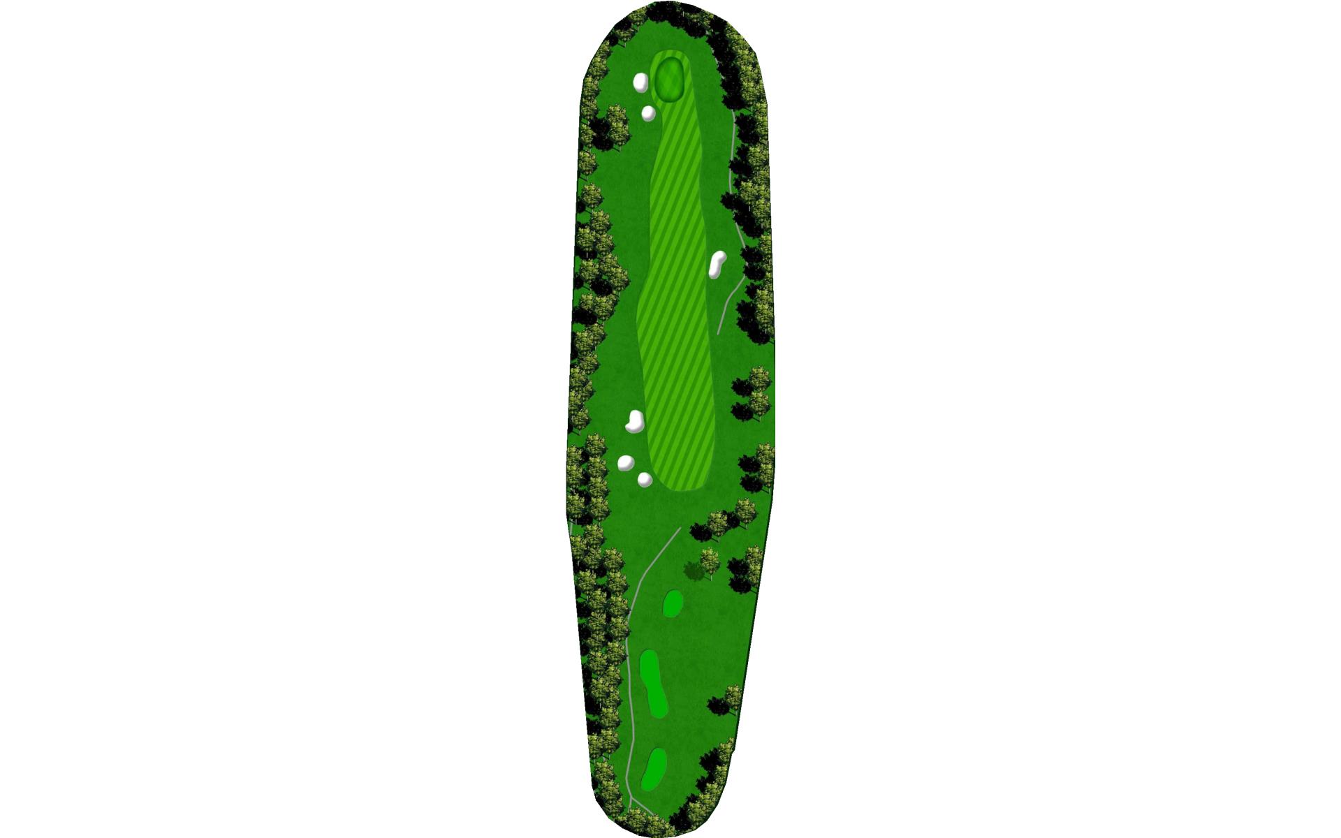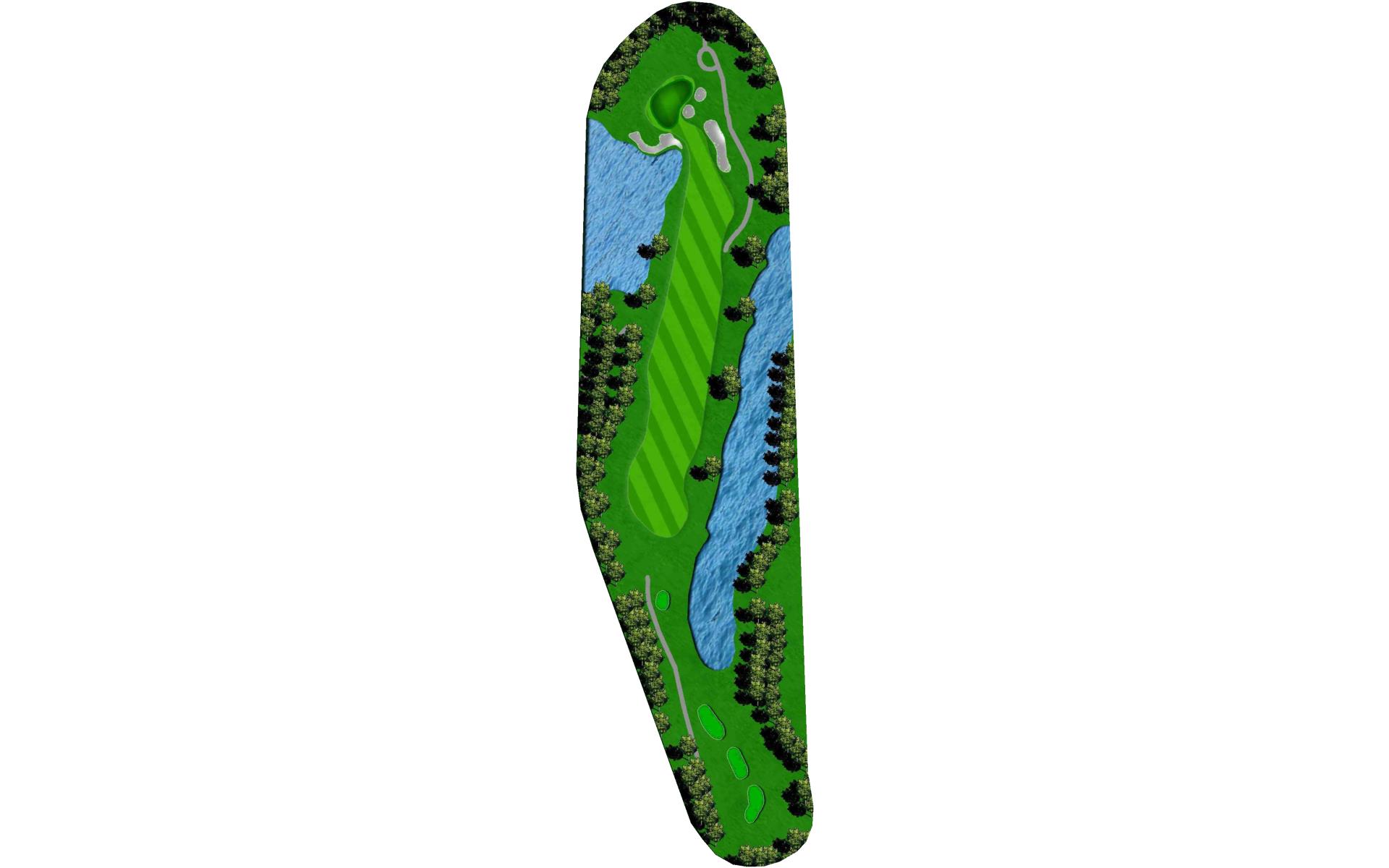 A Shot-makers PAR 5. With a long drive that favors the right side of the fairway, the green is reachable in two shots. An excellent high-risk, high reward approach shot into the green can lead a great score. The less riskier Lay-up second shot will leave you with a wedge or short iron third shot into green.