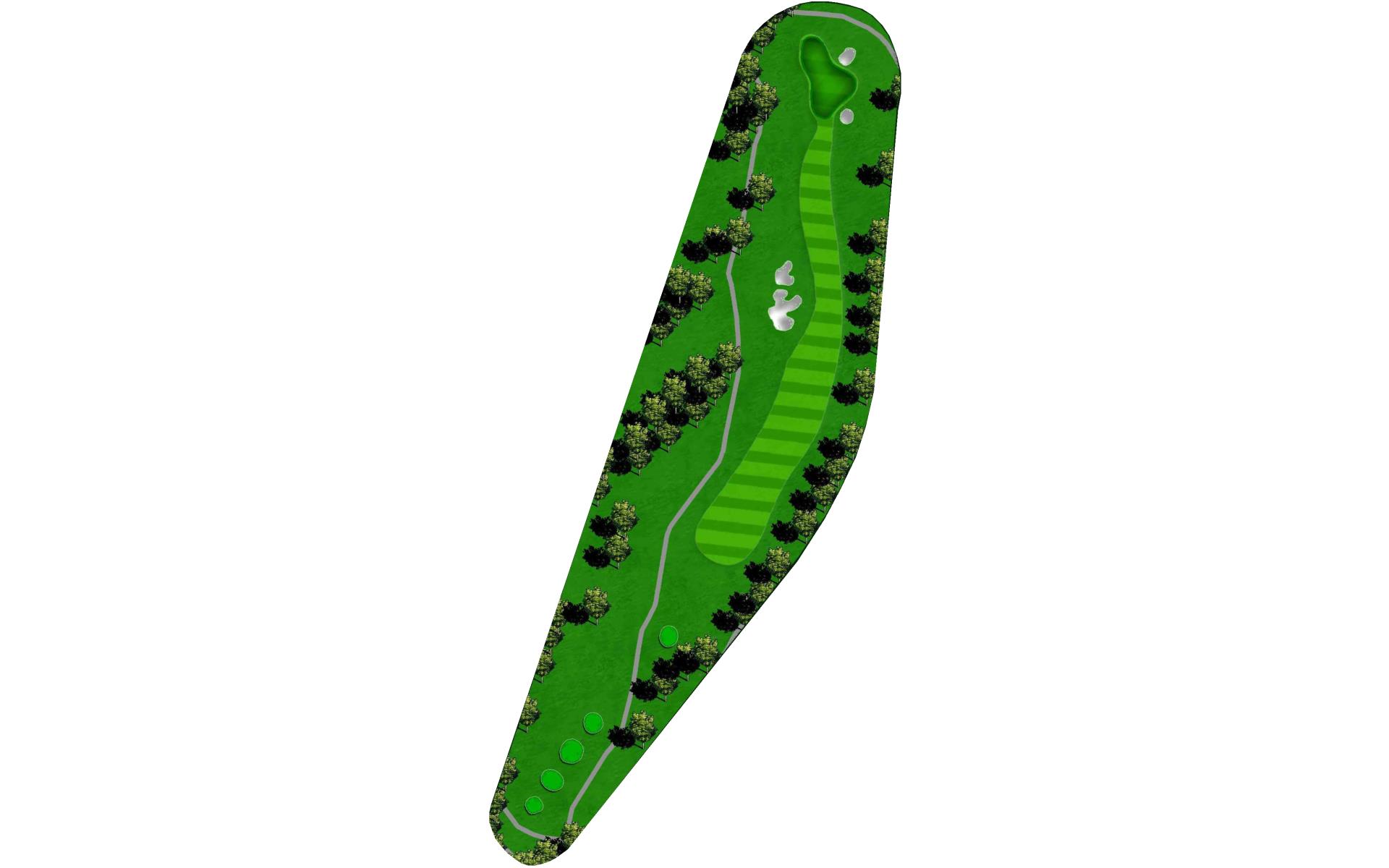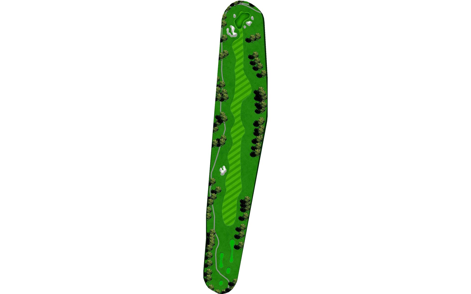 A lengthy downhill par 5 that generally plays directly in the Southerly wind. Favor the left side and you might find some extra yardage offered by the downhill slope of this fairway.