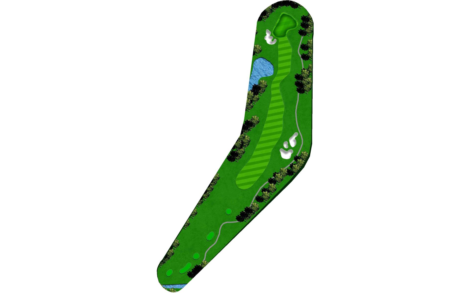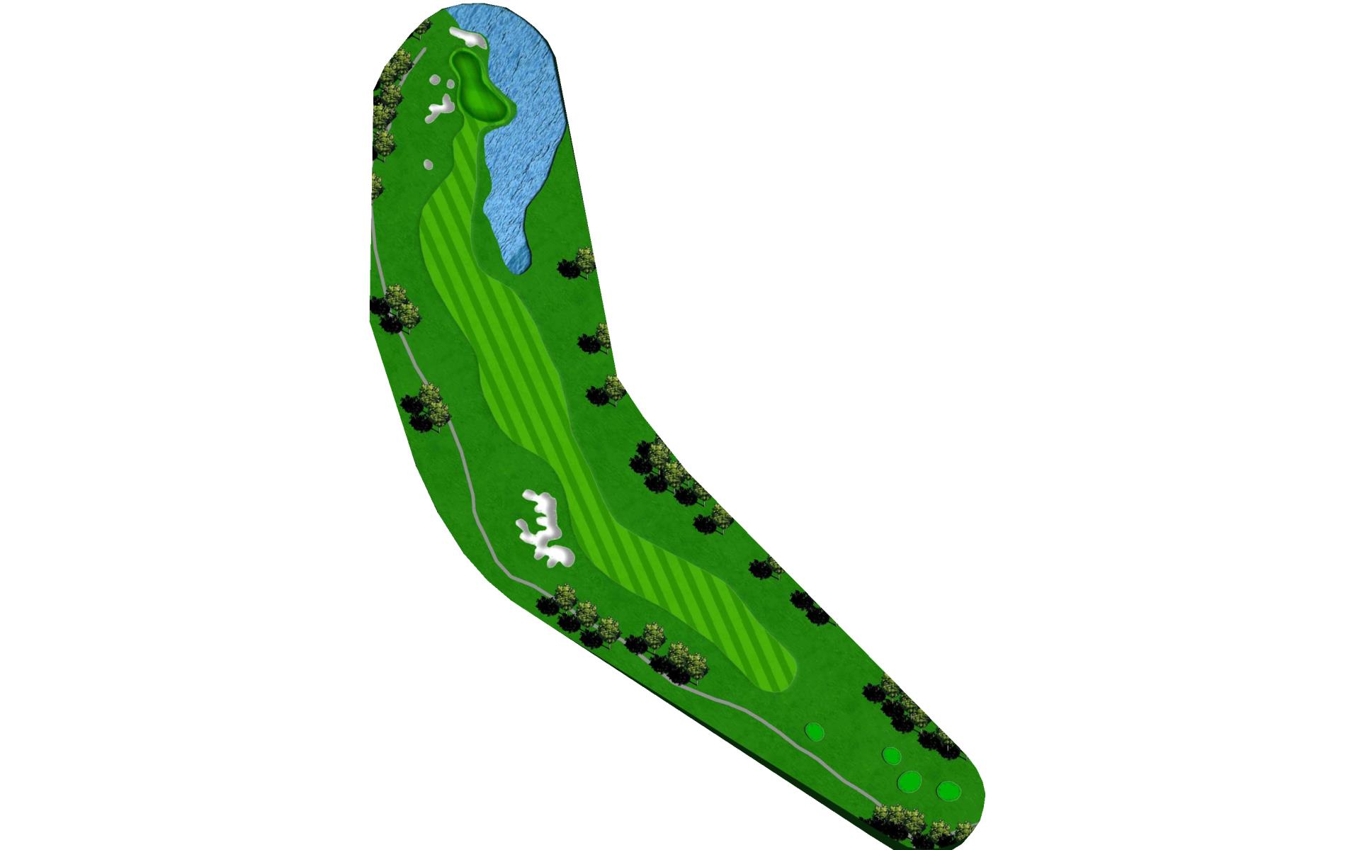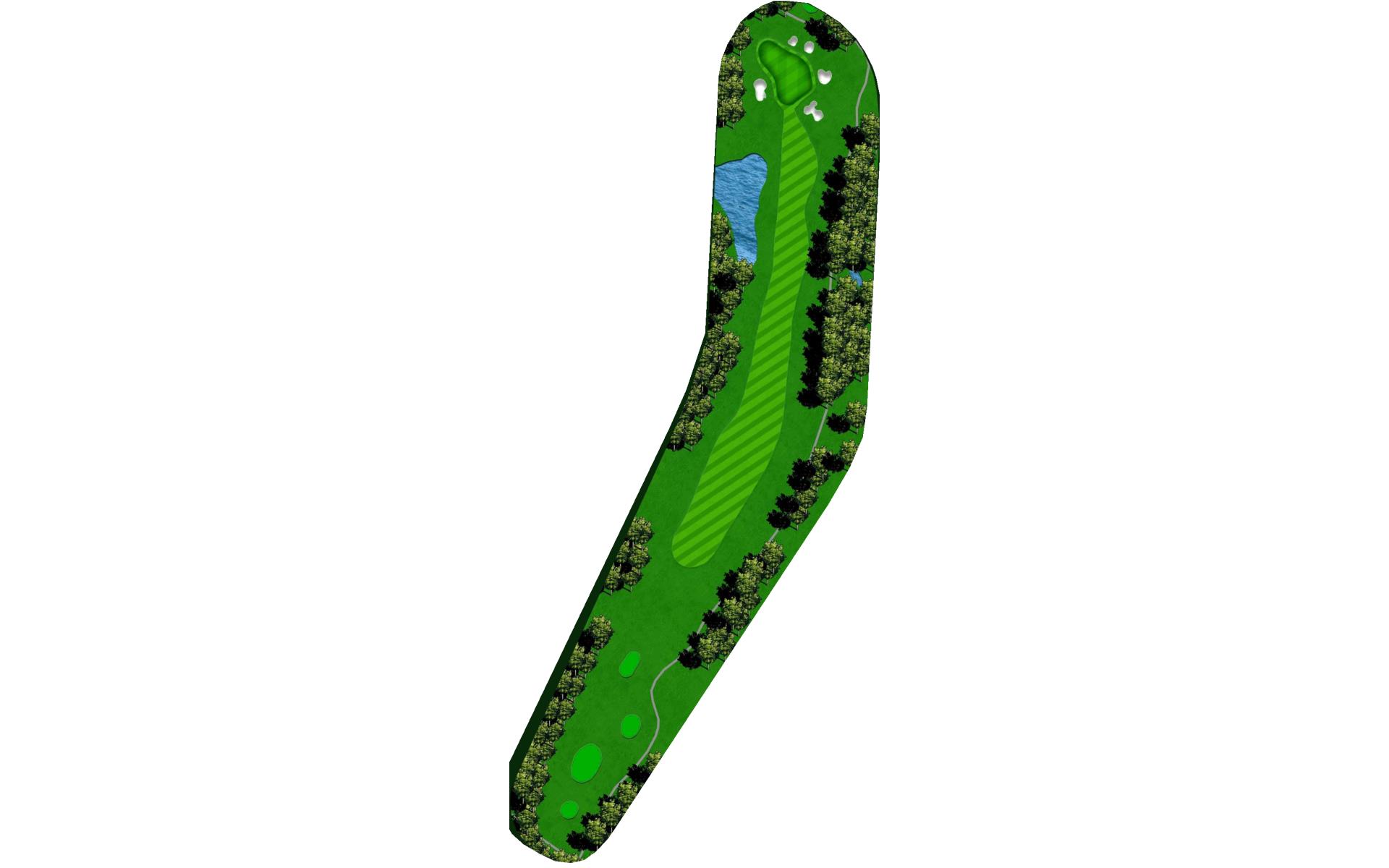 Long par 5. Driver or 3 metal off the tee is the play on this long Par 5. A pond about 270 yards out comes into play with any tee shots that miss the fairway on the right side. Another pond begins on the left side of the fairway roughly 200 yards away from the green and wraps around the left side to the back of the green. Layups must be positioned correctly as water comes into play on both your 2nd and 3rd shots.